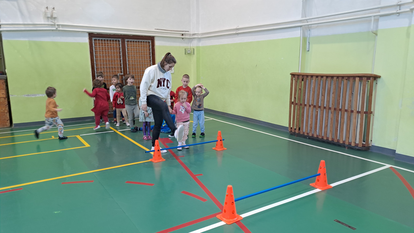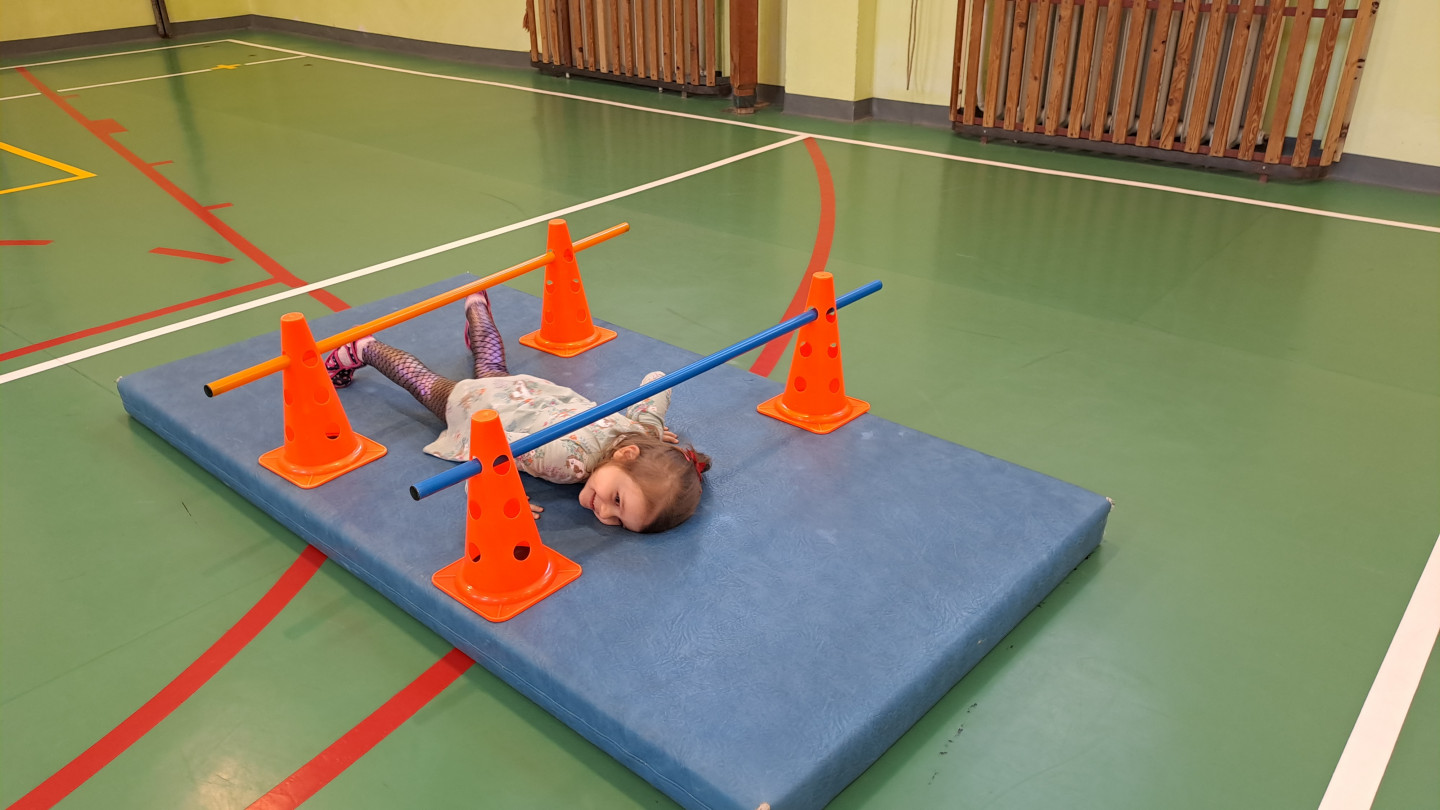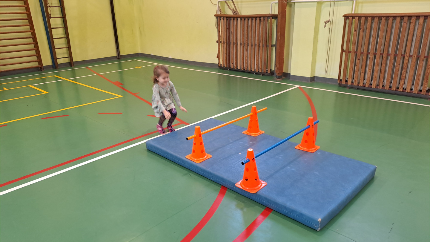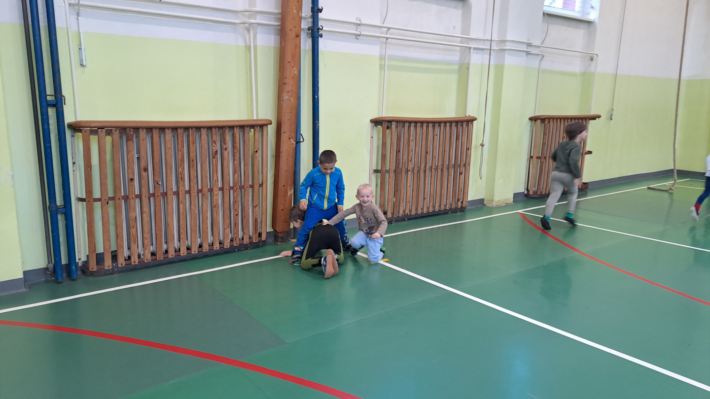 Dětem jsme připravily překážkovou dráhu a poté jsme si zahrály hru na Bacil. Děti utíkaly před bacilem (paní učitelkou) a kdo byl chycený tak roztahl nohy a musel počkat na Vitamín (Daneček), který děti vylečil podlezením.