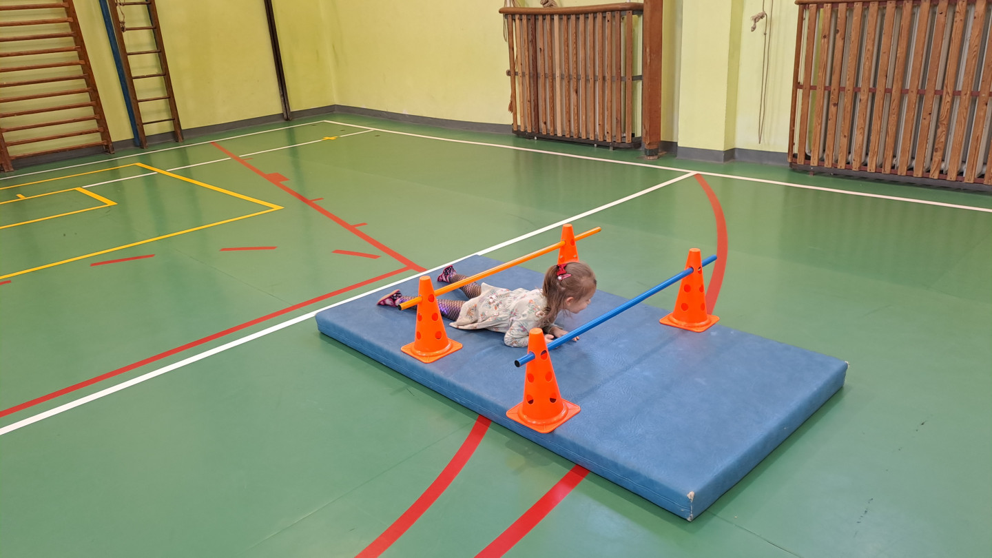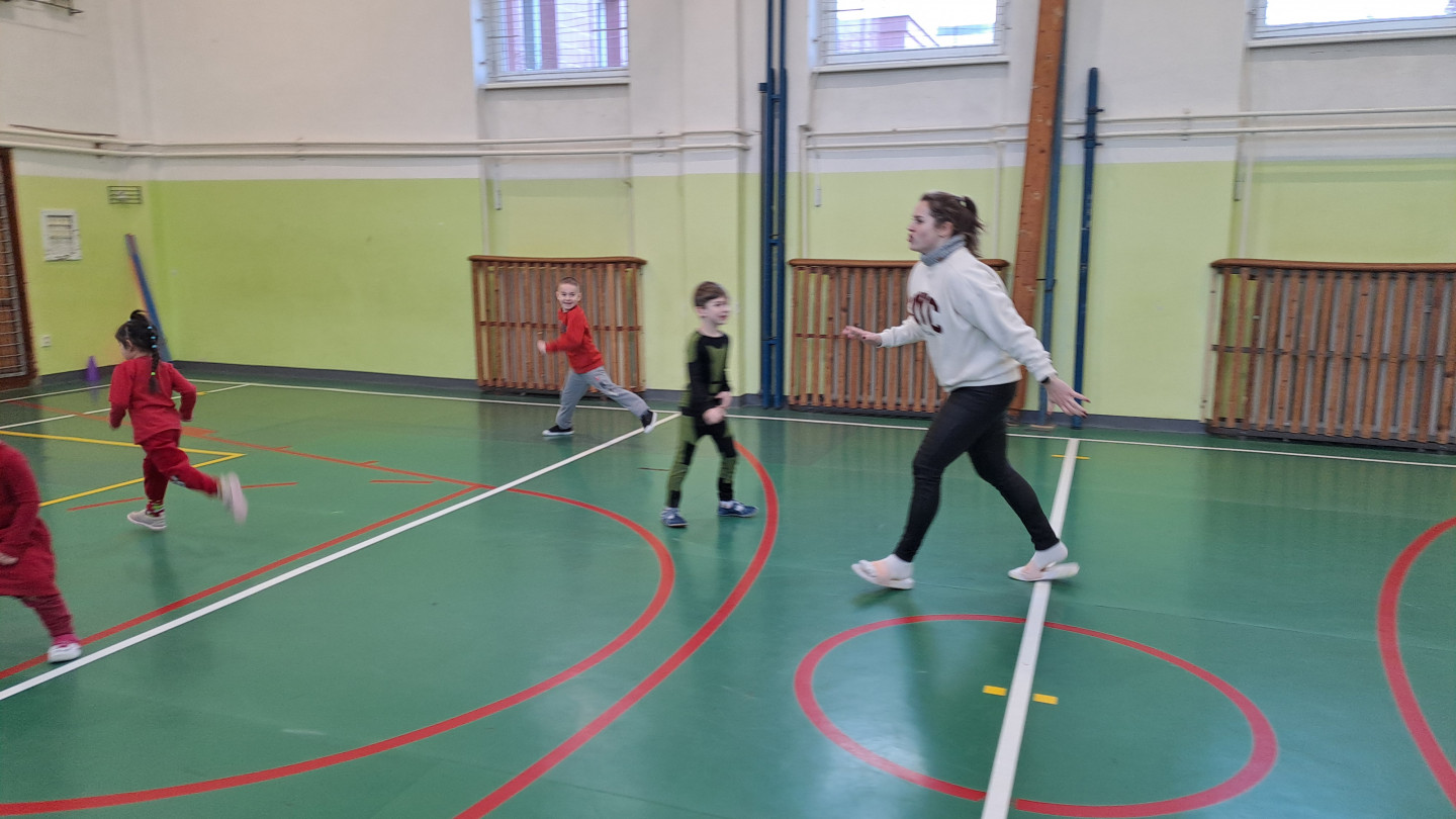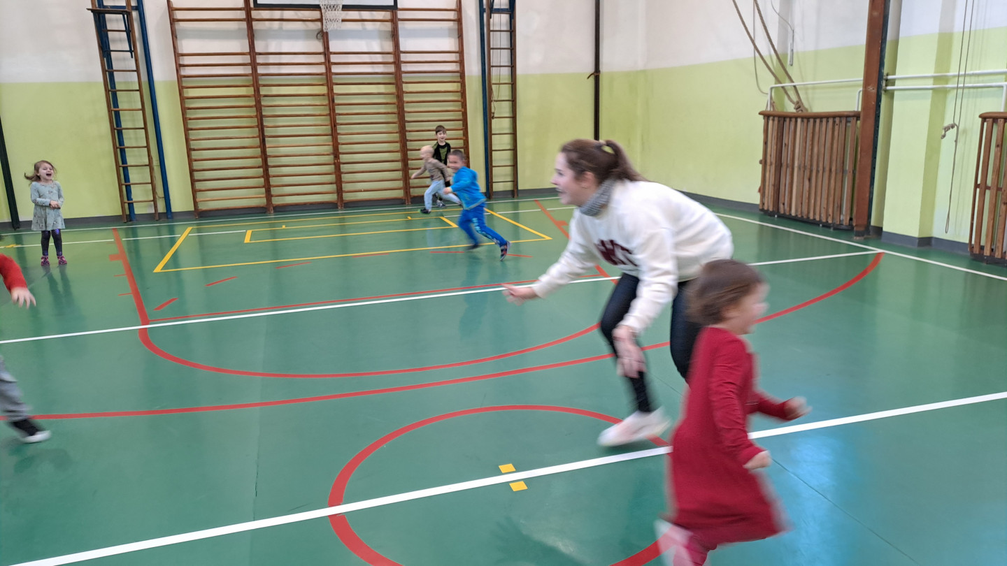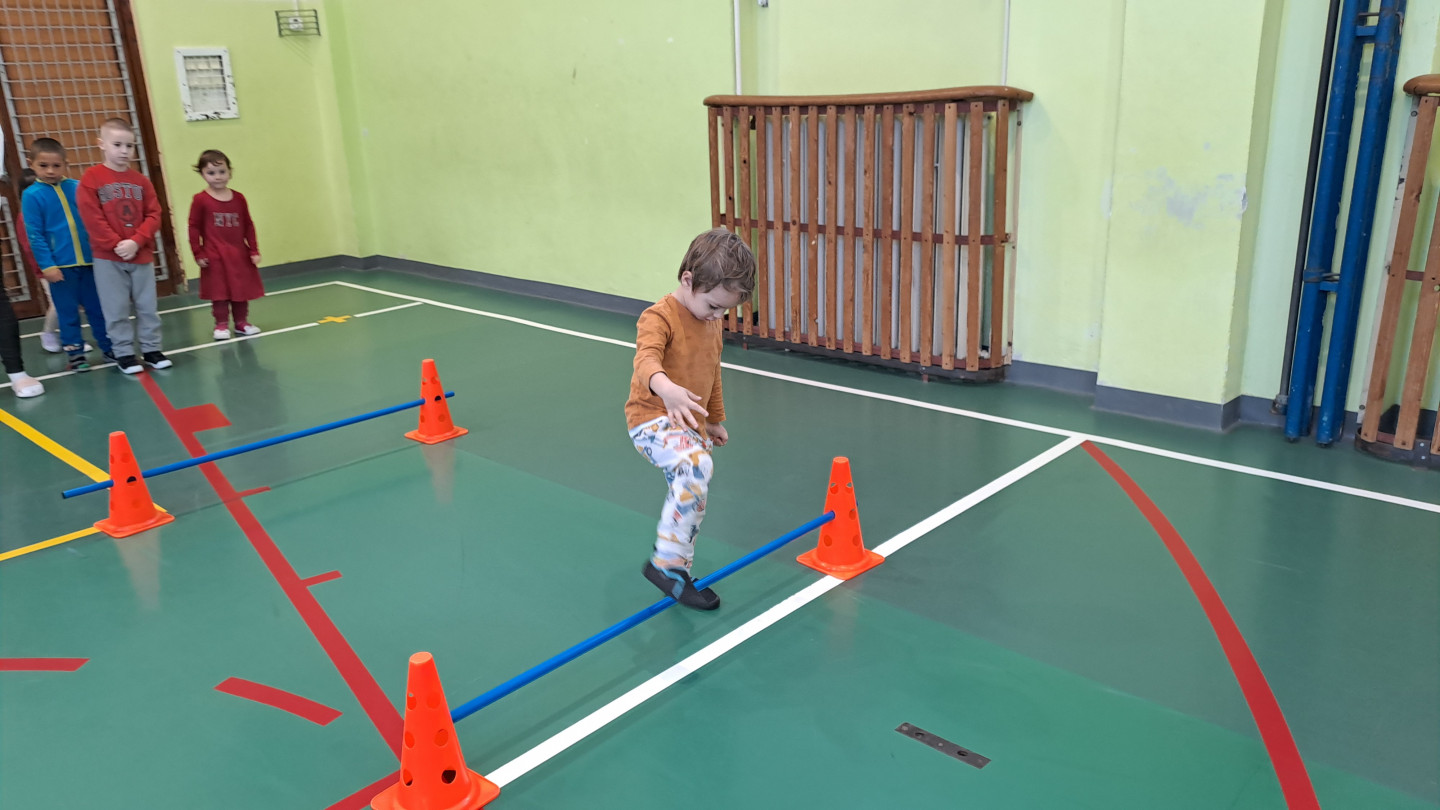 Dětem jsme připravily překážkovou dráhu a poté jsme si zahrály hru na Bacil. Děti utíkaly před bacilem (paní učitelkou) a kdo byl chycený tak roztahl nohy a musel počkat na Vitamín (Daneček), který děti vylečil podlezením.