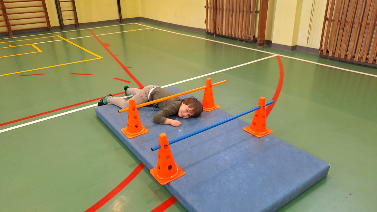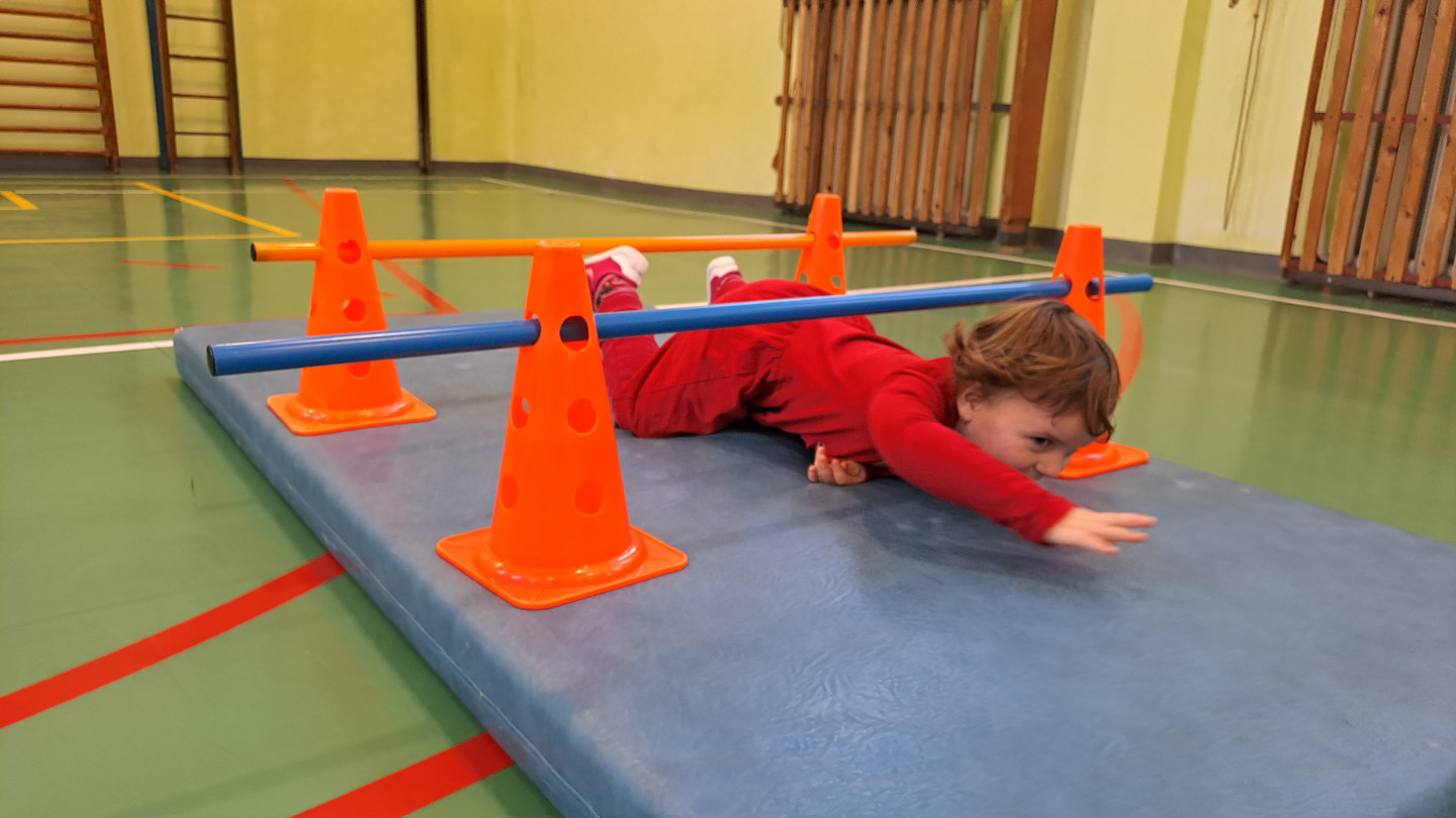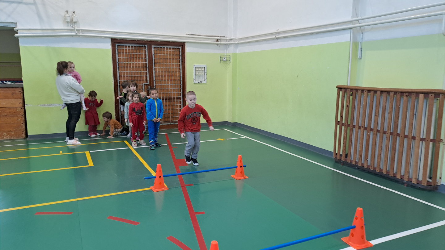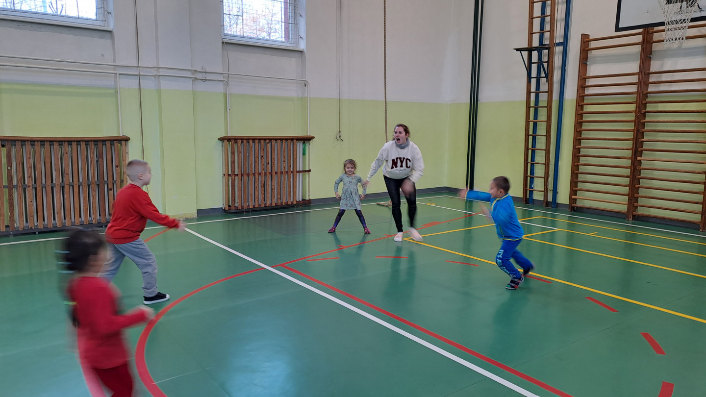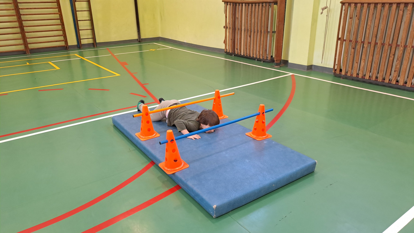 Dětem jsme připravily překážkovou dráhu a poté jsme si zahrály hru na Bacil. Děti utíkaly před bacilem (paní učitelkou) a kdo byl chycený tak roztahl nohy a musel počkat na Vitamín (Daneček), který děti vylečil podlezením.
