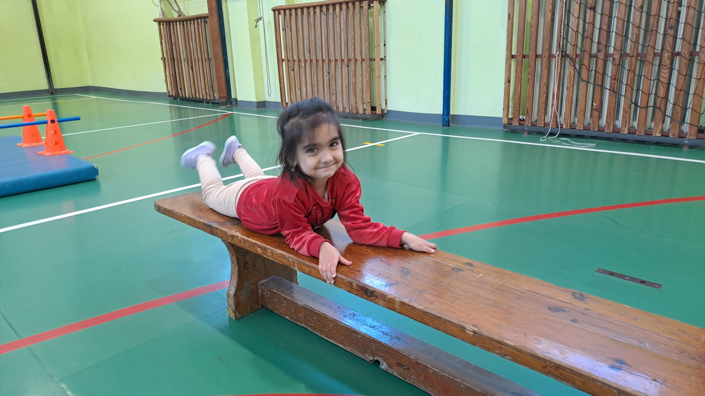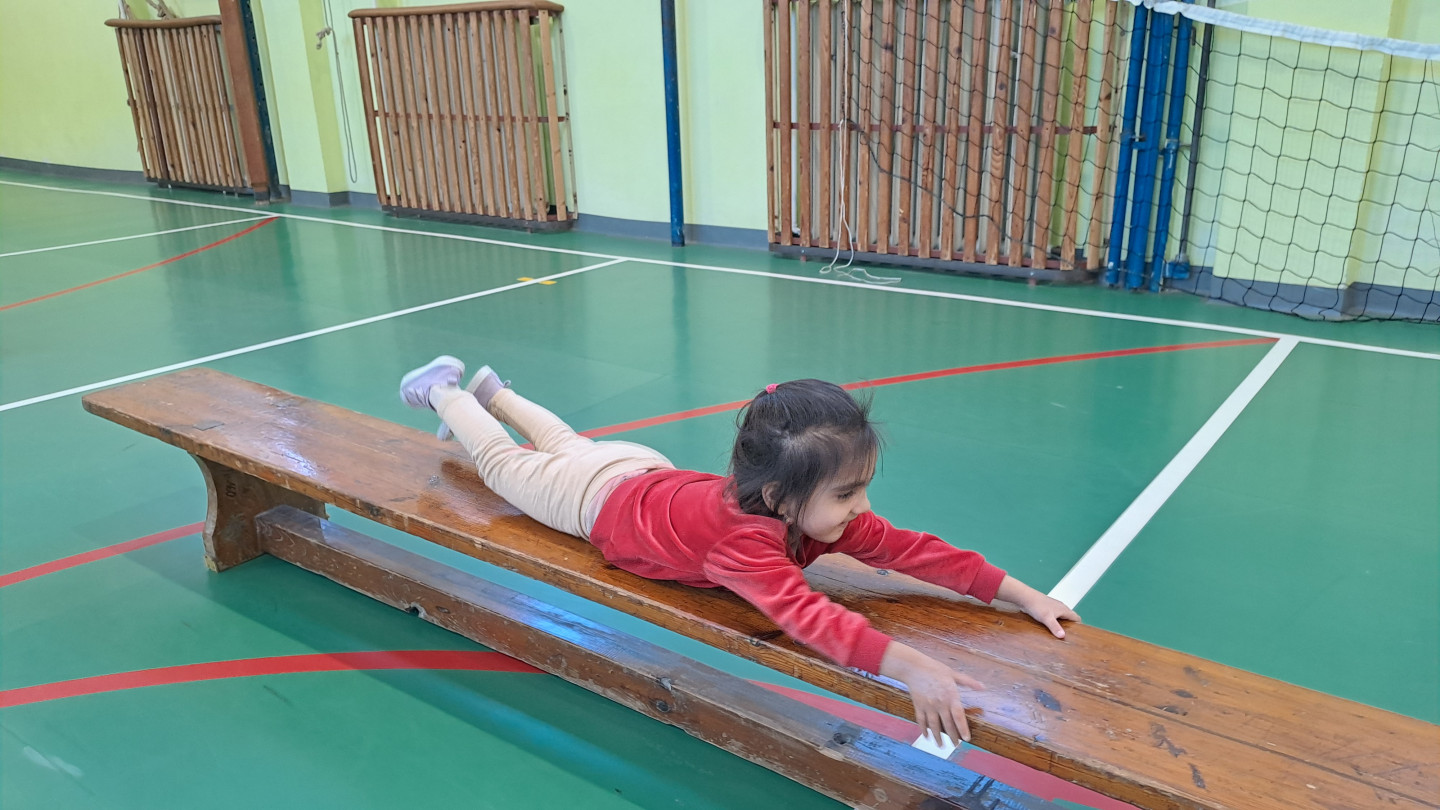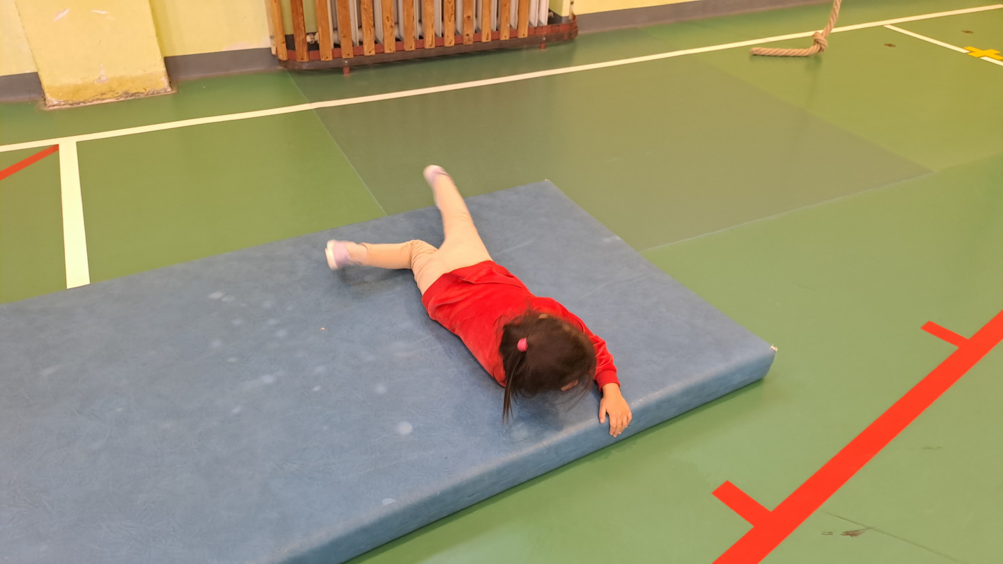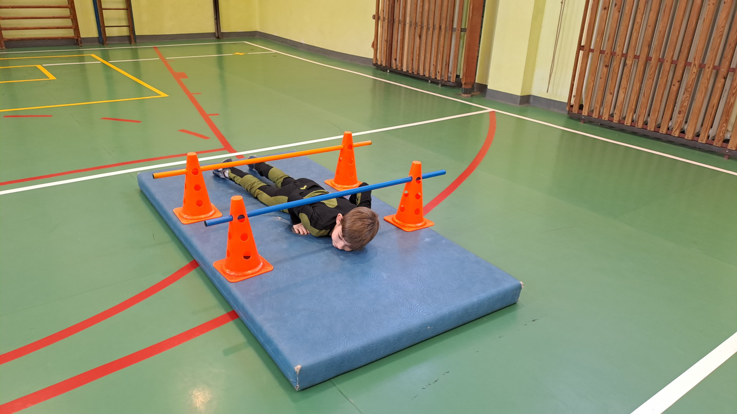 Dětem jsme připravily překážkovou dráhu a poté jsme si zahrály hru na Bacil. Děti utíkaly před bacilem (paní učitelkou) a kdo byl chycený tak roztahl nohy a musel počkat na Vitamín (Daneček), který děti vylečil podlezením.