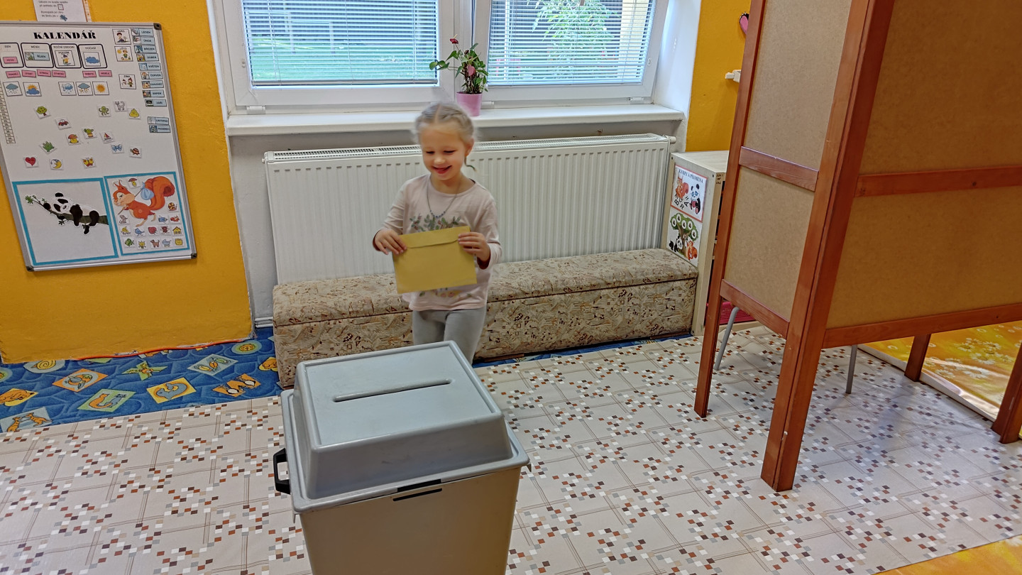 Dnes se naše třída změnila ve volební místnost, kde odpoledne proběhnou volby do poslanecké sněmovny. Proto jsme se rozhodly vysvětlit dětem, co tady budou dospěláci dělat a jak to vše bude probíhat. Rozhodly jsme se vyhlasit volbu o nejoblíbenější hračku v mateřské škole. Vybraly jsme 8 hraček nebo stavebnic a děti rozhodly. Přišly do volební místnosti, představily se a díky tomu dostaly volební lístek a obálku. Tajně rozhodly, lístek vložily do obálky a obálku vhodily do urny. Výsledek byl překvapivý. Doufáme, že i dospěláci budou stejně překvapeni.