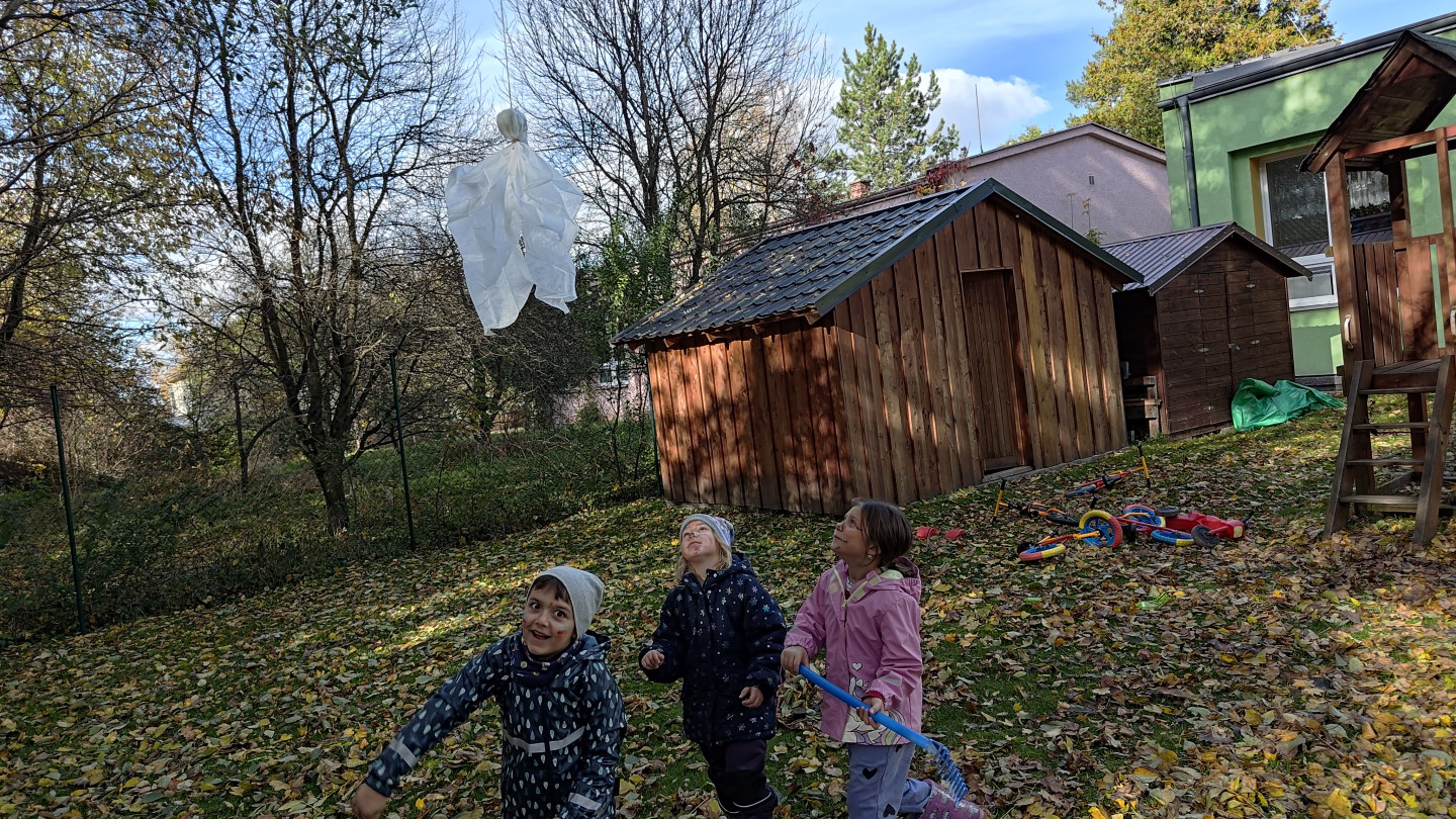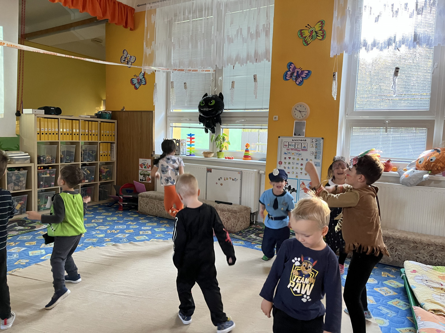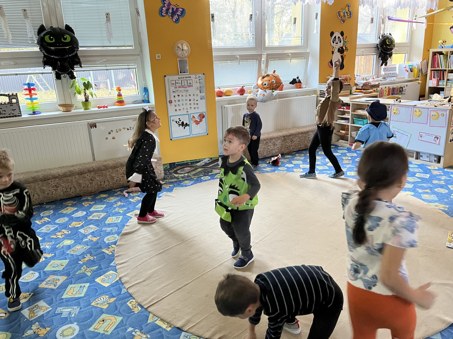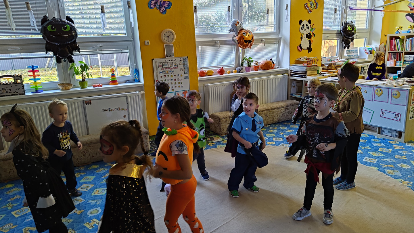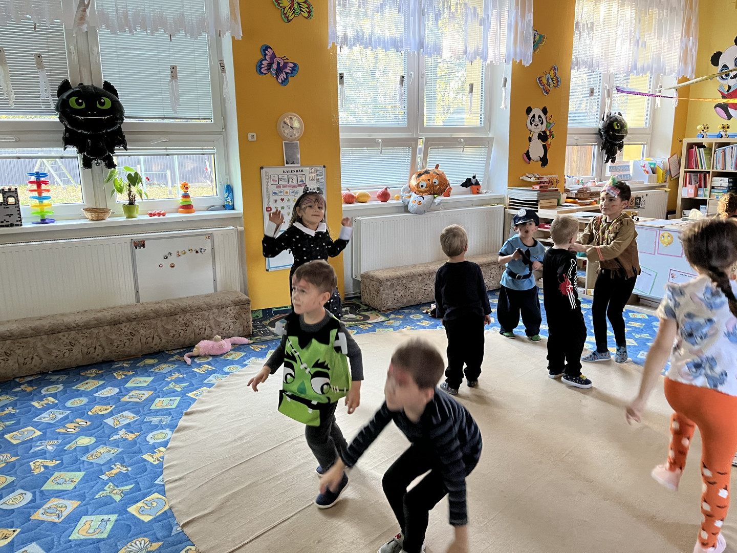 Uspávní broučků s halloweenskou párty a přespáváním ve školce patří mezi naše oblíbené akce. Děti se oblékly do kostýmu, namalovaly jsme jim obličej a protože bylo krásné počasí, párty pokračovala venku. Připravili jsme strašidelnou výzdobu, připravili jsme světla a děti hledaly broučky, které jsme ubytovali do hmyzího hotelu. Děkujeme rodičům za podporu, za spoustu halloweenské dekorace a dobrotek.