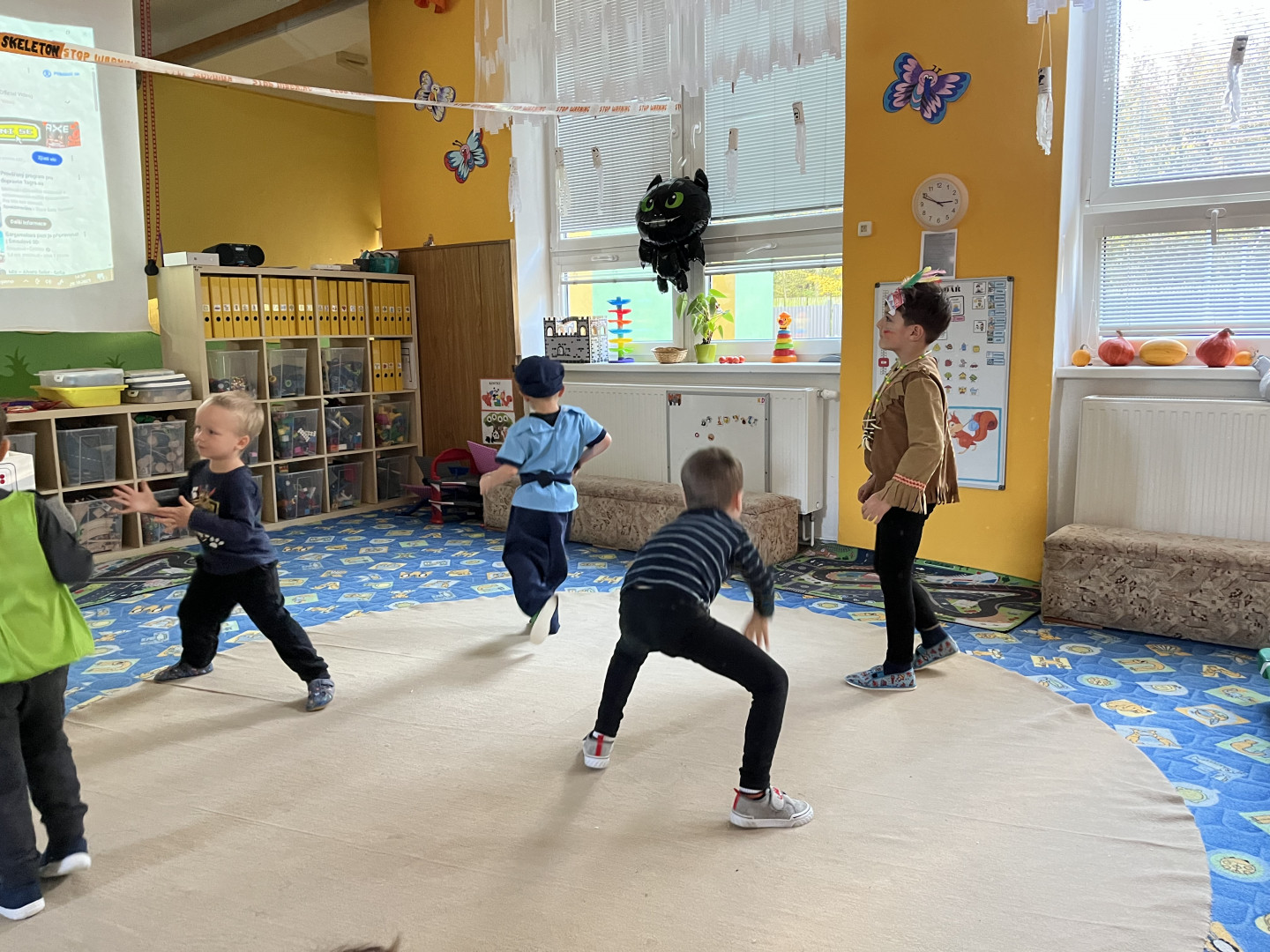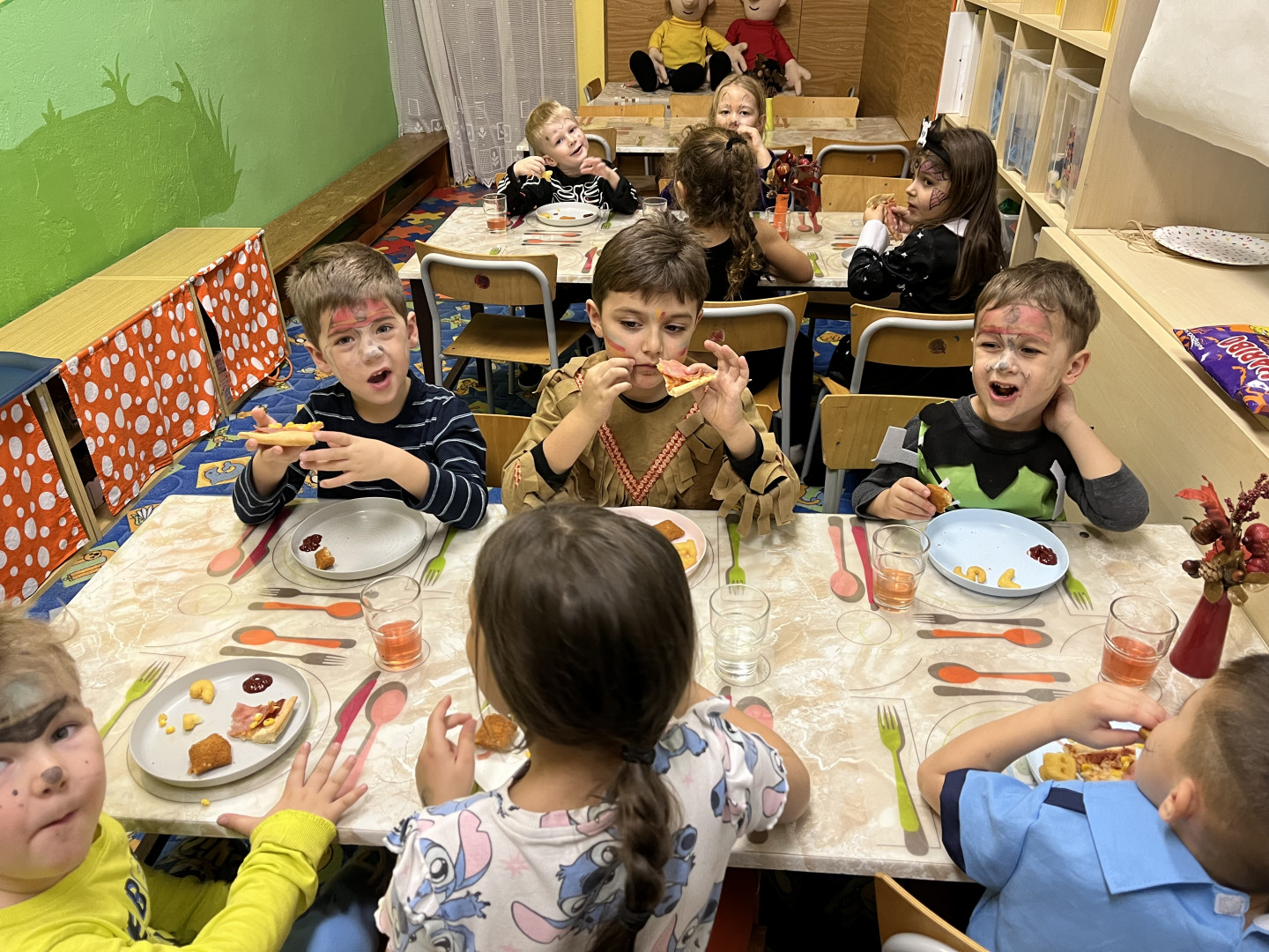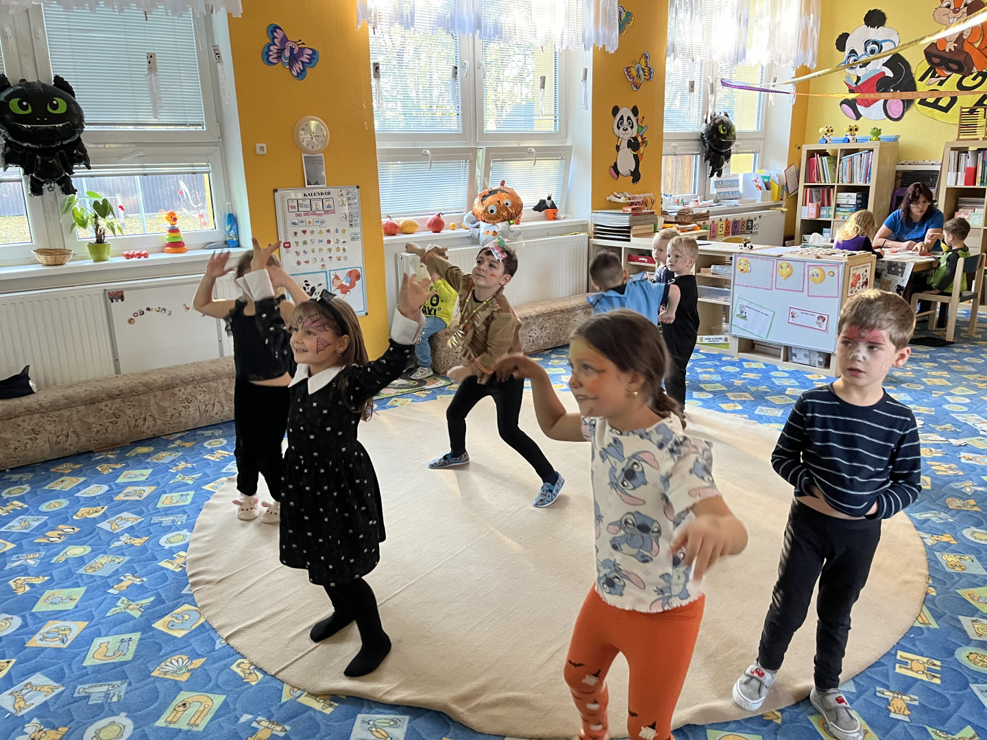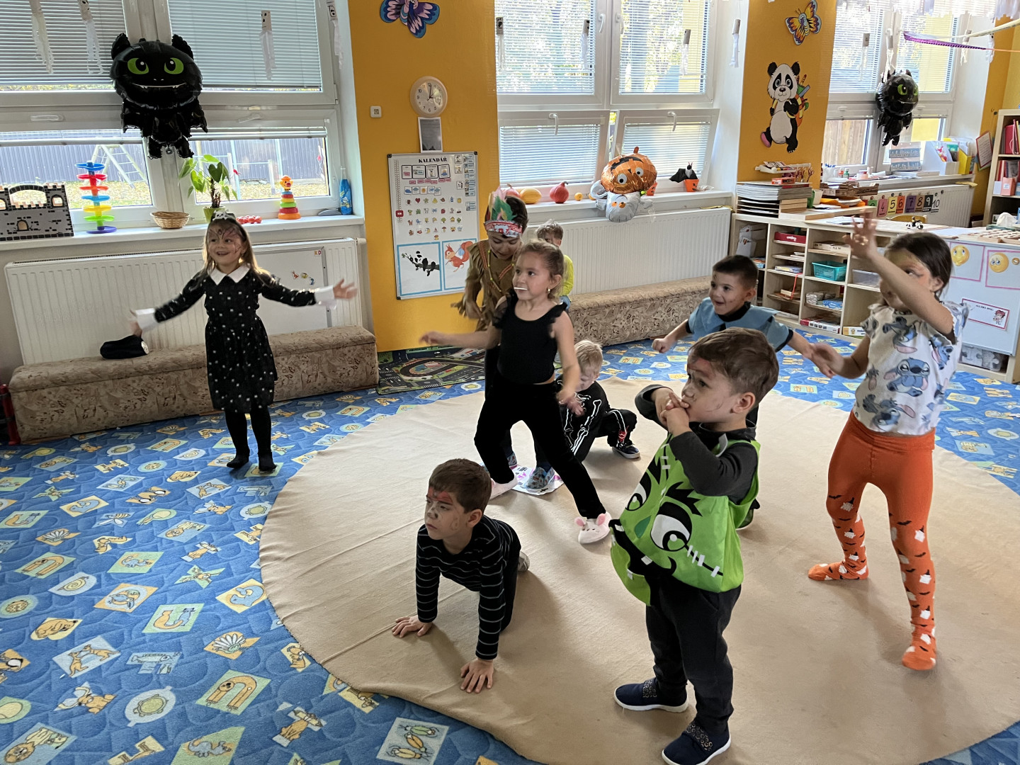 Uspávní broučků s halloweenskou párty a přespáváním ve školce patří mezi naše oblíbené akce. Děti se oblékly do kostýmu, namalovaly jsme jim obličej a protože bylo krásné počasí, párty pokračovala venku. Připravili jsme strašidelnou výzdobu, připravili jsme světla a děti hledaly broučky, které jsme ubytovali do hmyzího hotelu. Děkujeme rodičům za podporu, za spoustu halloweenské dekorace a dobrotek.