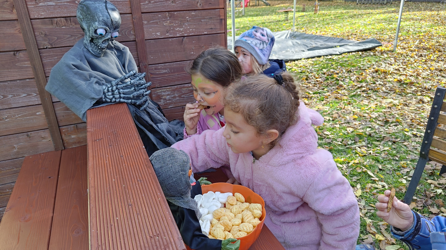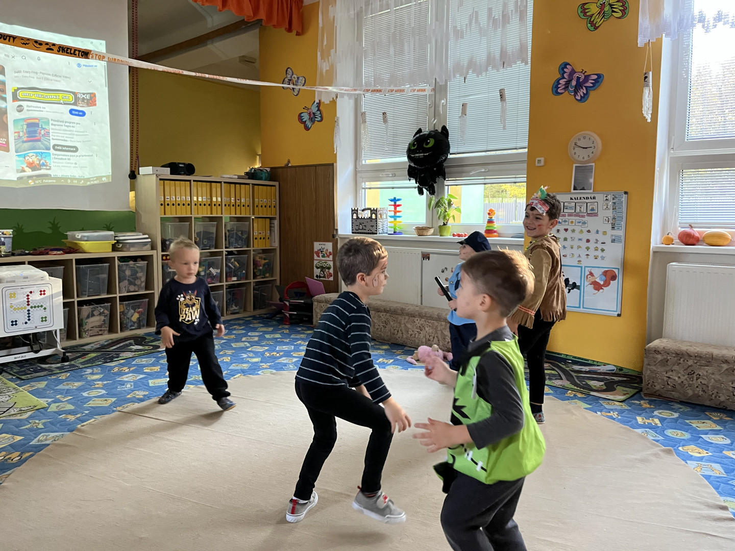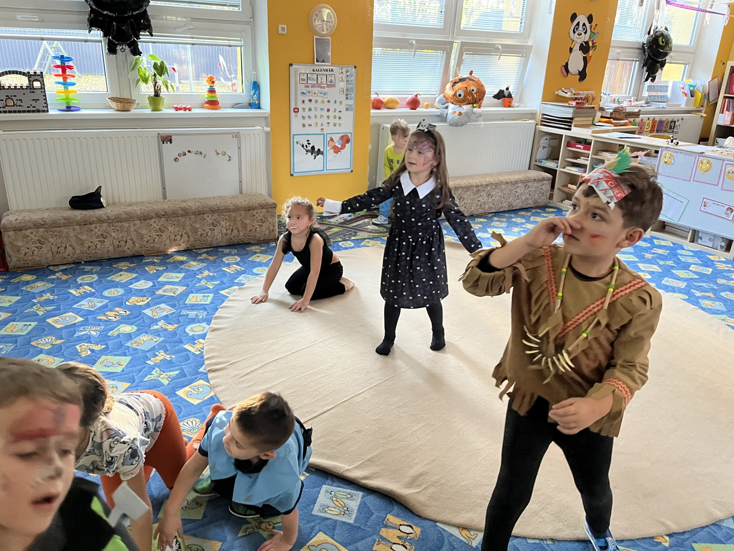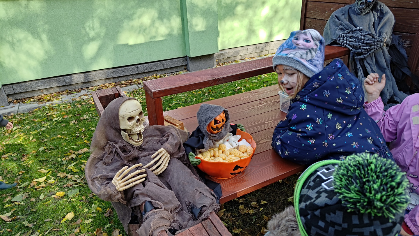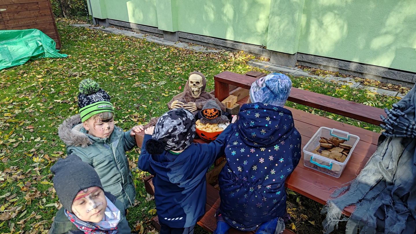Uspávní broučků s halloweenskou párty a přespáváním ve školce patří mezi naše oblíbené akce. Děti se oblékly do kostýmu, namalovaly jsme jim obličej a protože bylo krásné počasí, párty pokračovala venku. Připravili jsme strašidelnou výzdobu, připravili jsme světla a děti hledaly broučky, které jsme ubytovali do hmyzího hotelu. Děkujeme rodičům za podporu, za spoustu halloweenské dekorace a dobrotek.