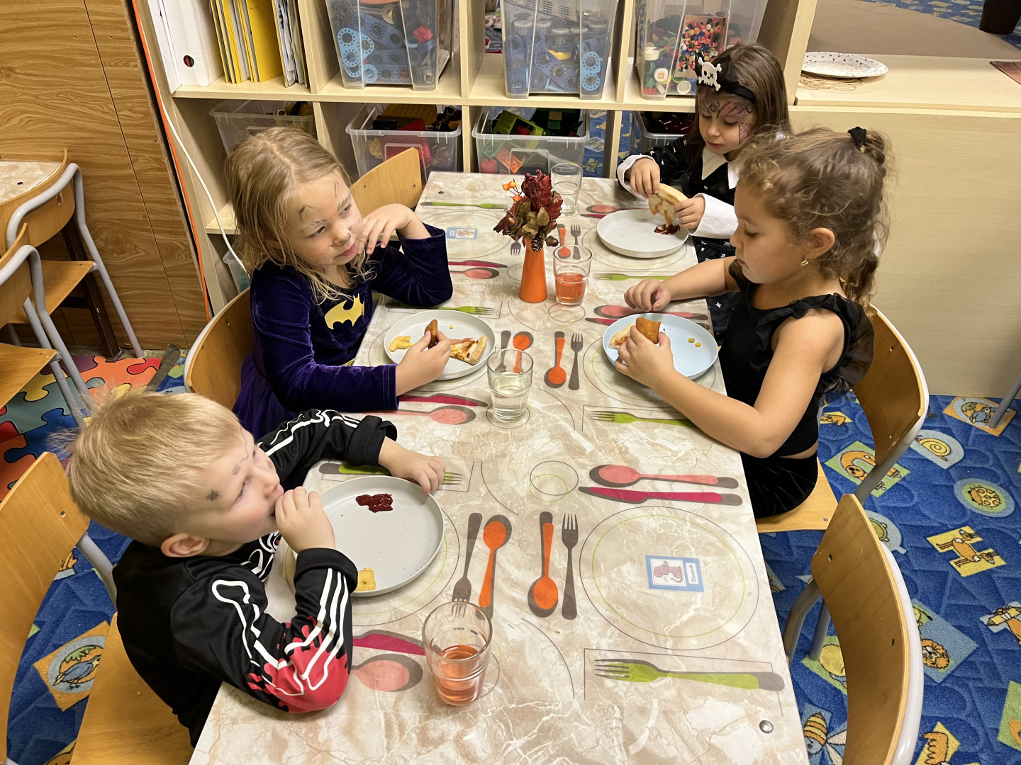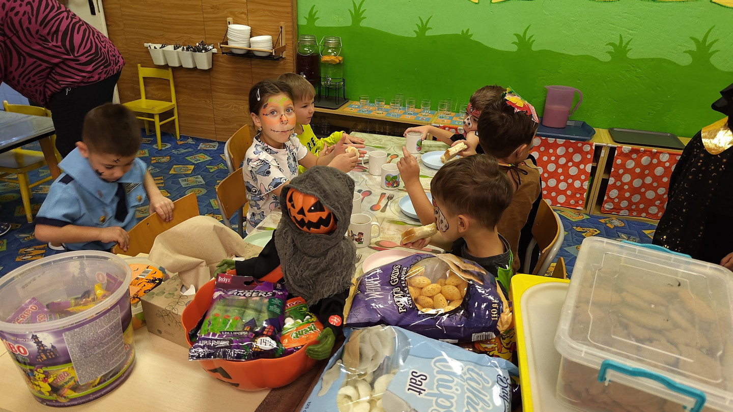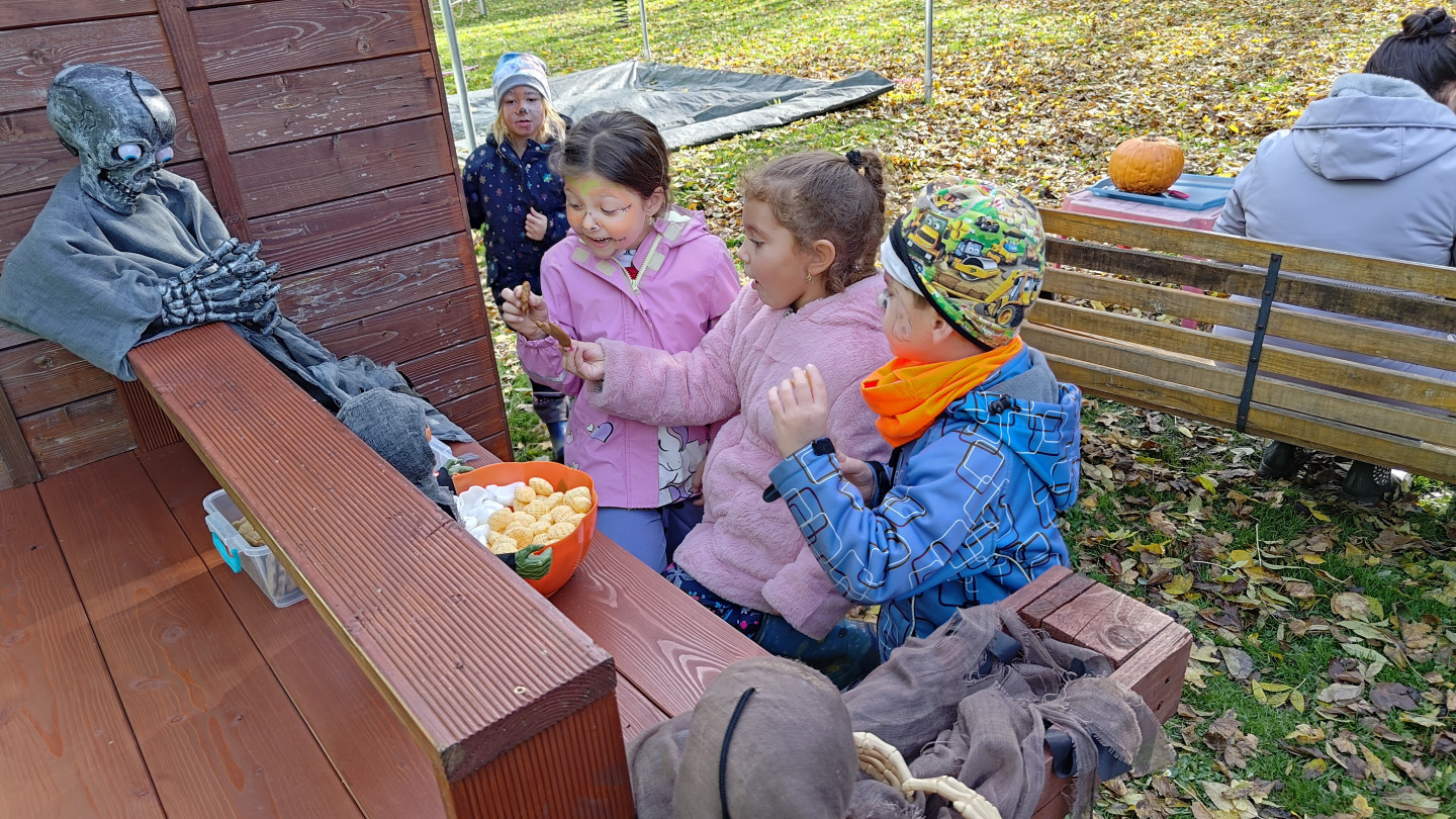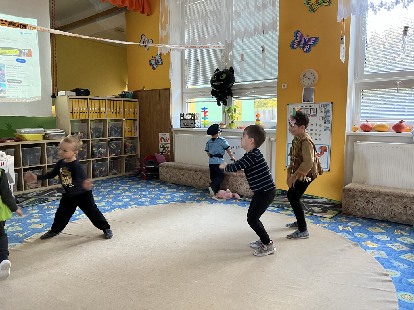Uspávní broučků s halloweenskou párty a přespáváním ve školce patří mezi naše oblíbené akce. Děti se oblékly do kostýmu, namalovaly jsme jim obličej a protože bylo krásné počasí, párty pokračovala venku. Připravili jsme strašidelnou výzdobu, připravili jsme světla a děti hledaly broučky, které jsme ubytovali do hmyzího hotelu. Děkujeme rodičům za podporu, za spoustu halloweenské dekorace a dobrotek.