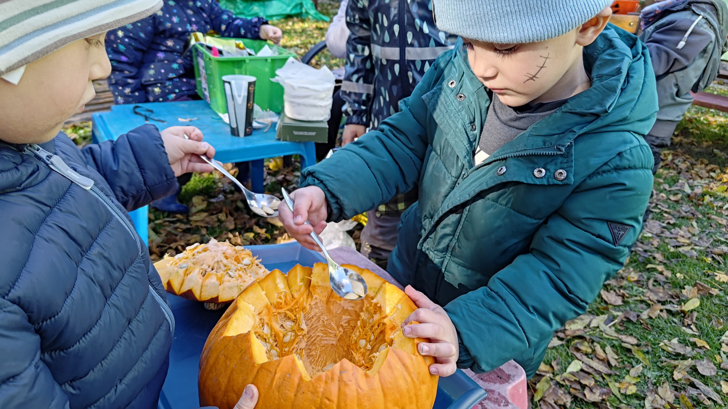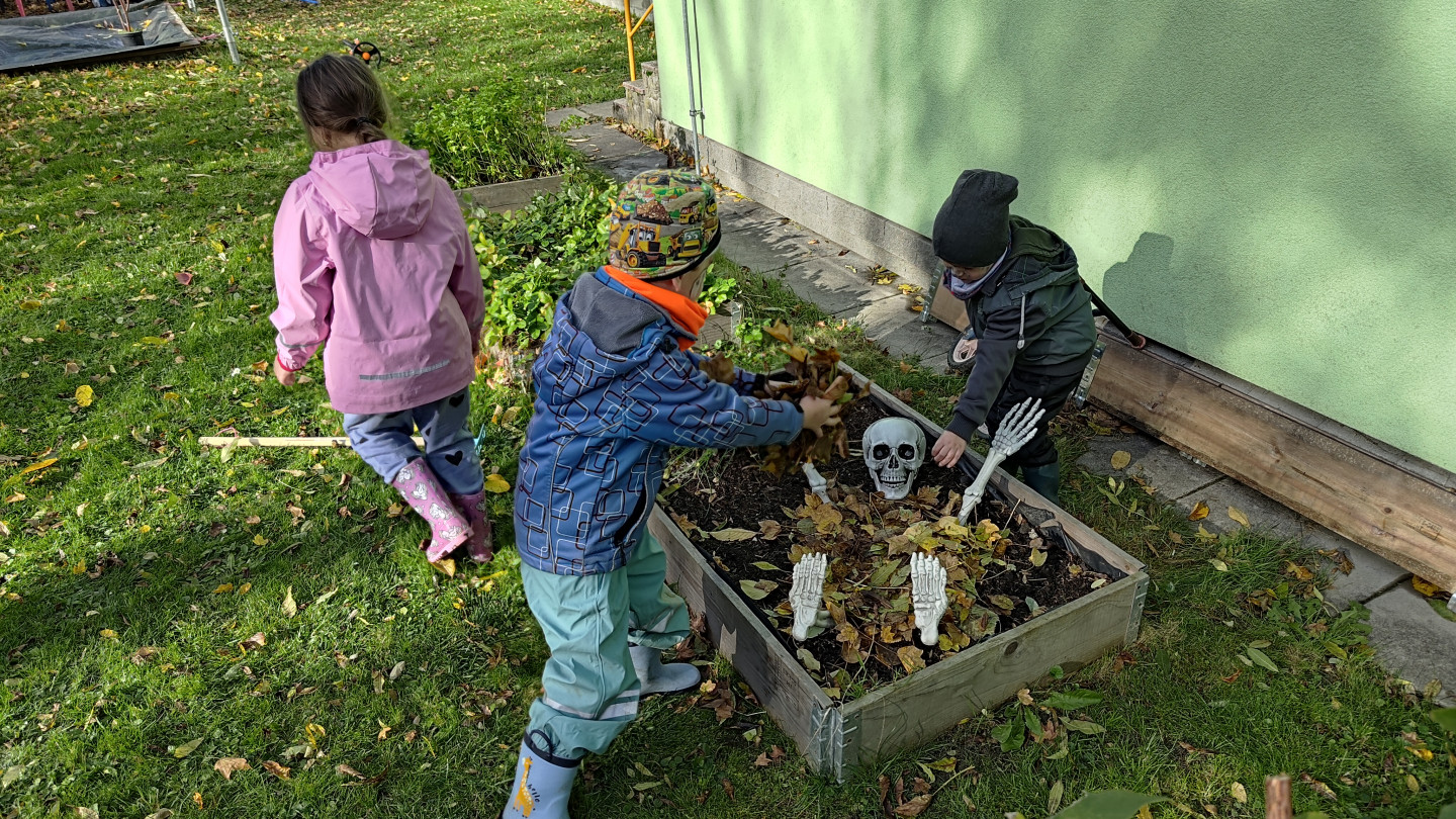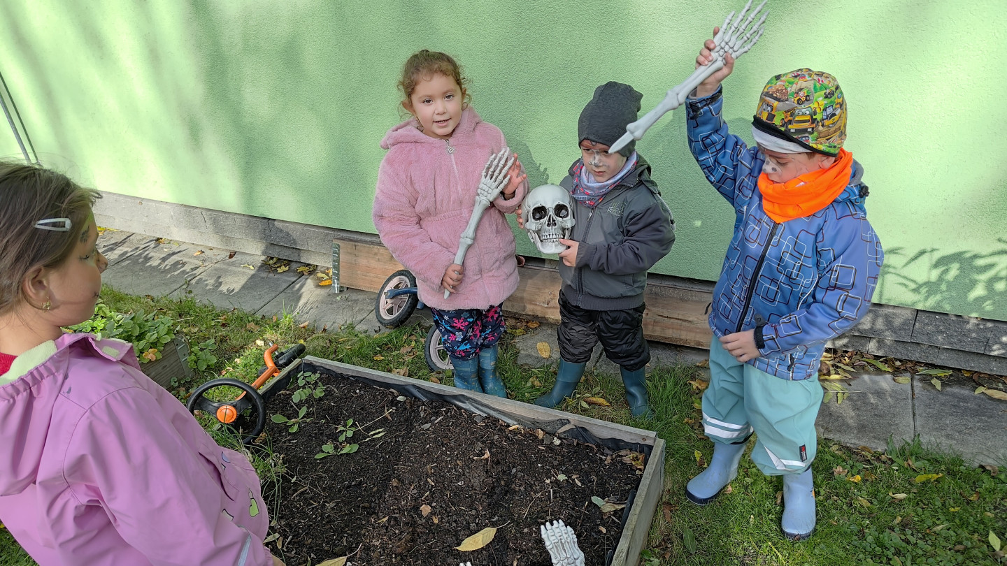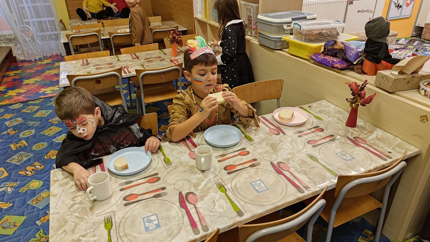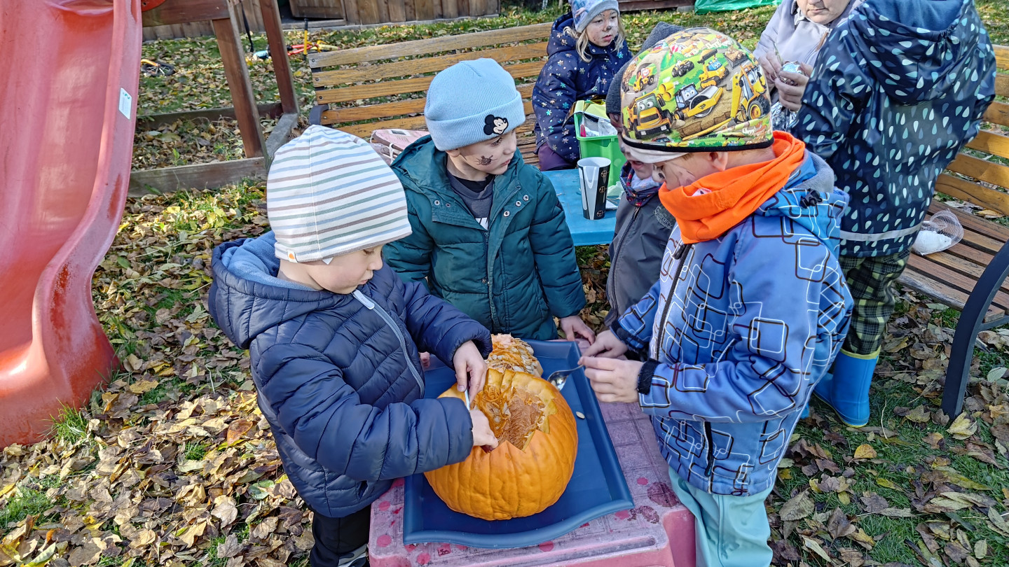 Uspávní broučků s halloweenskou párty a přespáváním ve školce patří mezi naše oblíbené akce. Děti se oblékly do kostýmu, namalovaly jsme jim obličej a protože bylo krásné počasí, párty pokračovala venku. Připravili jsme strašidelnou výzdobu, připravili jsme světla a děti hledaly broučky, které jsme ubytovali do hmyzího hotelu. Děkujeme rodičům za podporu, za spoustu halloweenské dekorace a dobrotek.