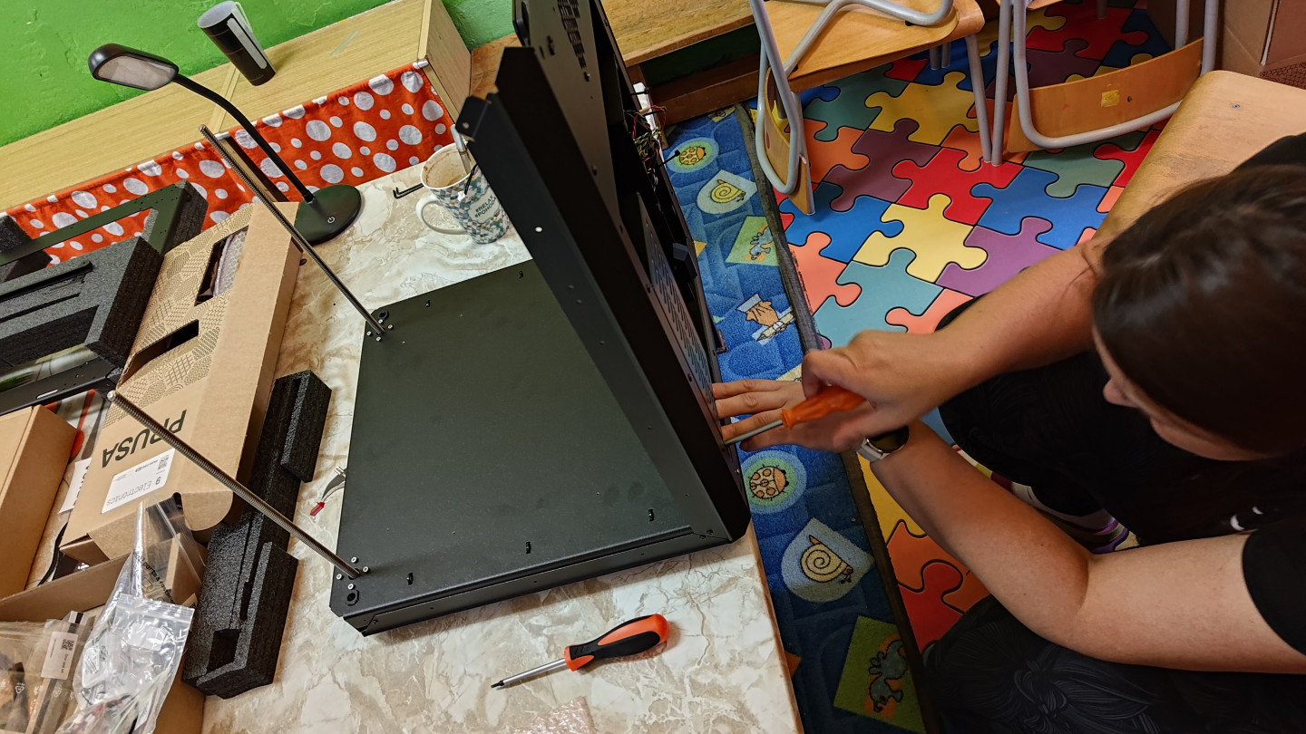 Konečně jsme se dočkali, budeme s dětmi tisknout na 3D tiskárně, ale nejdříve ji musíme poskládat. Snad bude fungovat.