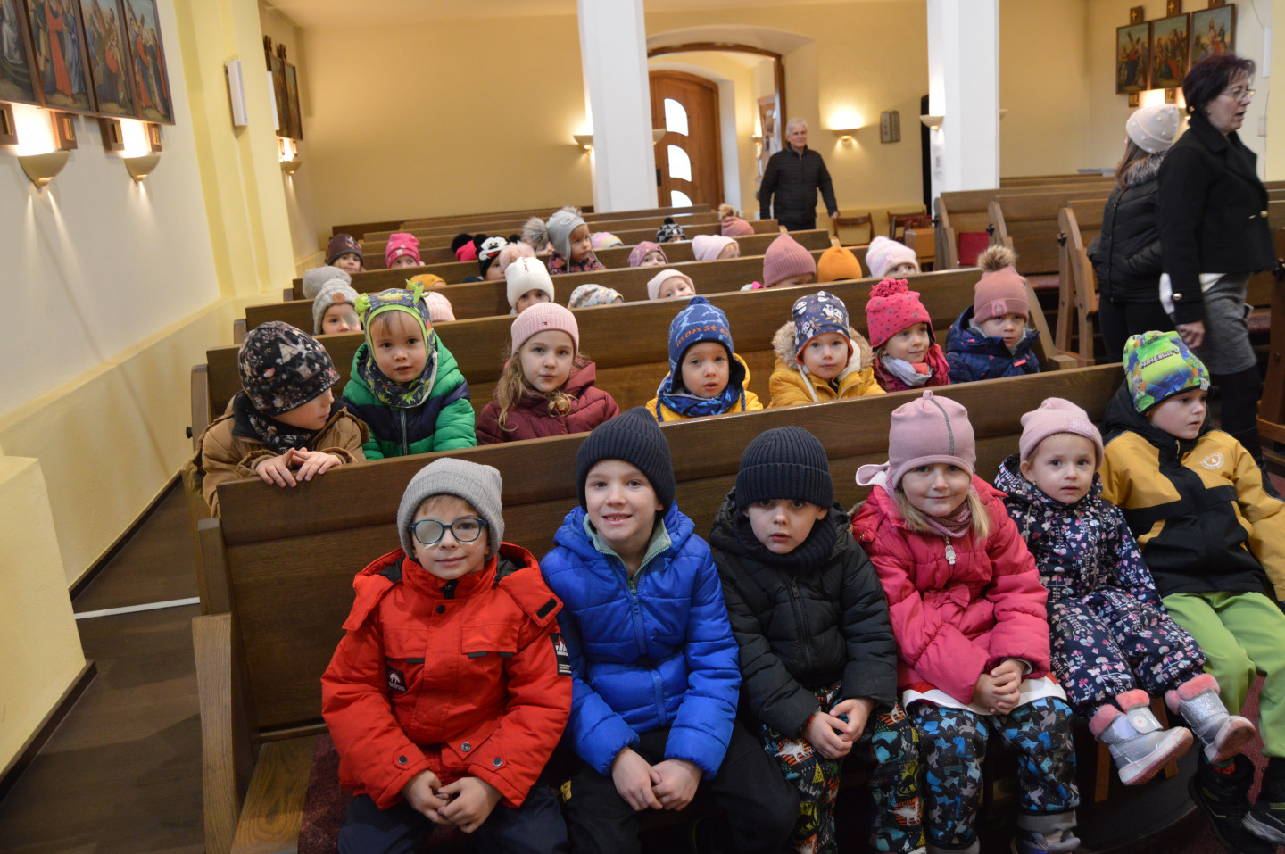 Během dopoledne jsme s dětmi zašli společně s dětmi z mateřské školy Chrustova a Na Liščině do kostela sv. Marka v Heřmanicích. Jelikož jsme zaplnili celý kostel, zazněly i zvony.