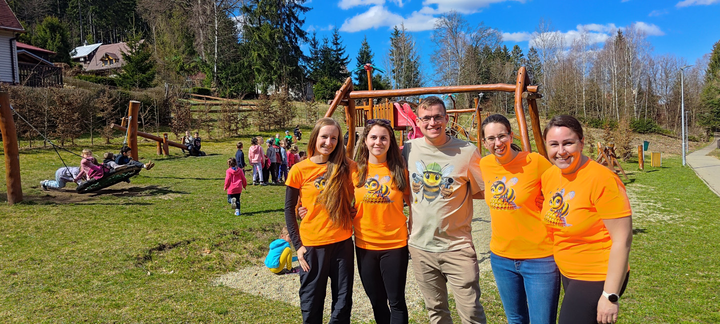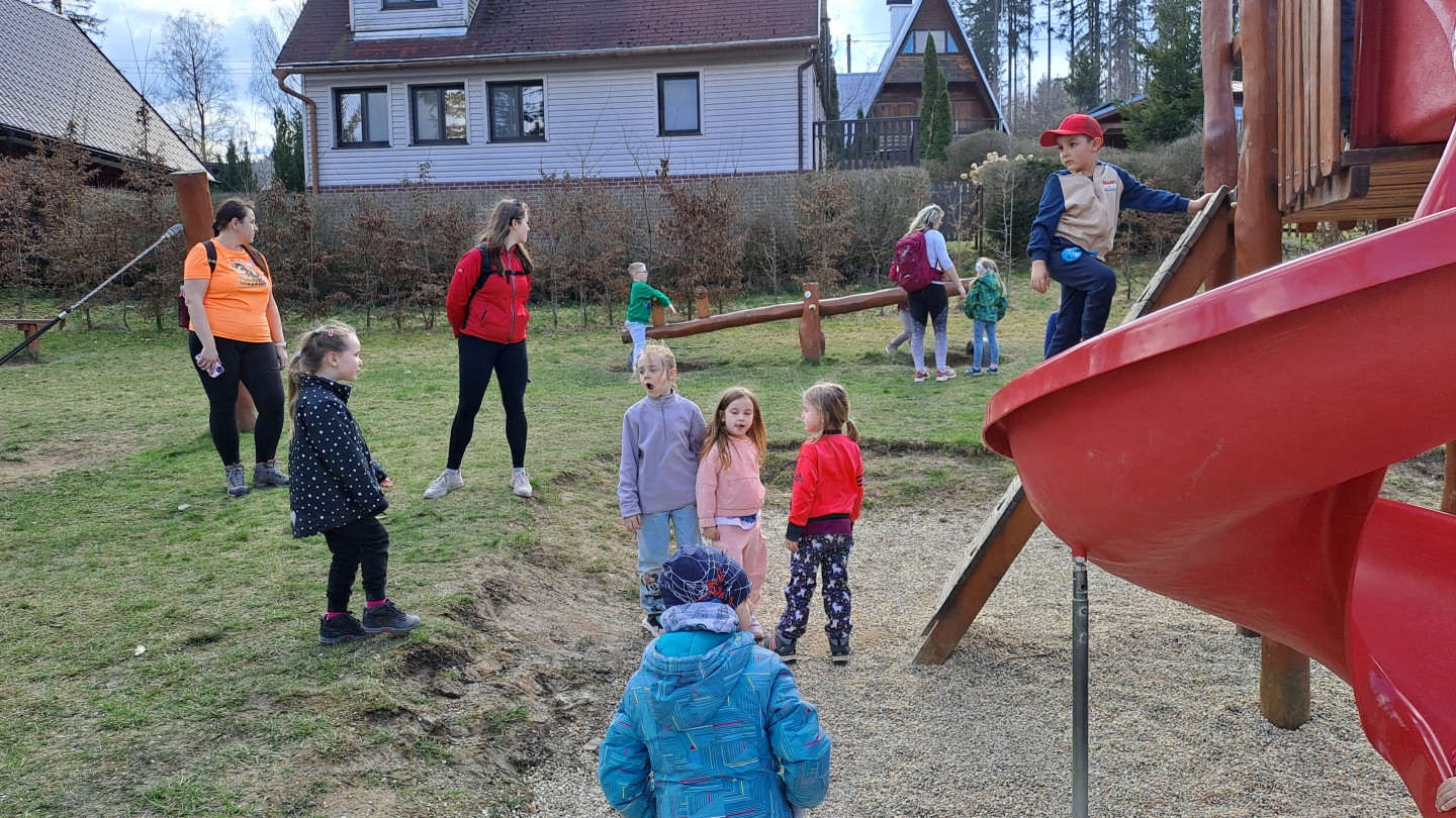 Z autobusu ..... Zadní část autobusu hraje hru - "Vidím nebe...." a je divné, že ho nikdo nevidí. Dojeli jsme v pořádku. Čeká nás nejhorší část..... vybalovaní. To žádný učitel nepřeje ani nepříteli. Tak držte palce, ať to máme už za sebou. Děti jsou happy.