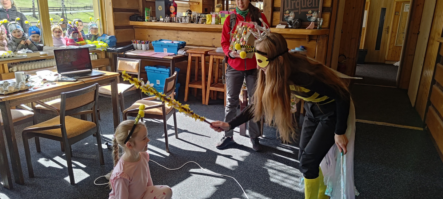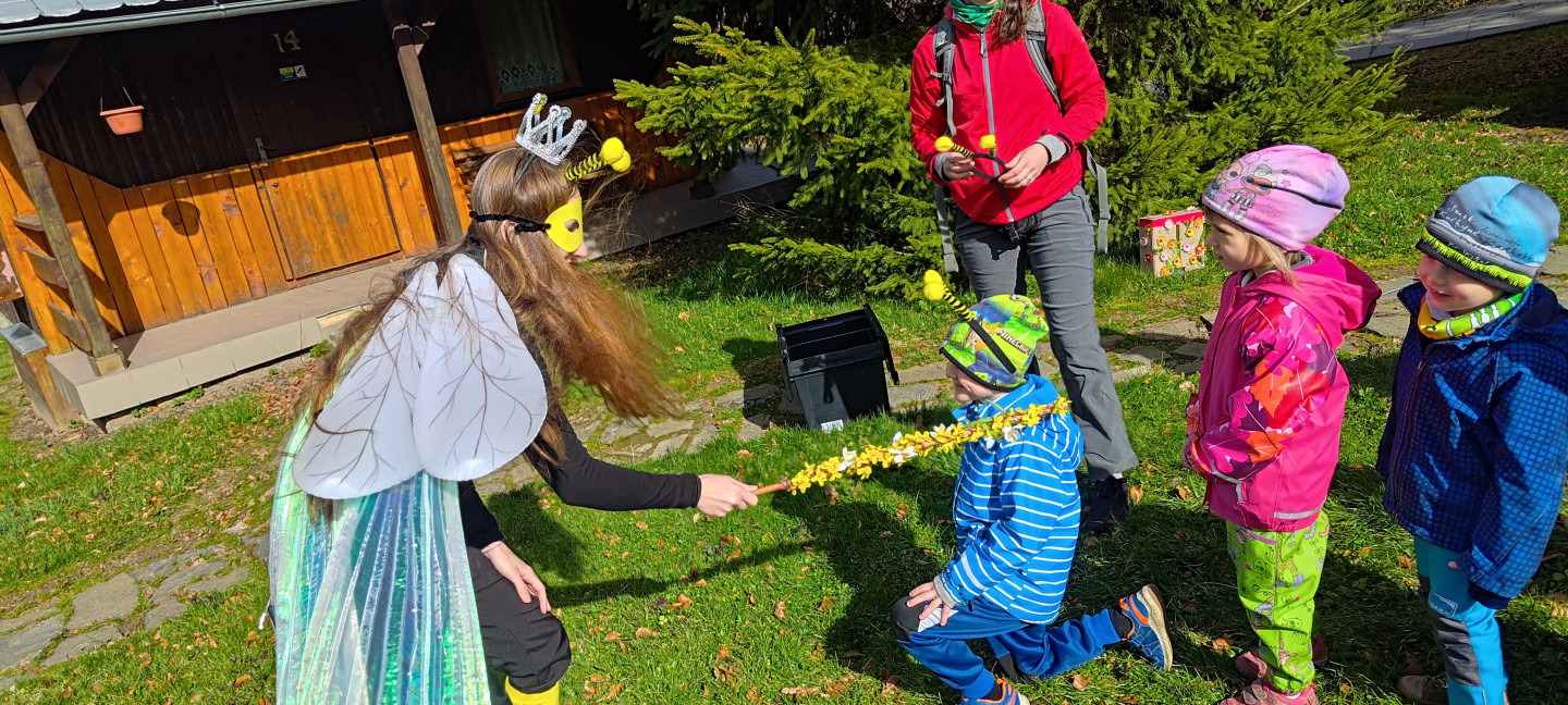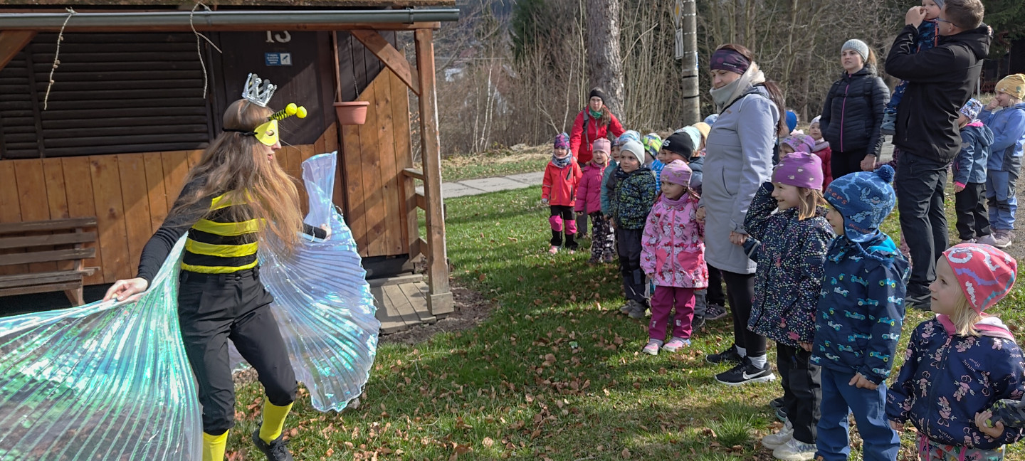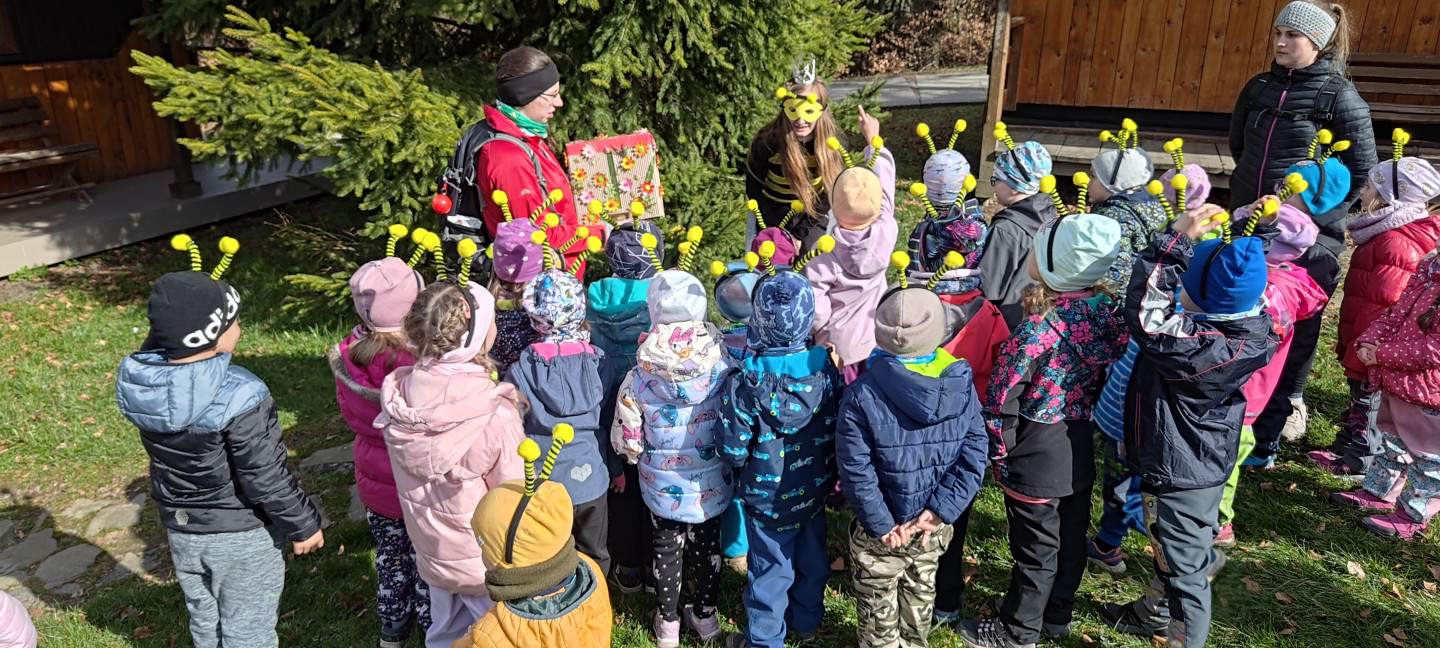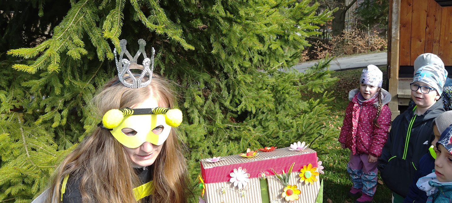 Dneska nás navštívila včelí královna, která nás poprosila o pomoc s hlídáním úlu před zlým sršňěm, který včele neustále krade zásoby. Královna nám všem rozdala své tykadélka a pasovala nás na včelí dělnice a trubce. Svěřila nám na hlídání svůj úl, do kterého jsme odpoledne na louce posbírali pyl, abychom jí doplnily zásoby.