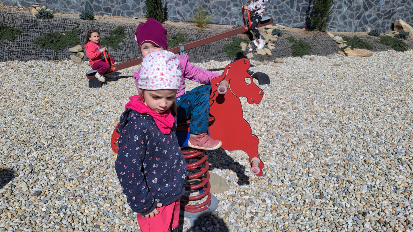 Poté jsme se převlékli na ven a šli na procházku, po které jsme zůstali na dětském hřišti.