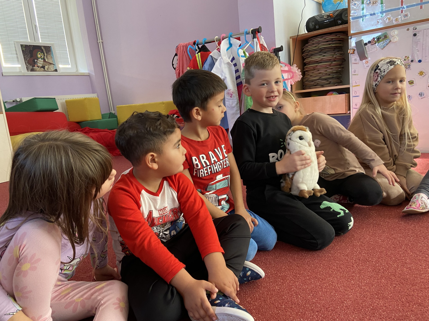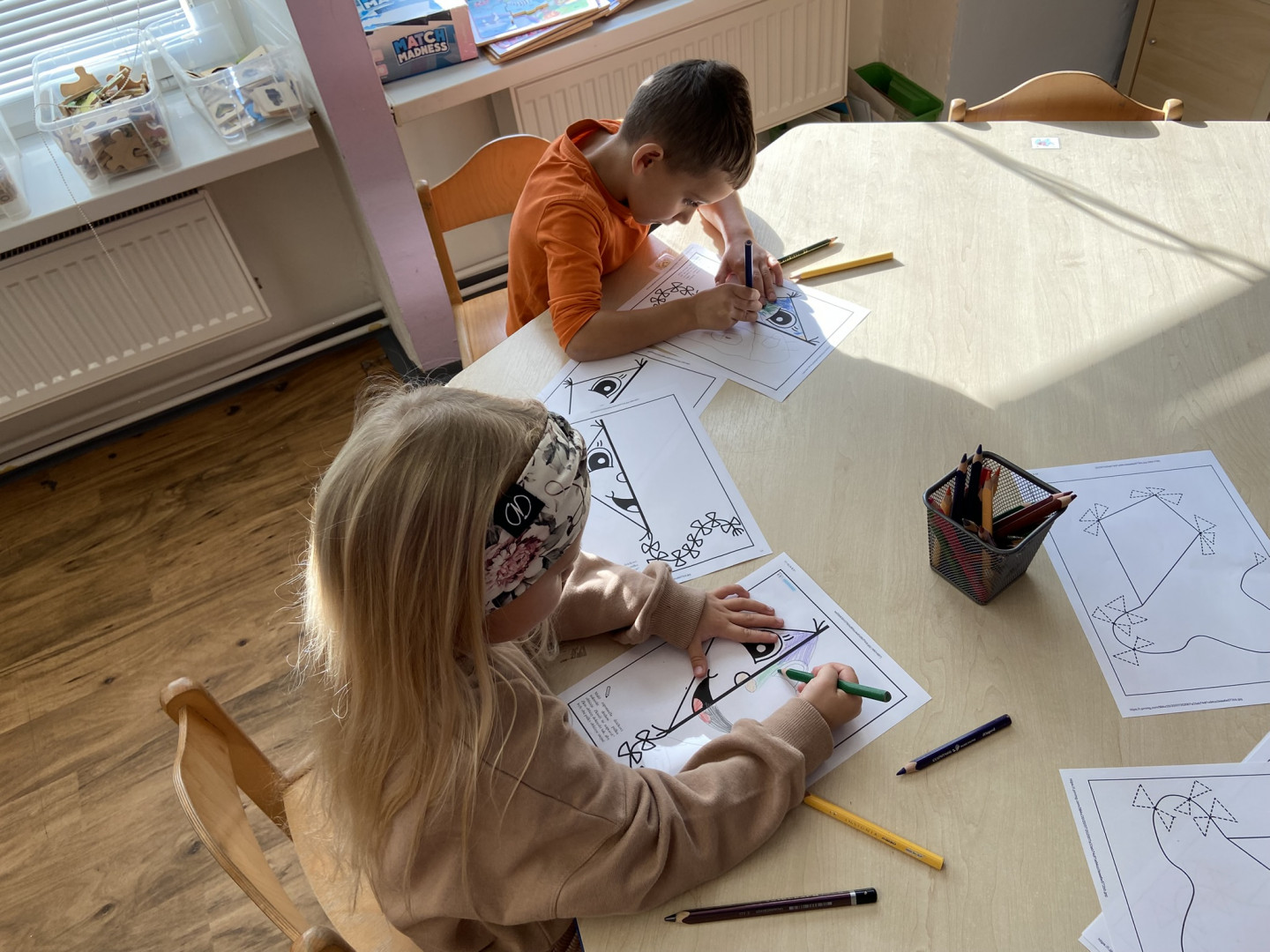 S dětmi si povídáme o podzimním počasí, změnách v přírodě na podzim. Dnes jsme do aktivit ve třídě zapojili draky. Děti je barvily, vázaly uzlíky na šňůrce nebo skládaly kostky na předkreslený obrázek. Nakonec si děti v kruhu zhodnotily, jak jim činnosti šly, co je bavilo apod.
