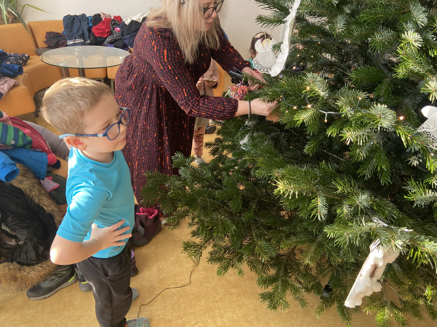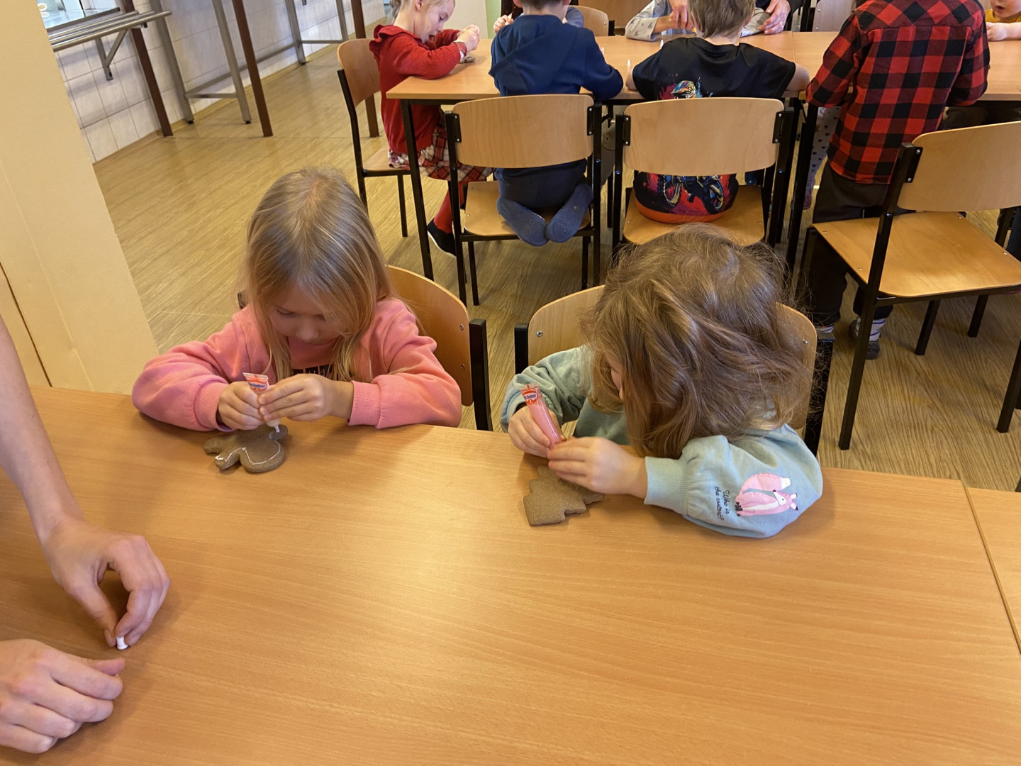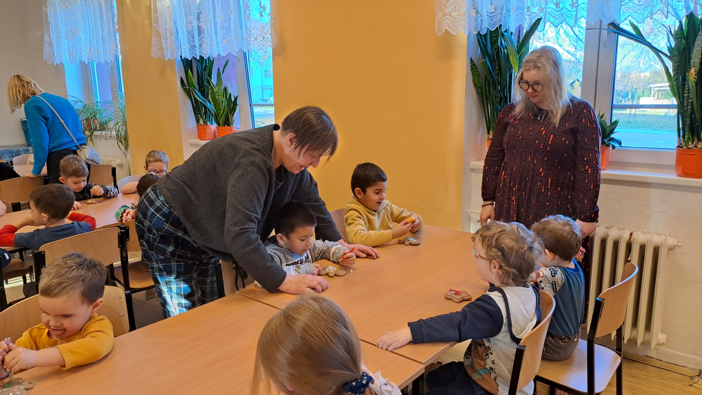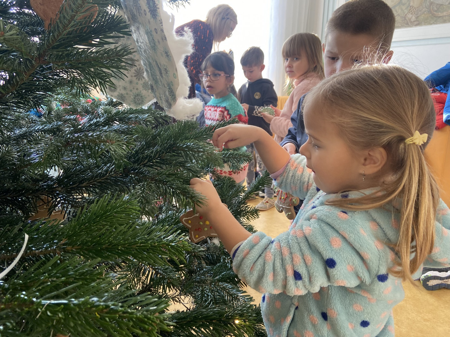 S dětmi jsme dopoledne strávili v ZŠ Chrustová. Děti si ve školní jídelně daly svačinu a poté si s paní učitelkami ozdobily perníčky. Poté děti nazdobené perníčky pověsily ve škole na Vánoční stromeček.