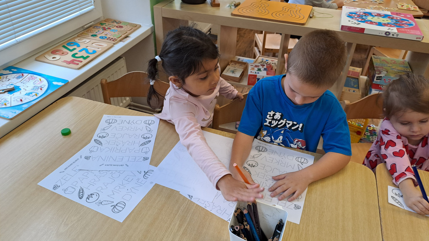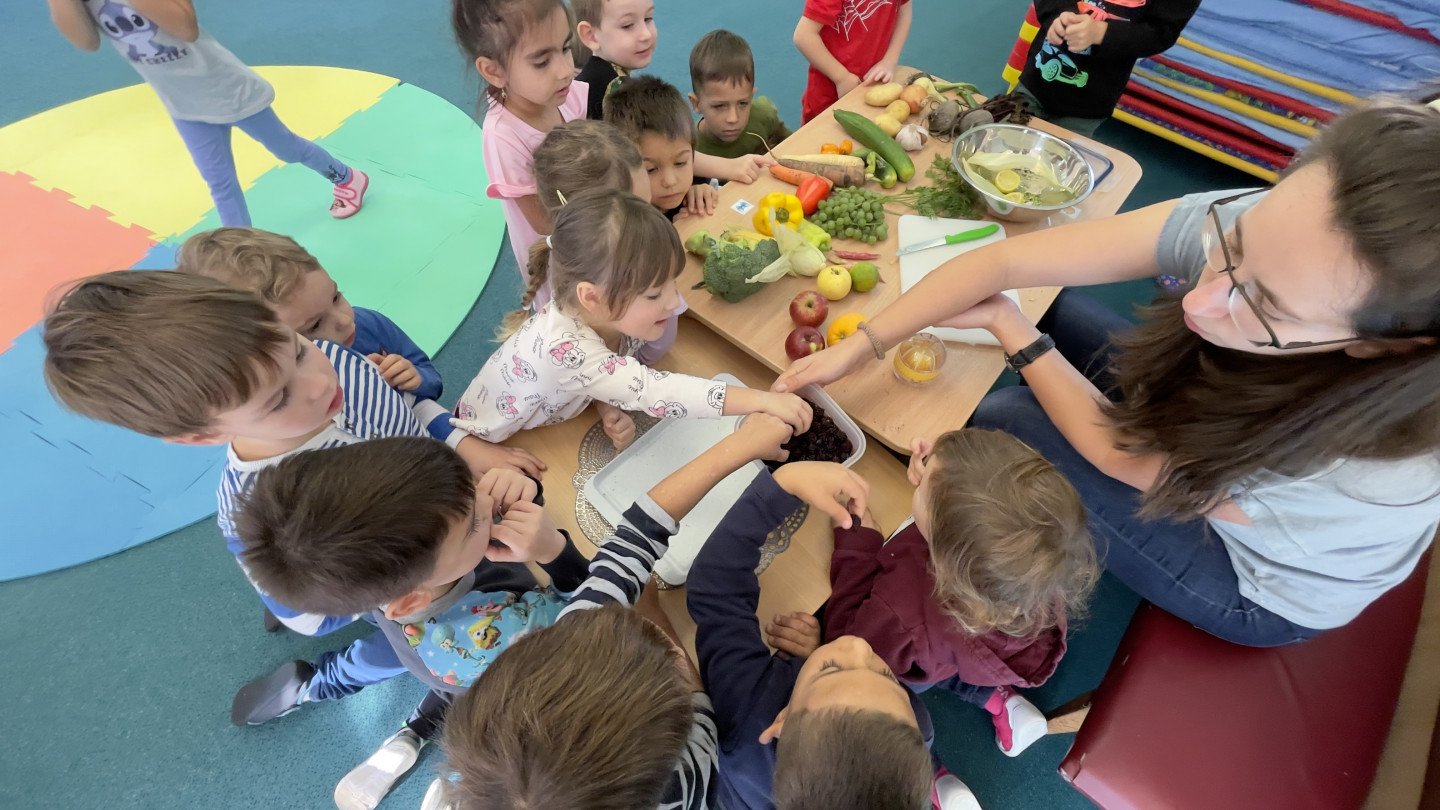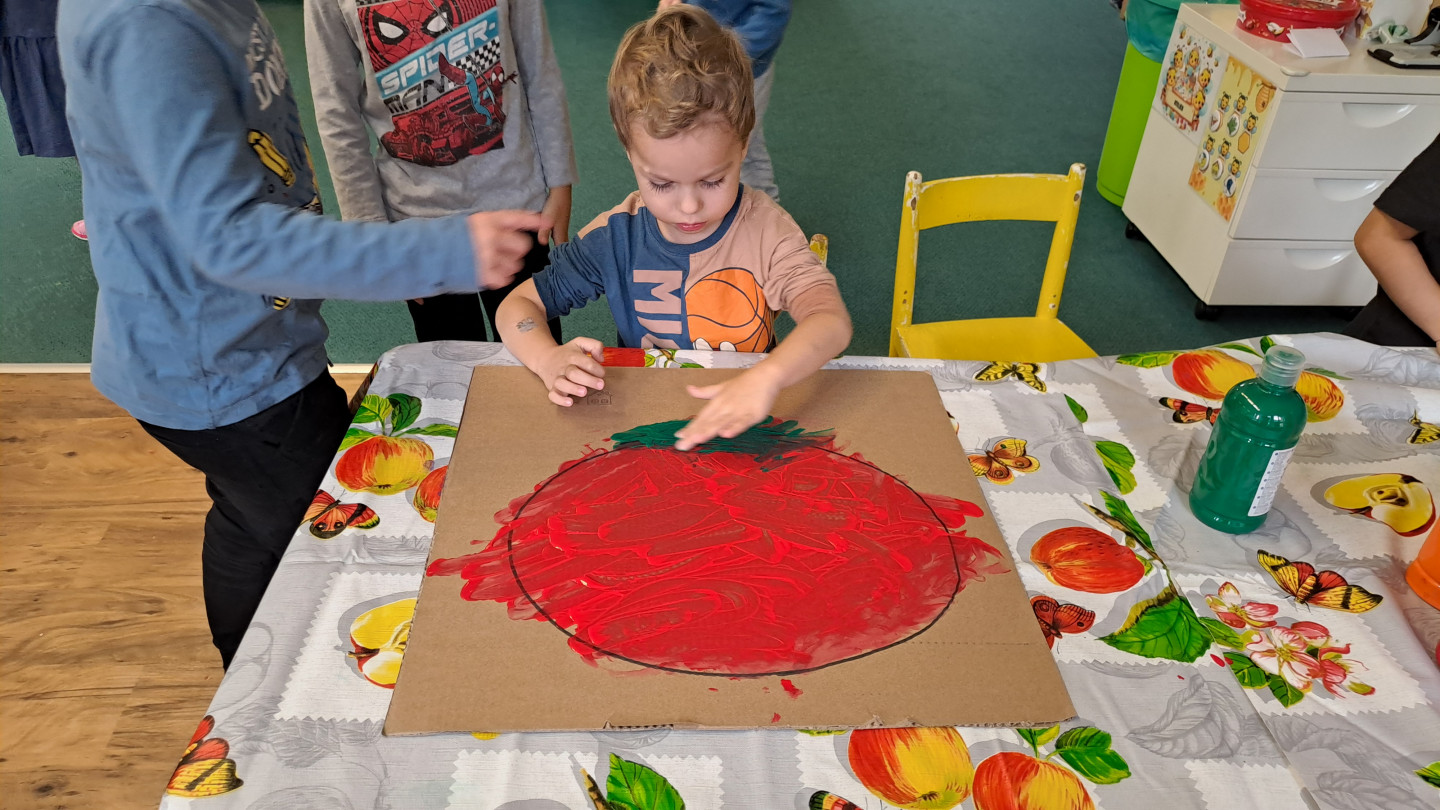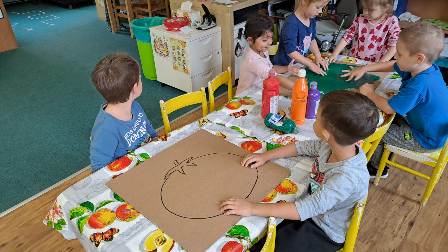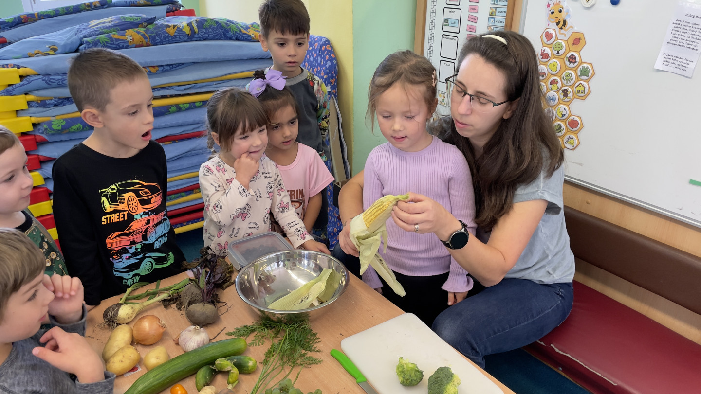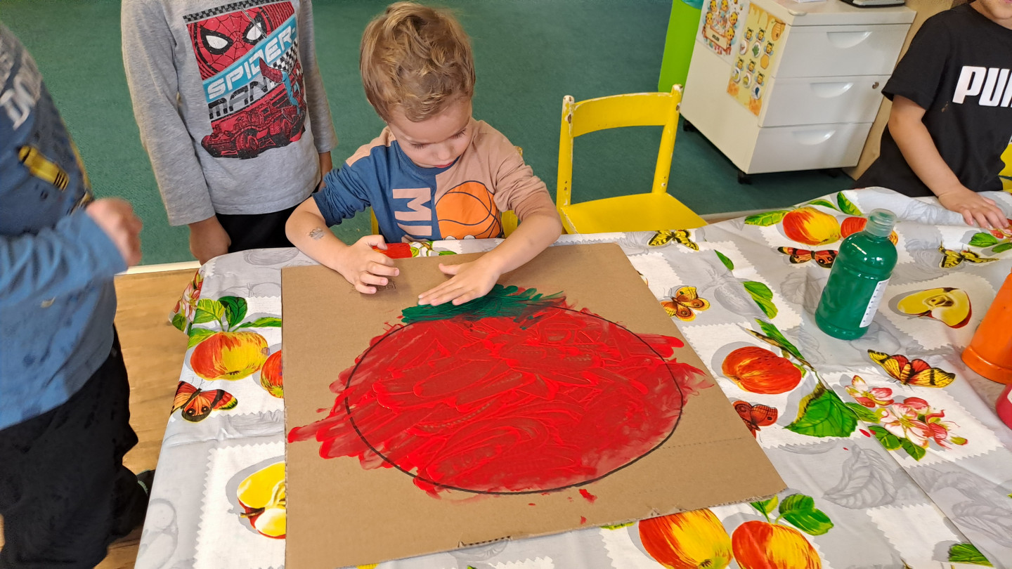 29.9. - S dětmi se věnujeme, krásnému tématu Ovoce a Zelenina. S dětmi jsme ochutnávaly brokolici, hroznové víno, papriku, mrkvičku, i jarní cibulku. Vymačkali jsme šťávu z limetky a udělali si limonádu. Dětem moc chutnala.