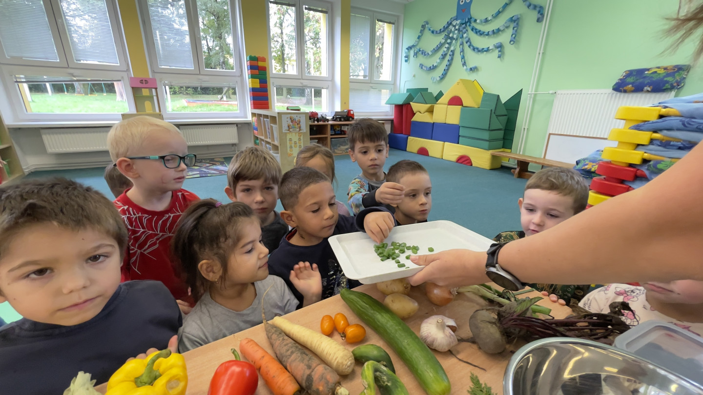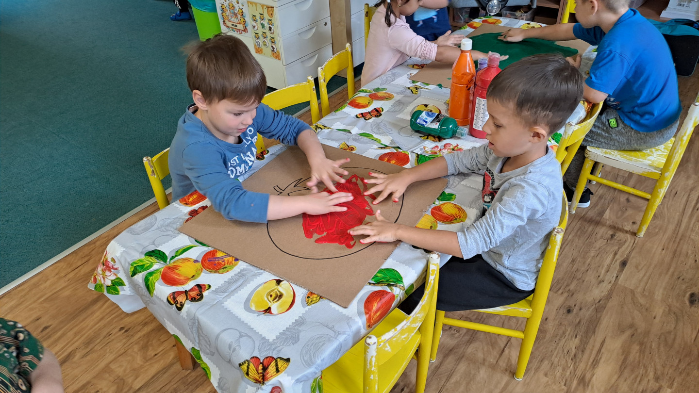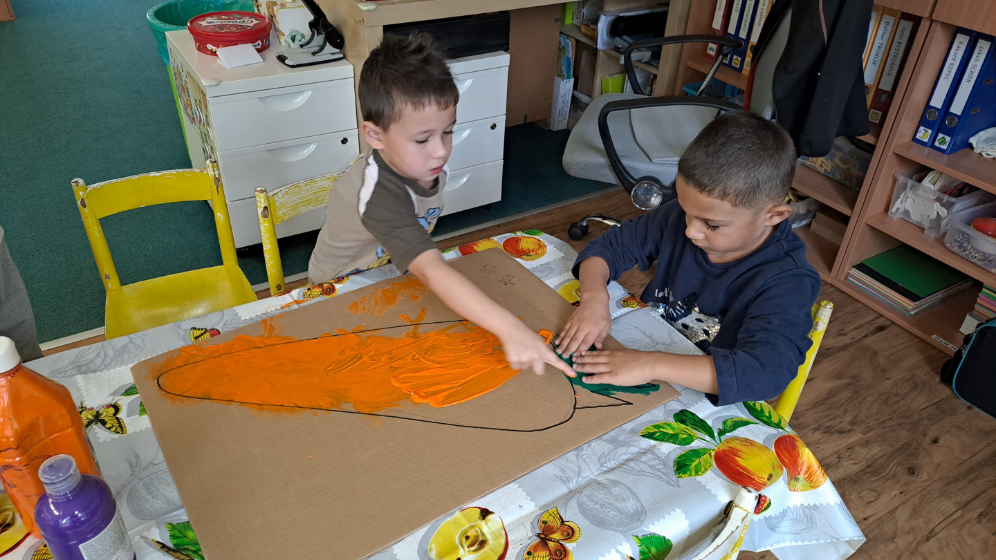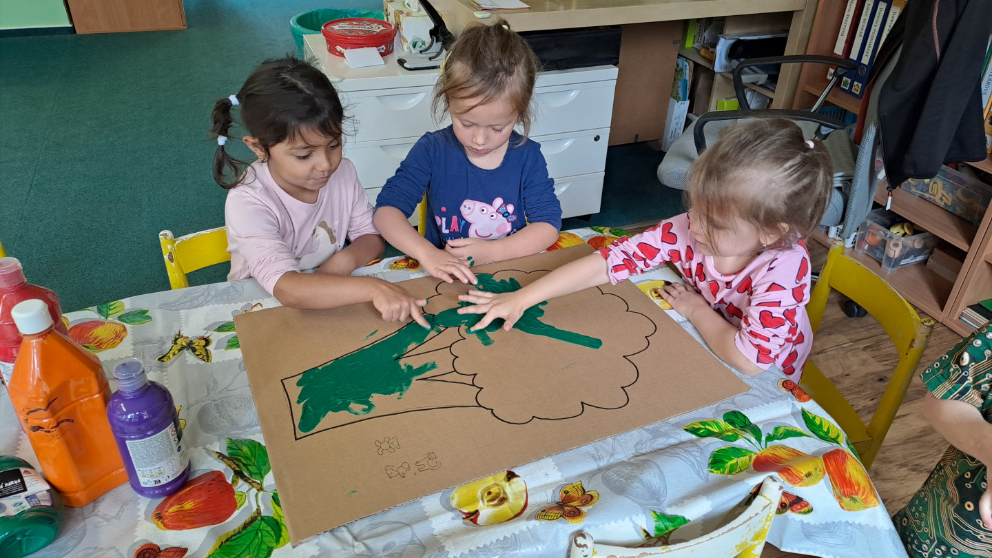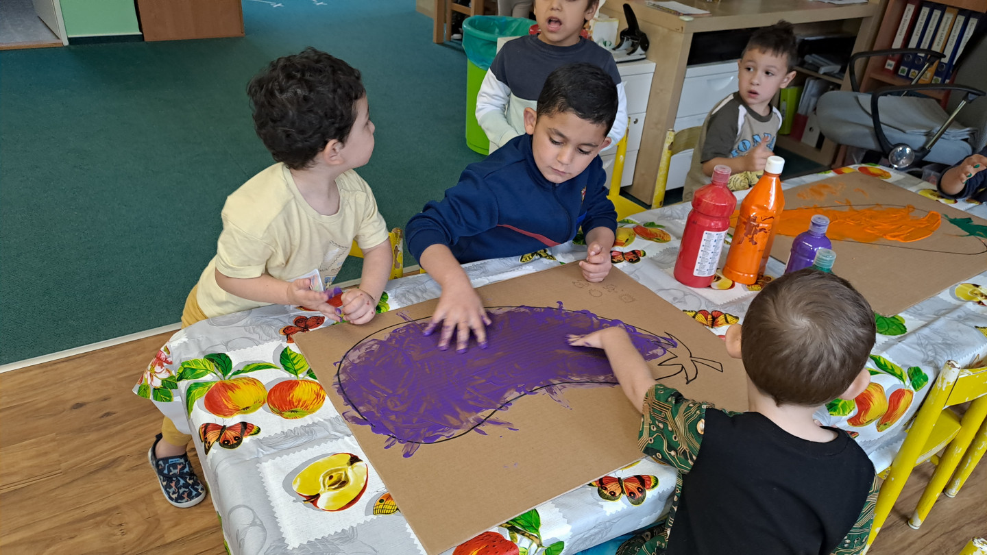 29.9. - S dětmi se věnujeme, krásnému tématu Ovoce a Zelenina. S dětmi jsme ochutnávaly brokolici, hroznové víno, papriku, mrkvičku, i jarní cibulku. Vymačkali jsme šťávu z limetky a udělali si limonádu. Dětem moc chutnala.