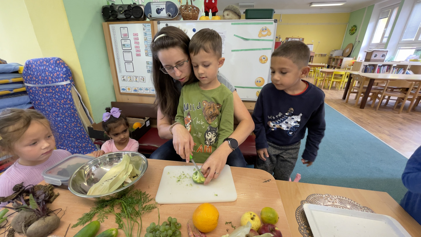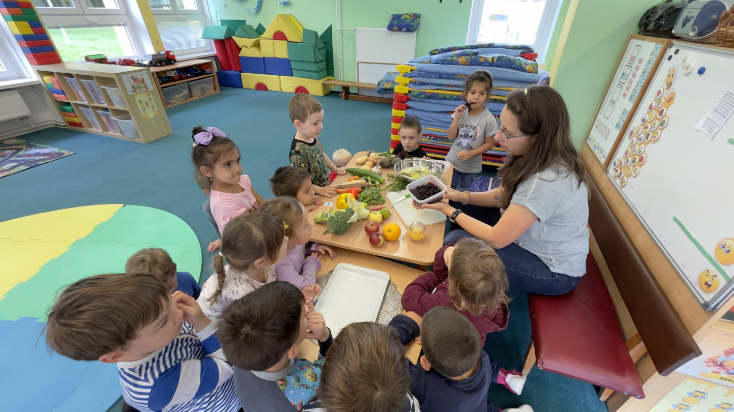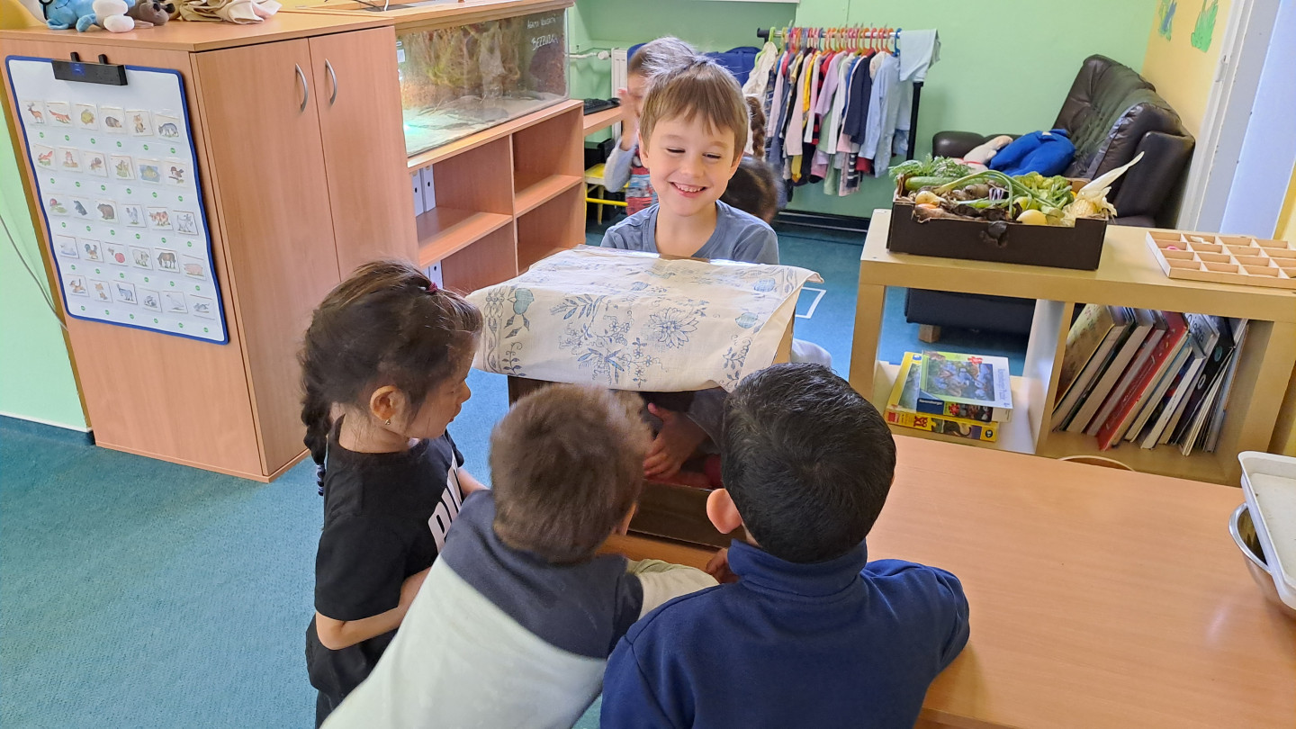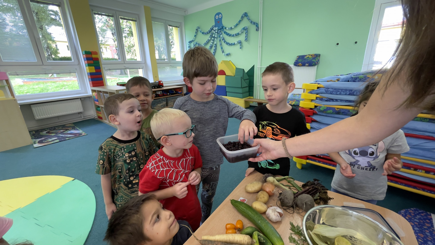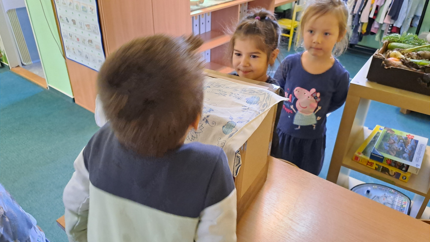 Jedno z aktivit bylo hádat v tajemném boxu jaká zelenina nebo ovoce se tam skrývá, jen za pomoci hmatu.