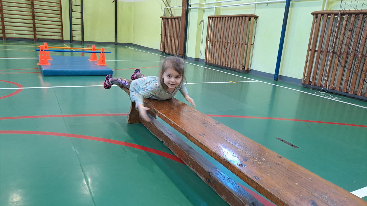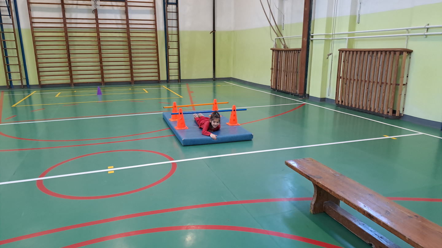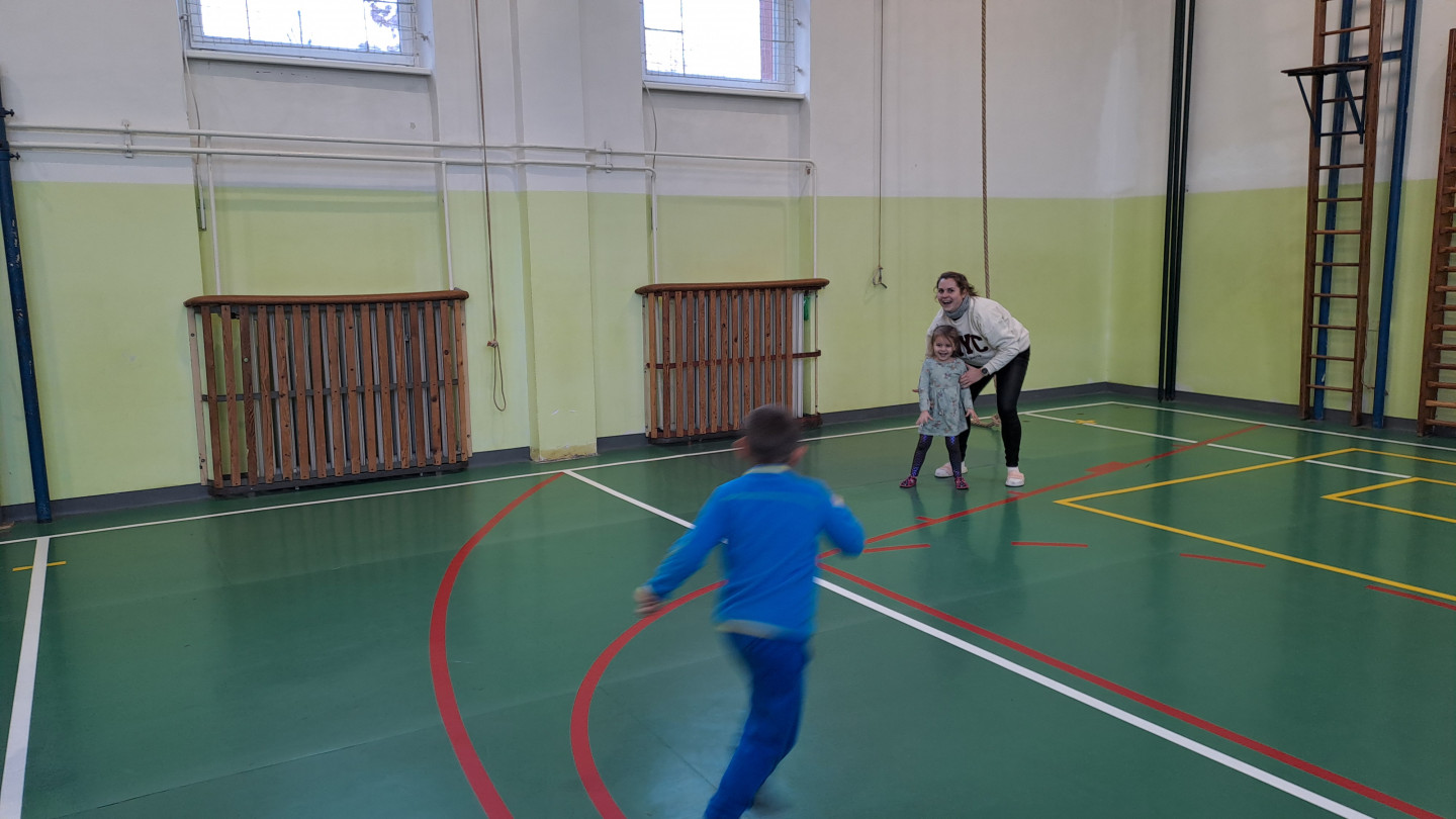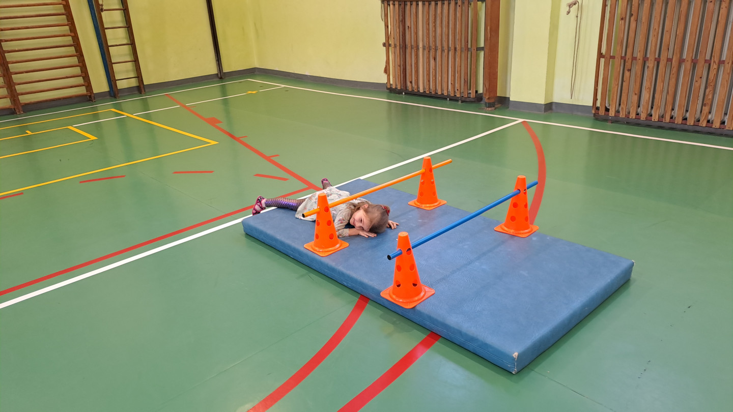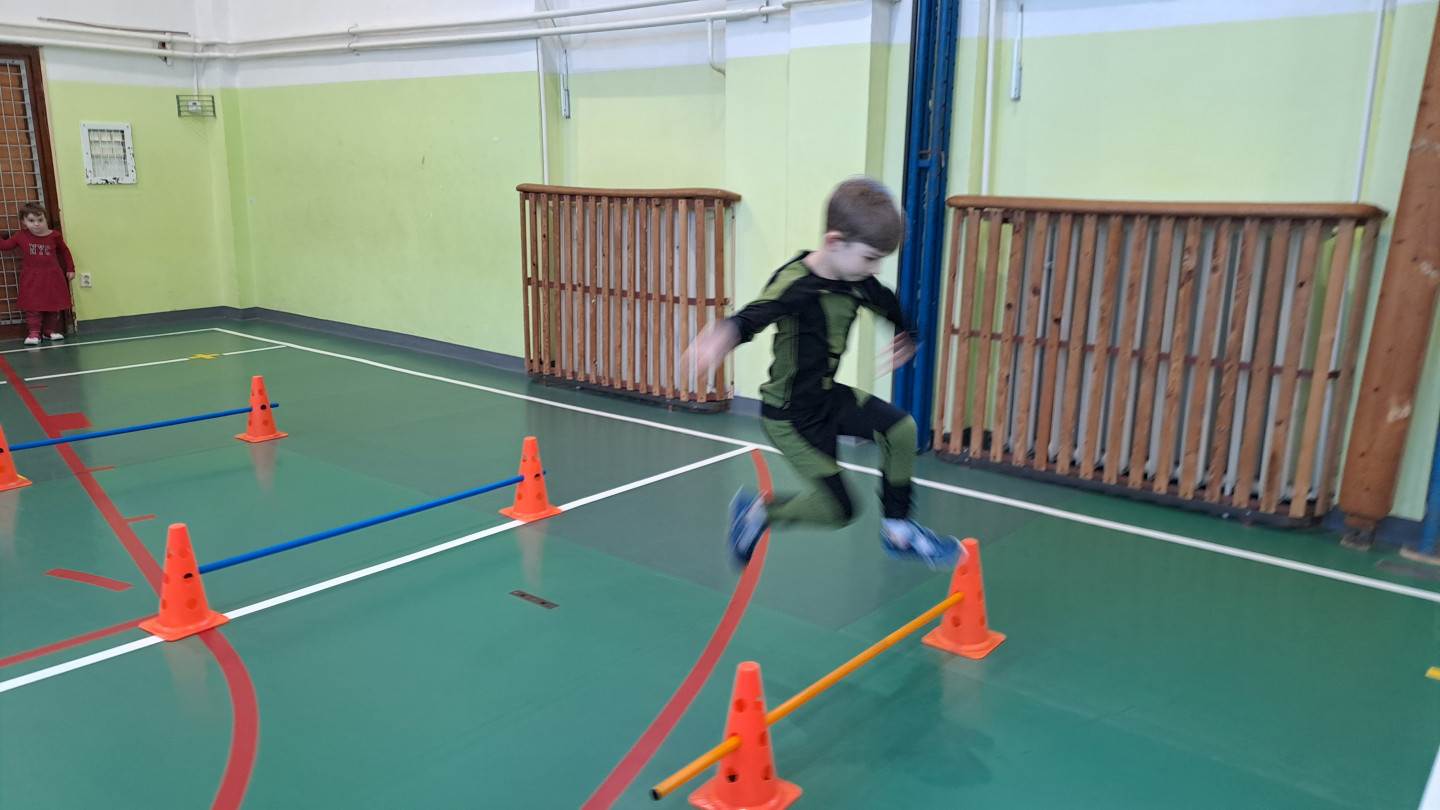 Dětem jsme připravily překážkovou dráhu a poté jsme si zahrály hru na Bacil. Děti utíkaly před bacilem (paní učitelkou) a kdo byl chycený tak roztahl nohy a musel počkat na Vitamín (Daneček), který děti vylečil podlezením.