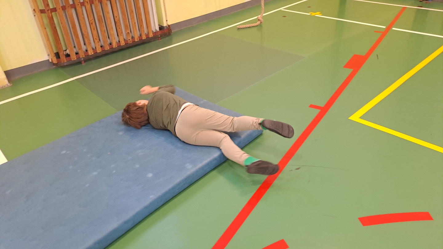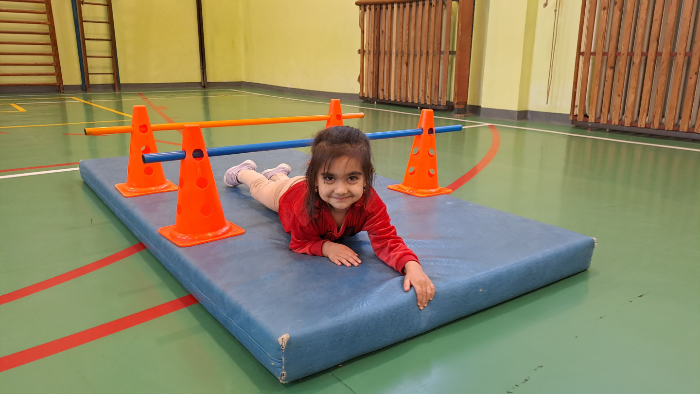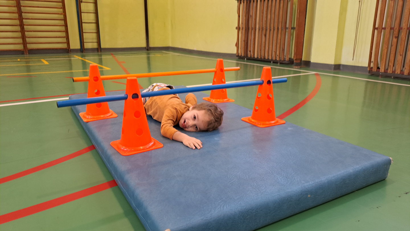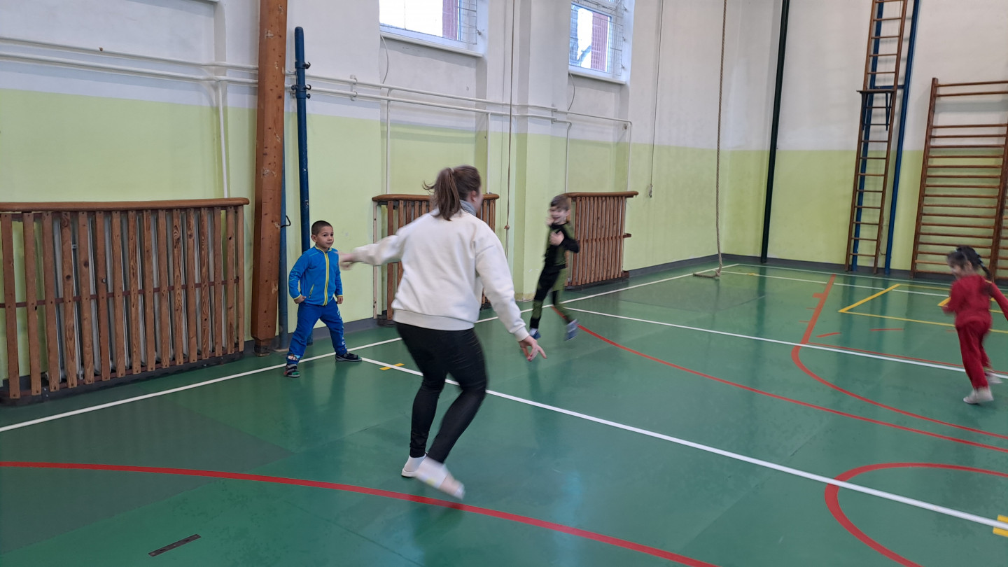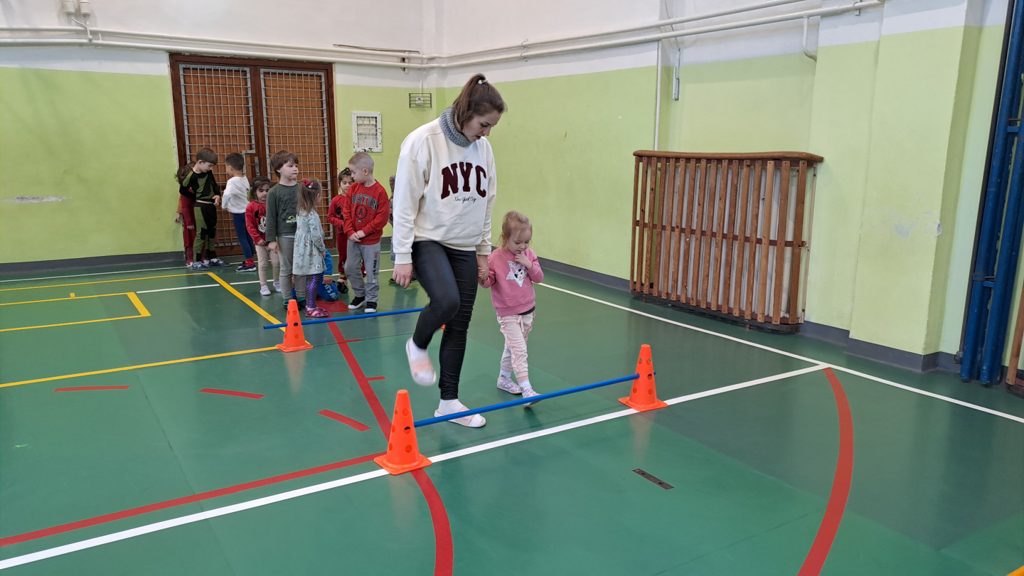 Dětem jsme připravily překážkovou dráhu a poté jsme si zahrály hru na Bacil. Děti utíkaly před bacilem (paní učitelkou) a kdo byl chycený tak roztahl nohy a musel počkat na Vitamín (Daneček), který děti vylečil podlezením.
