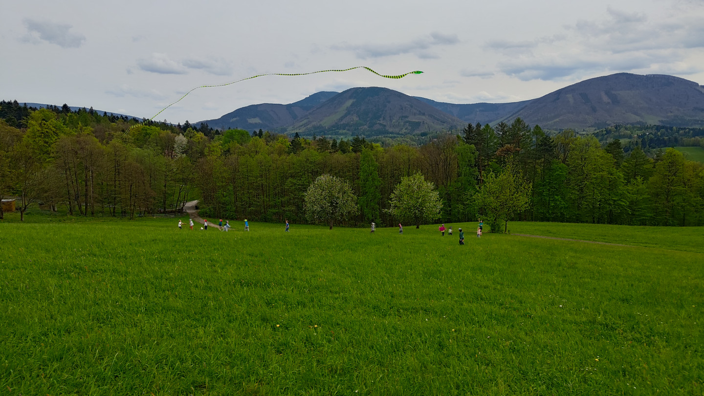 Po vydatné snídani nás opět navštívil dráček Mráček a říkal, že stále nenašel svou kamarádku princeznu. Zprávy jsou jasné.... někdo ji unesl. Víme však, že je v pořádku. Také víme, že stopy k nalezení vedou do pohádky o princezně Zlatovlásce. Vydáváme se na cestu k jezeru u Červeného Hrádku. Tam nás čeká první dobrodružství tohoto dne.