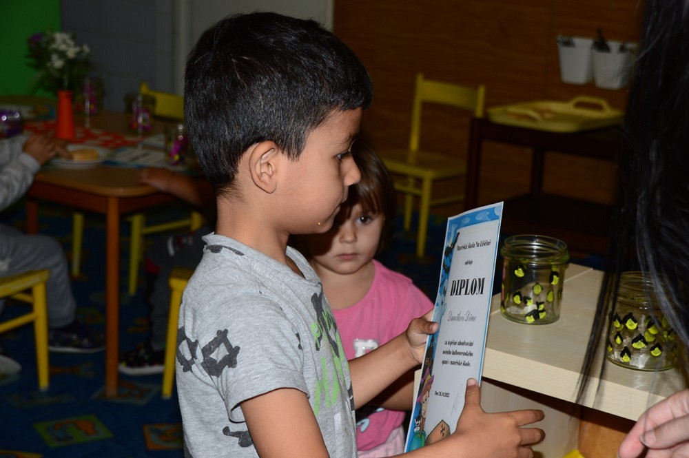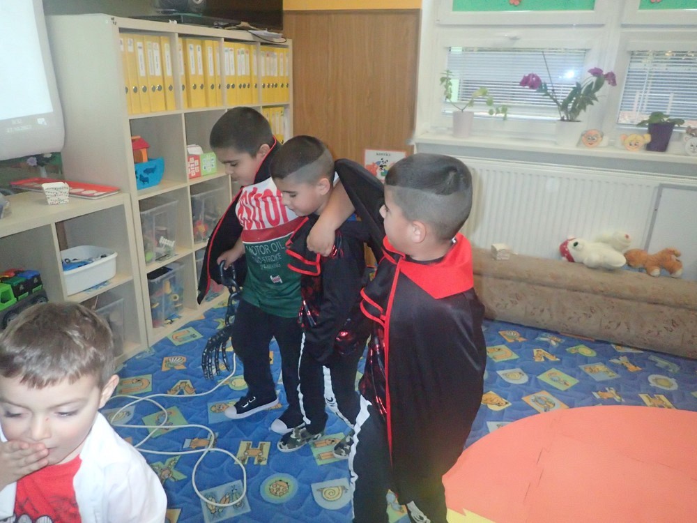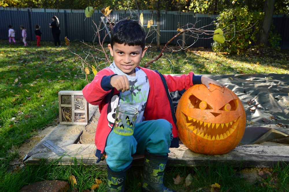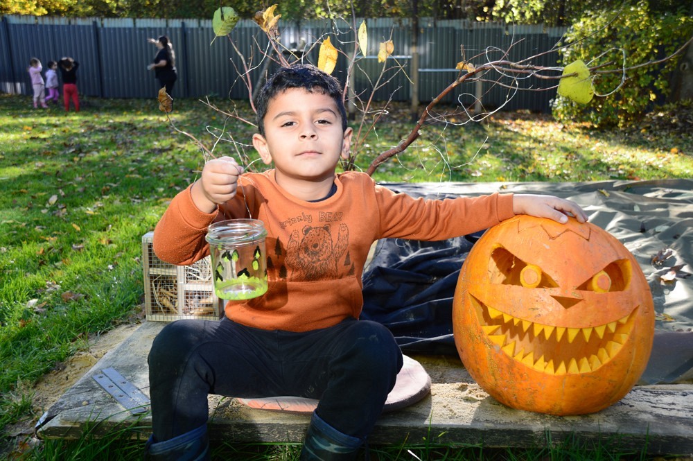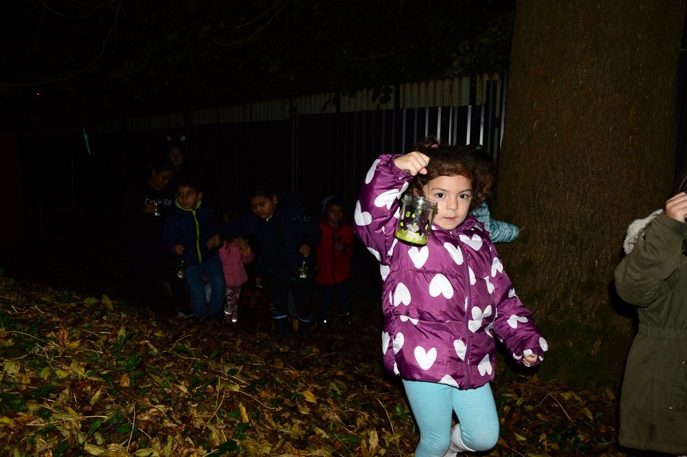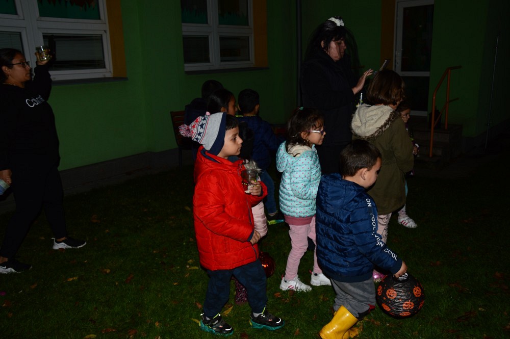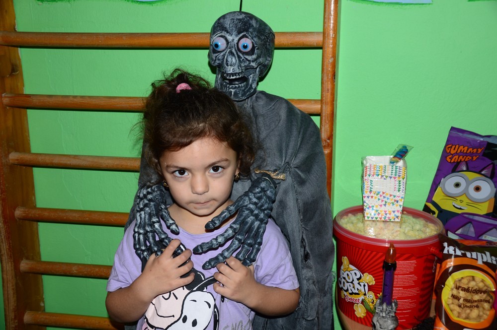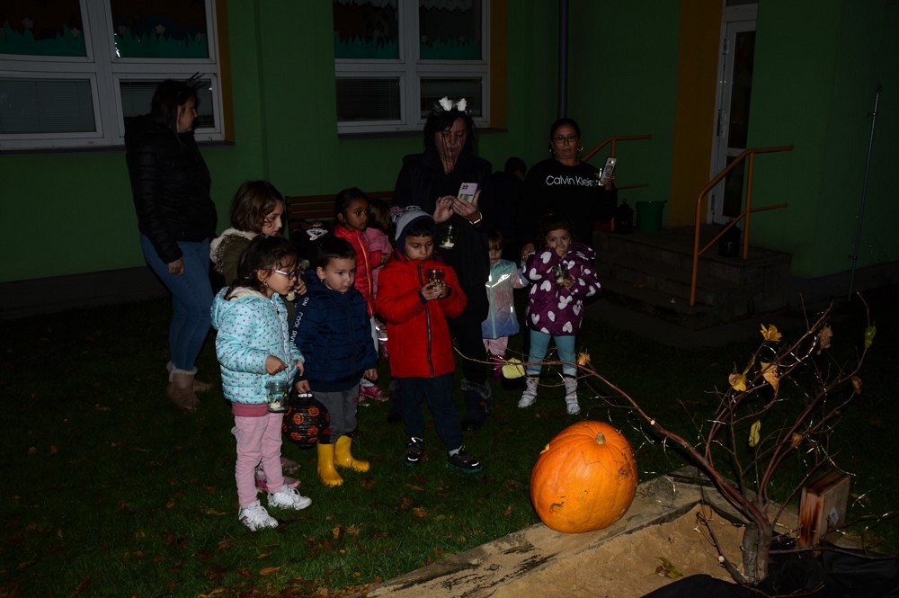 Společné vyrábění lampiónů, malování na kameny, dlabání dýní, opékání parků, halloweenská diskotéka s Eduardem a Emilkou. Společné večerní kino a společné spaní v MŠ.
