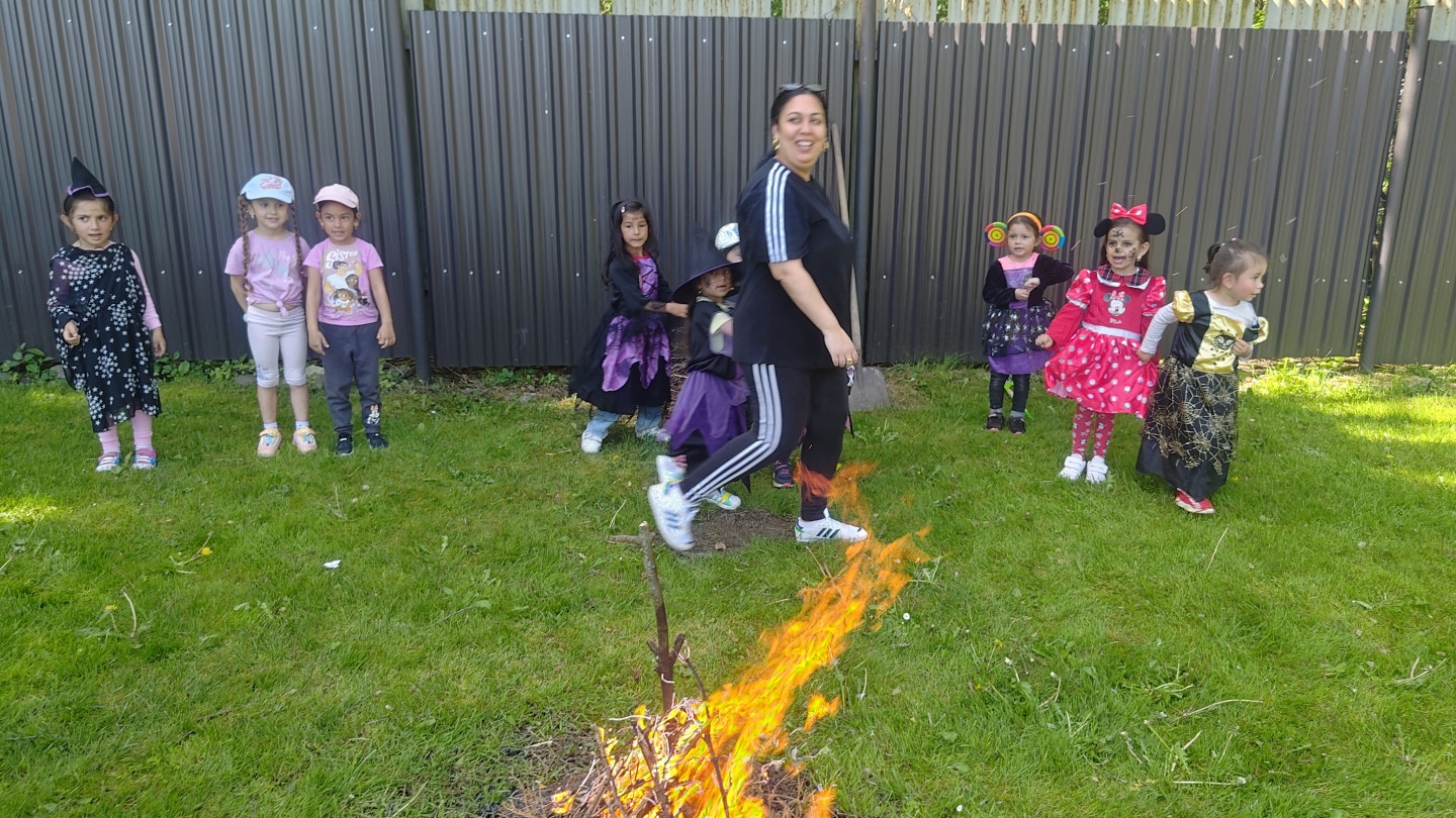 Děti mohly dovádět společně s dětmi z mateřské školy na zahradě. Vyrobily společně čarodějnici, kterou upalily na připraveném ohništi.