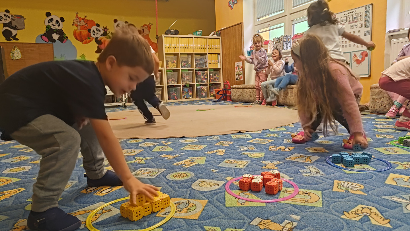 Procvičování hrubé a jemné motoriky, rychlost, trpělivost, rovnováha, orientace v terénu a barvy. Všichny děti zvladly na jedničku!!!!