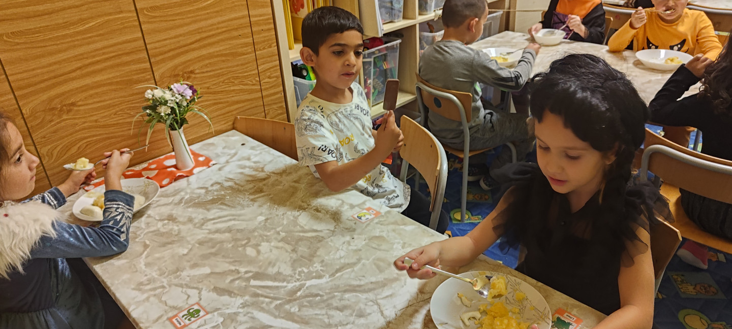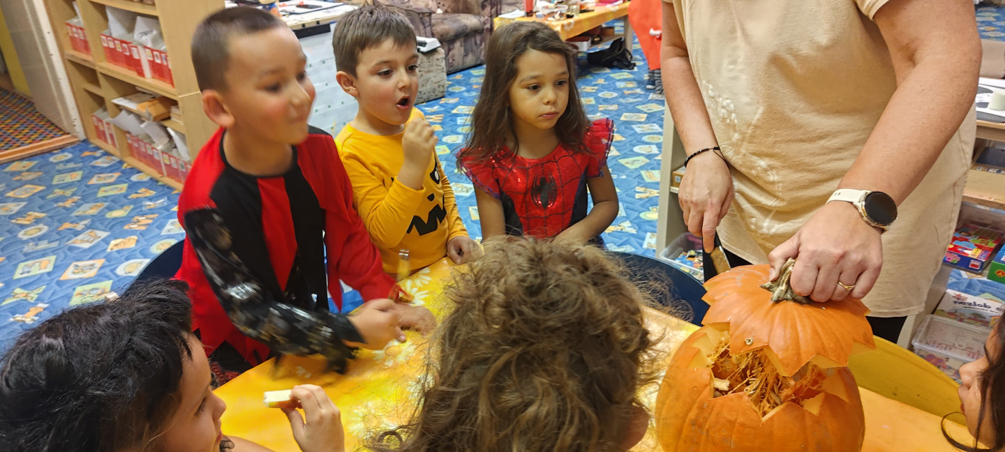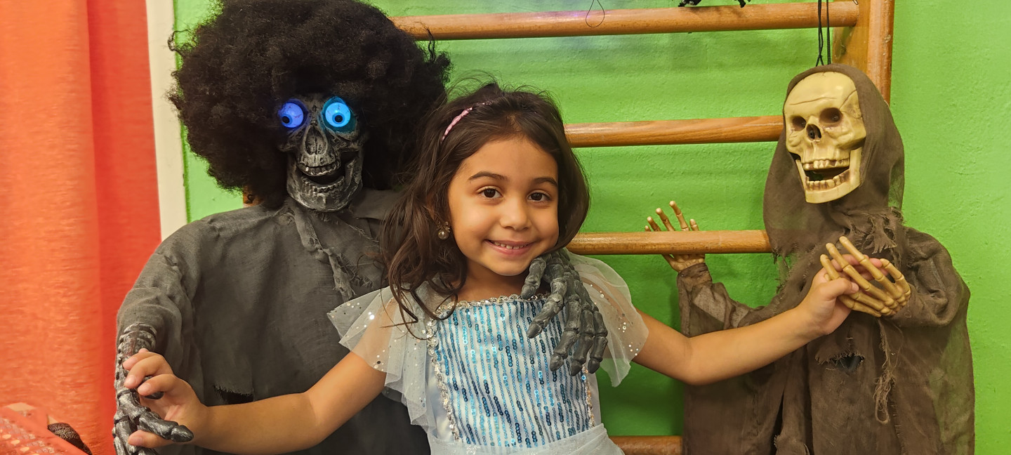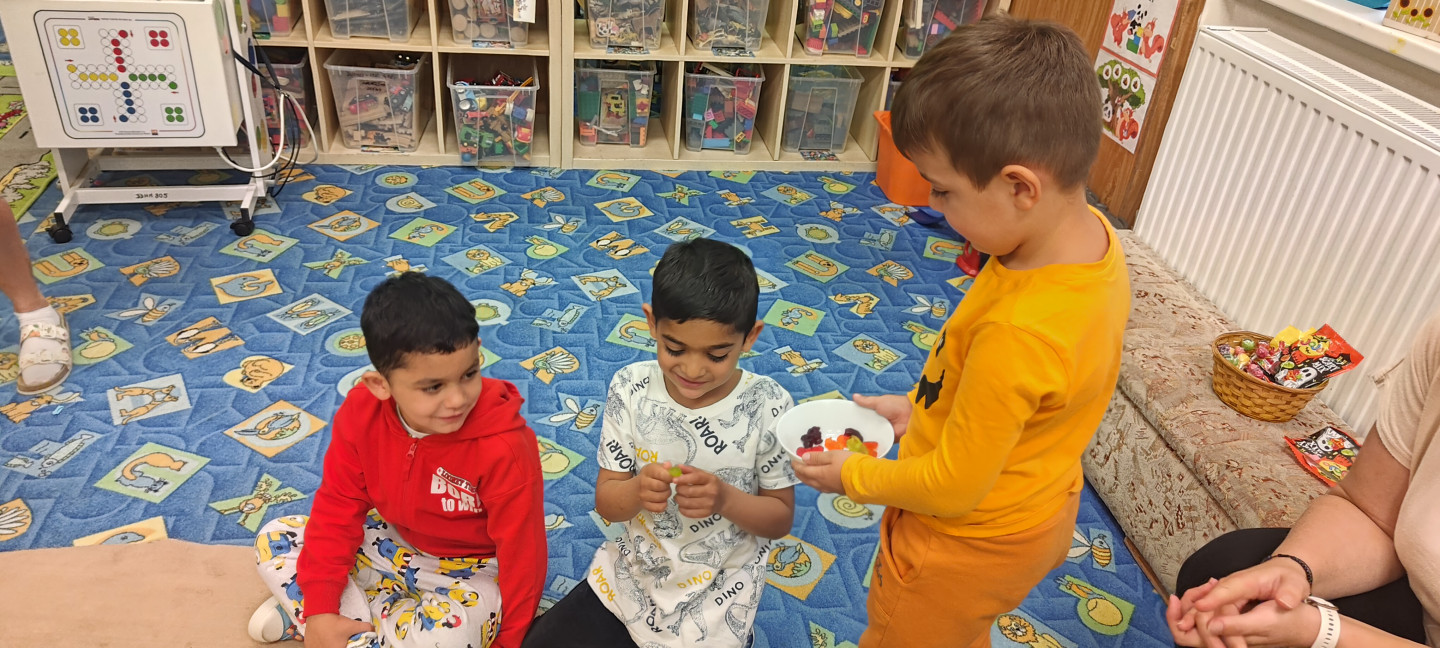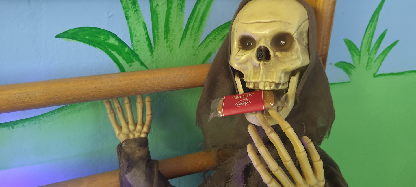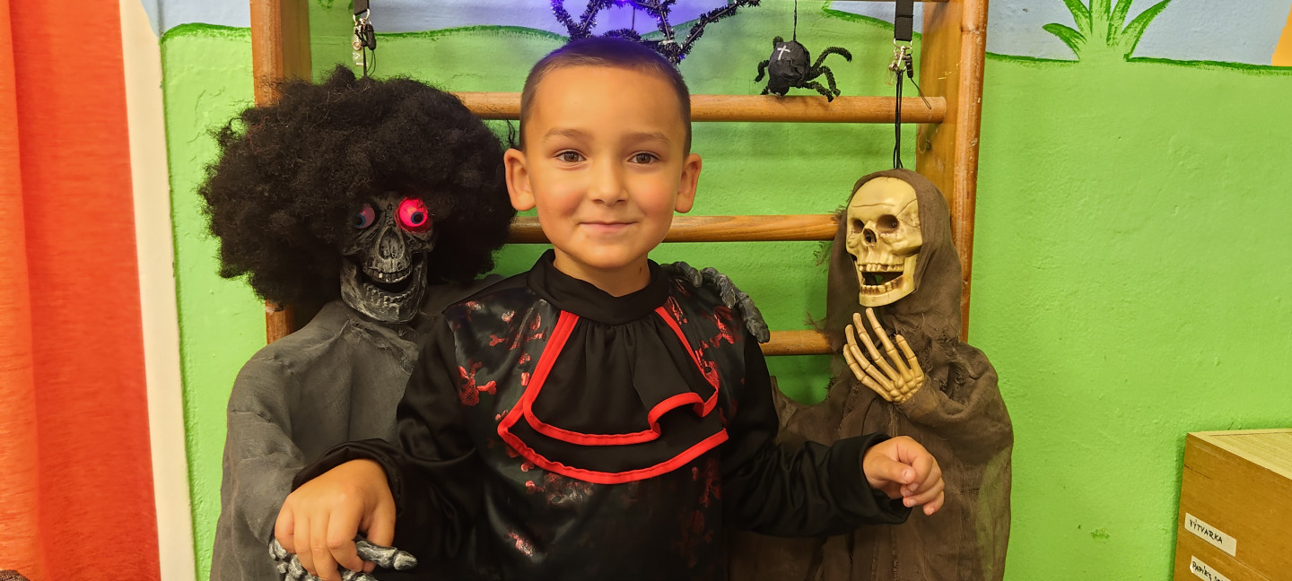 Party v plném proudu..... Navštívil nás kostlivec Emilek a mlsná Emilka, která nám ujída naše zásoby.