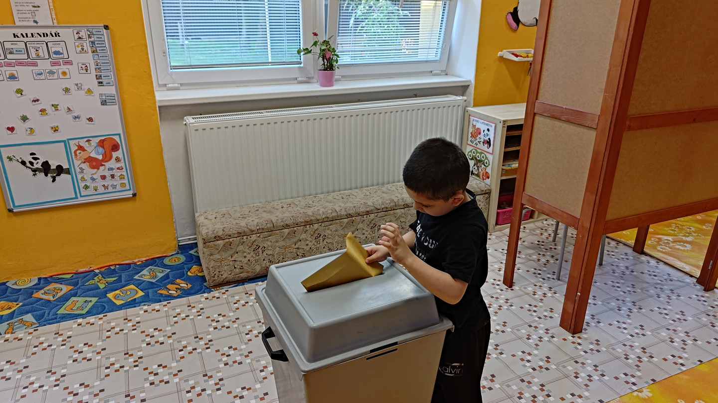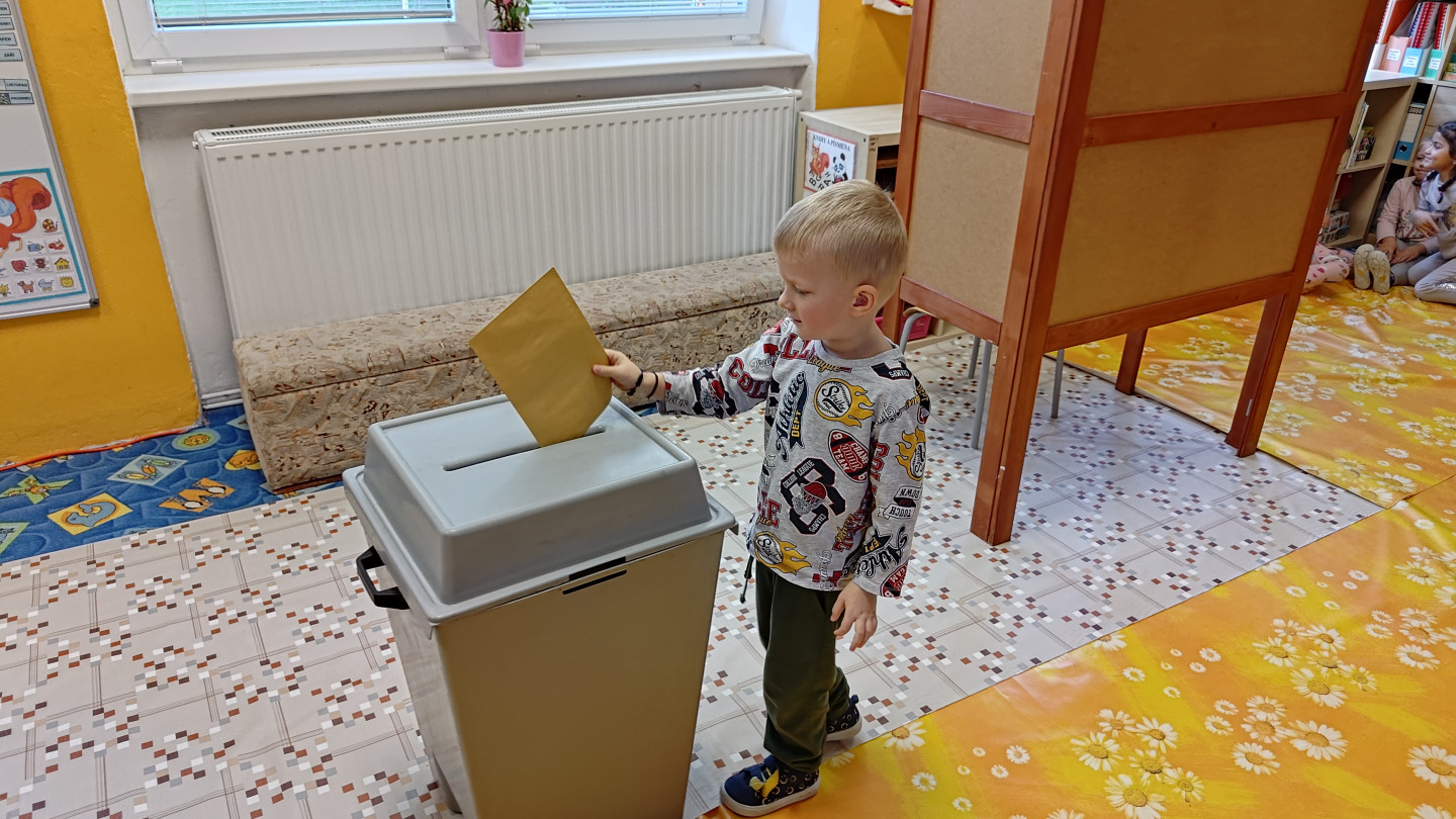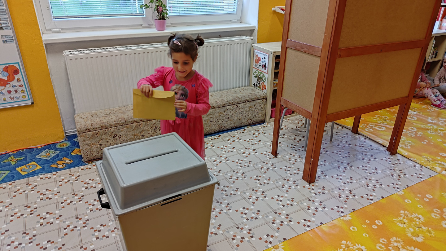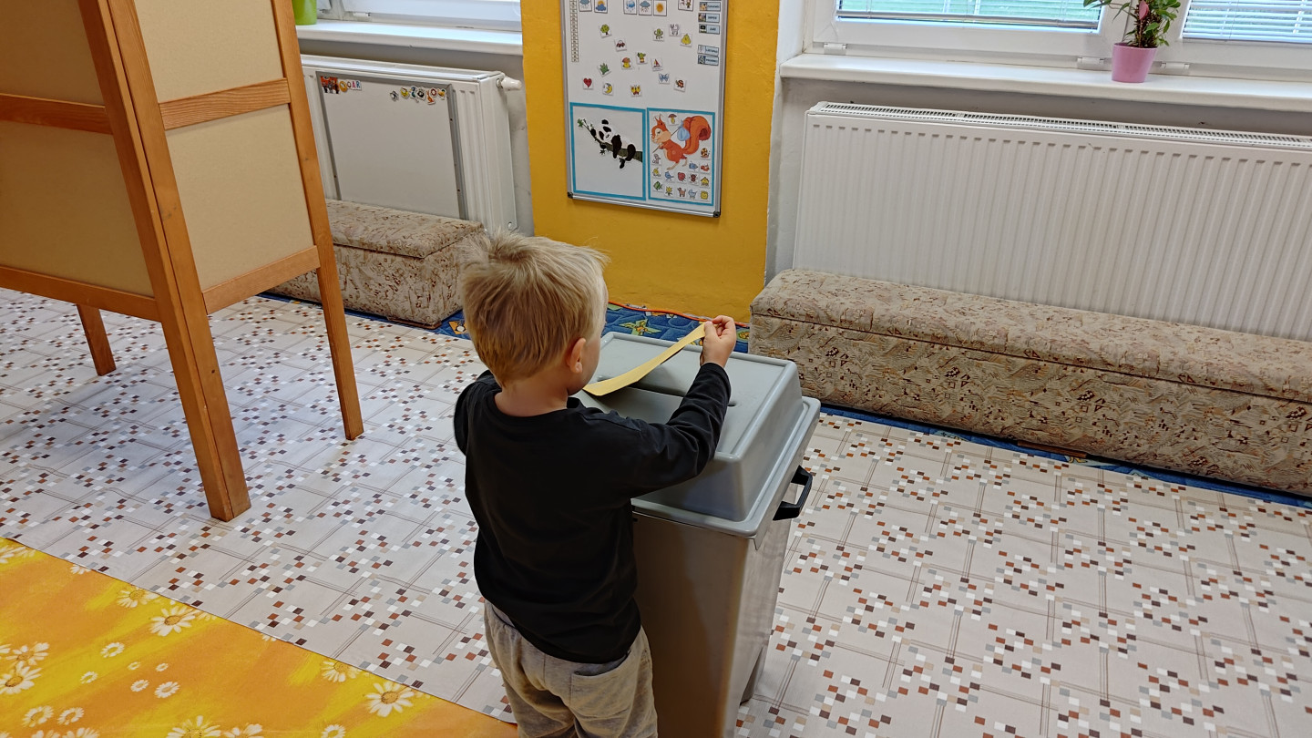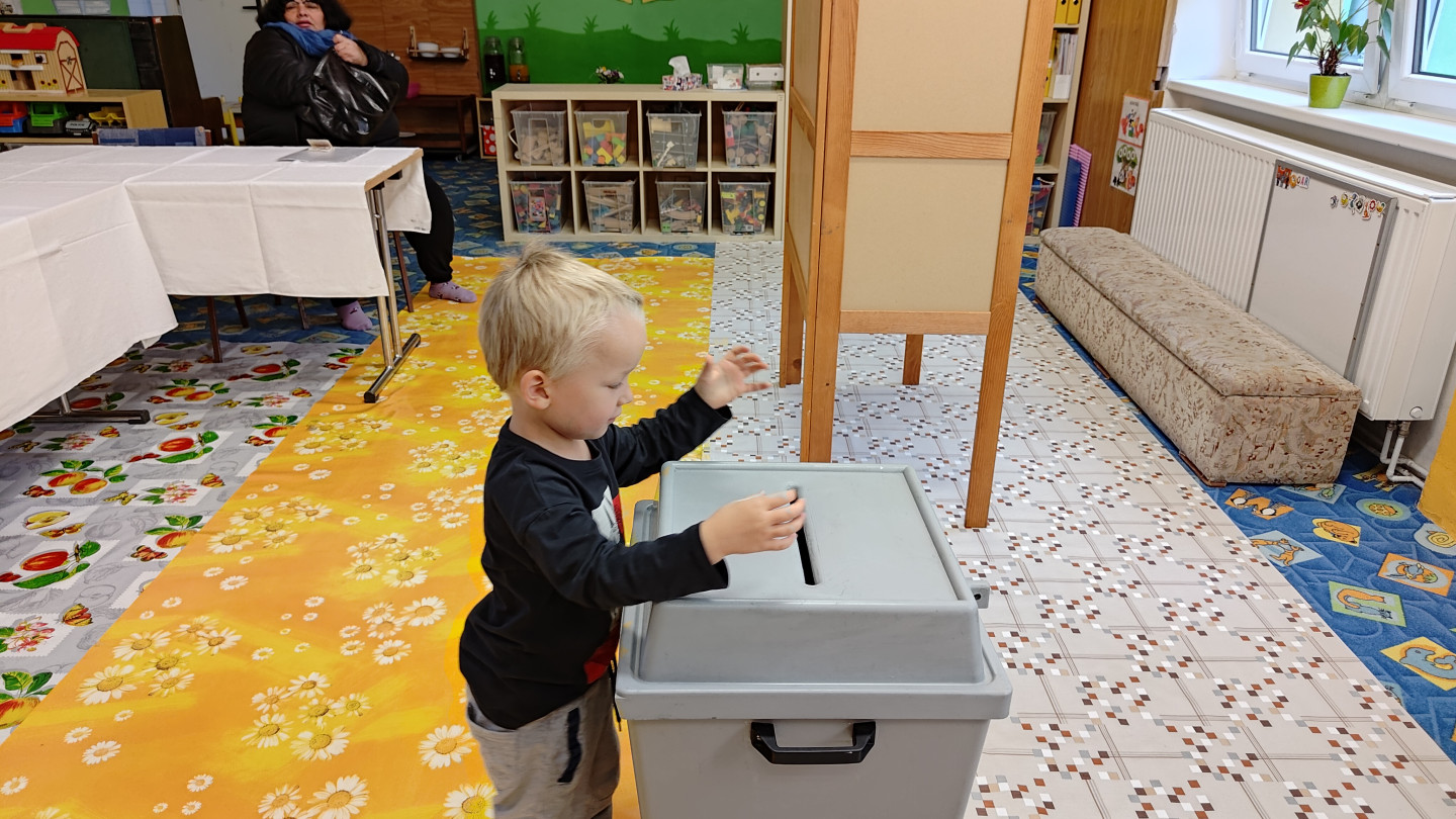 Dnes se naše třída změnila ve volební místnost, kde odpoledne proběhnou volby do poslanecké sněmovny. Proto jsme se rozhodly vysvětlit dětem, co tady budou dospěláci dělat a jak to vše bude probíhat. Rozhodly jsme se vyhlasit volbu o nejoblíbenější hračku v mateřské škole. Vybraly jsme 8 hraček nebo stavebnic a děti rozhodly. Přišly do volební místnosti, představily se a díky tomu dostaly volební lístek a obálku. Tajně rozhodly, lístek vložily do obálky a obálku vhodily do urny. Výsledek byl překvapivý. Doufáme, že i dospěláci budou stejně překvapeni.