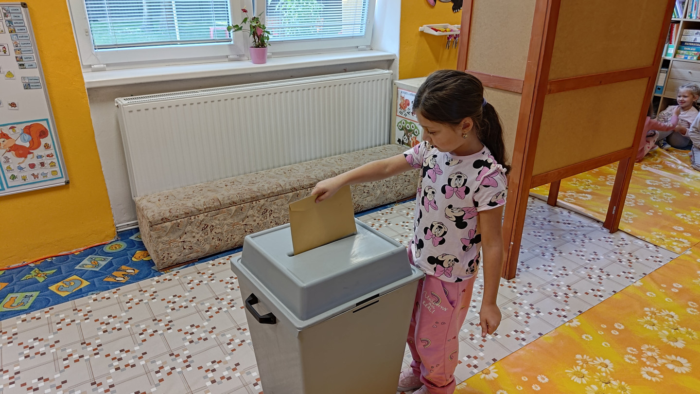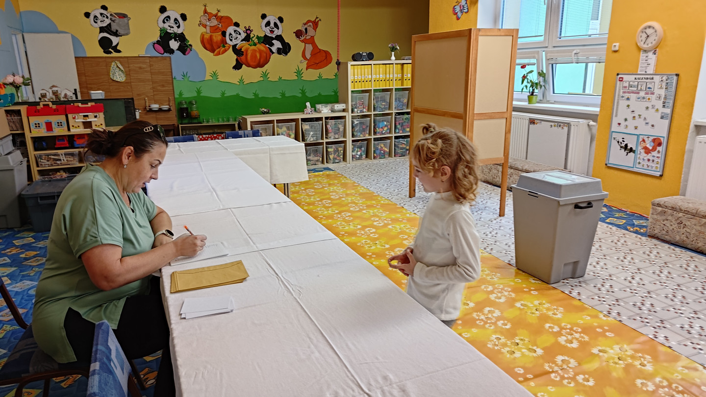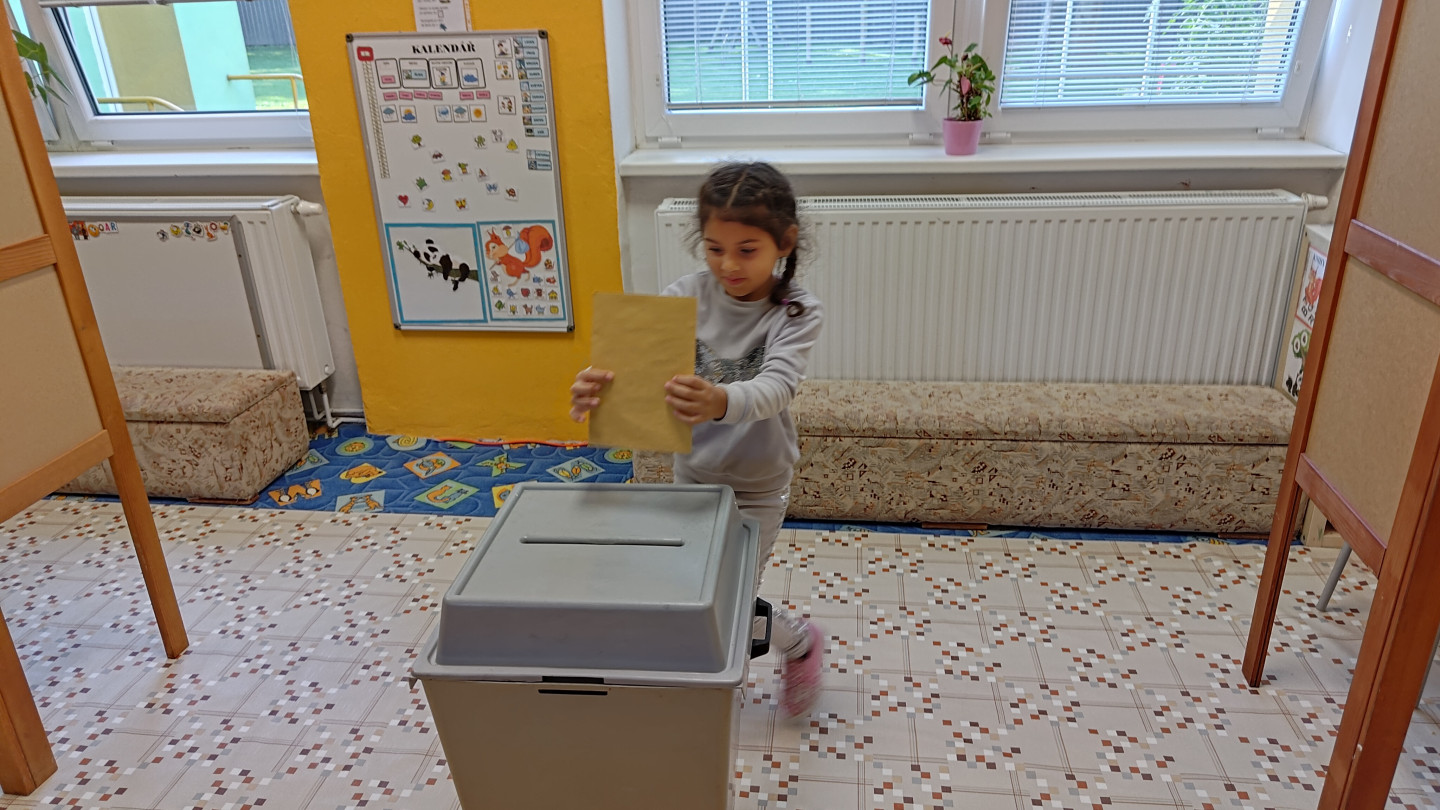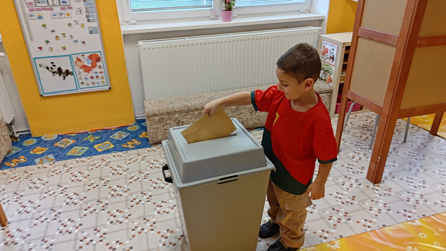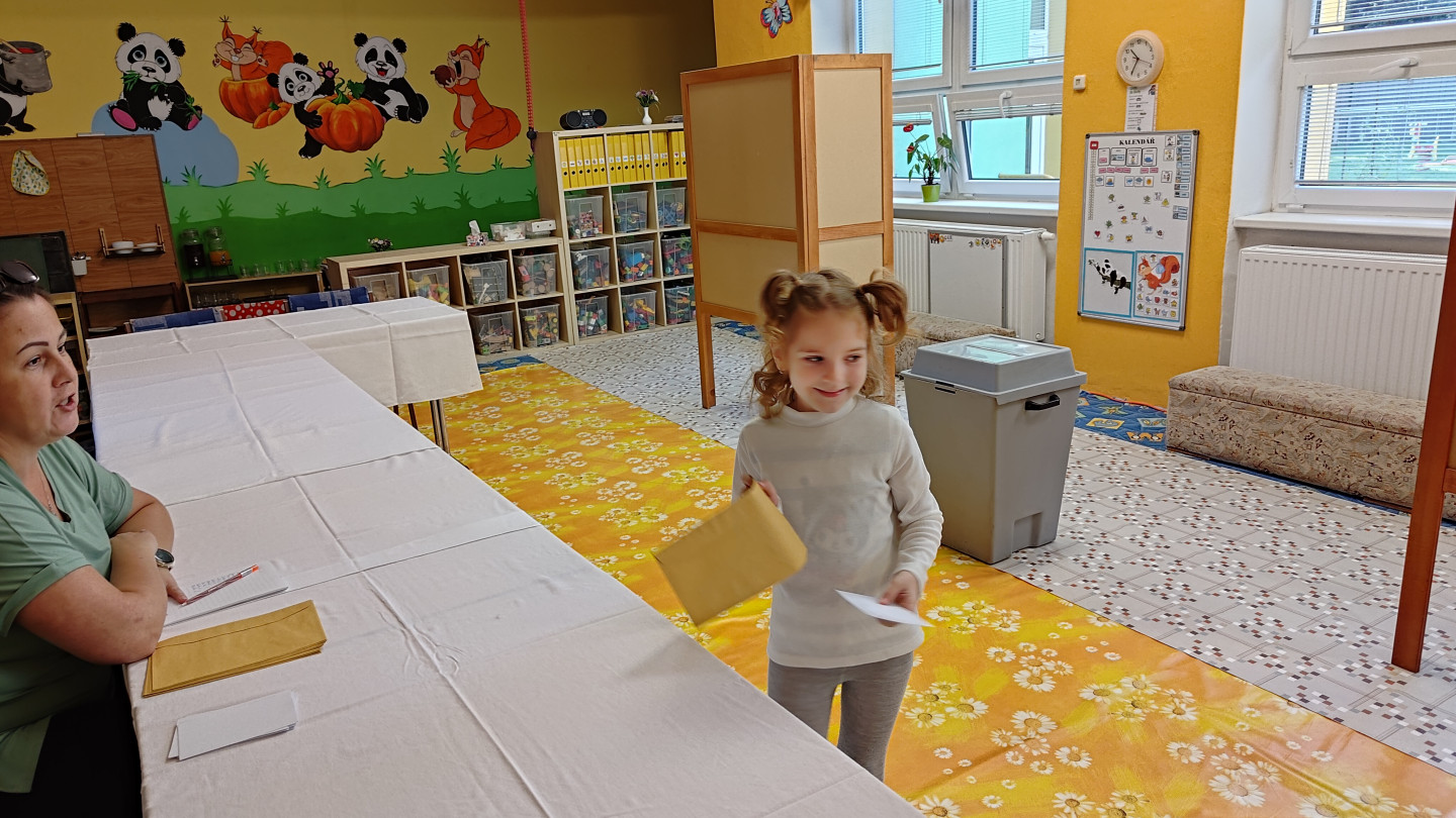 Dnes se naše třída změnila ve volební místnost, kde odpoledne proběhnou volby do poslanecké sněmovny. Proto jsme se rozhodly vysvětlit dětem, co tady budou dospěláci dělat a jak to vše bude probíhat. Rozhodly jsme se vyhlasit volbu o nejoblíbenější hračku v mateřské škole. Vybraly jsme 8 hraček nebo stavebnic a děti rozhodly. Přišly do volební místnosti, představily se a díky tomu dostaly volební lístek a obálku. Tajně rozhodly, lístek vložily do obálky a obálku vhodily do urny. Výsledek byl překvapivý. Doufáme, že i dospěláci budou stejně překvapeni.