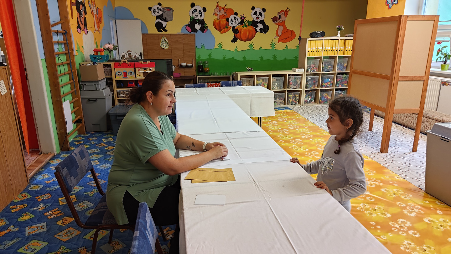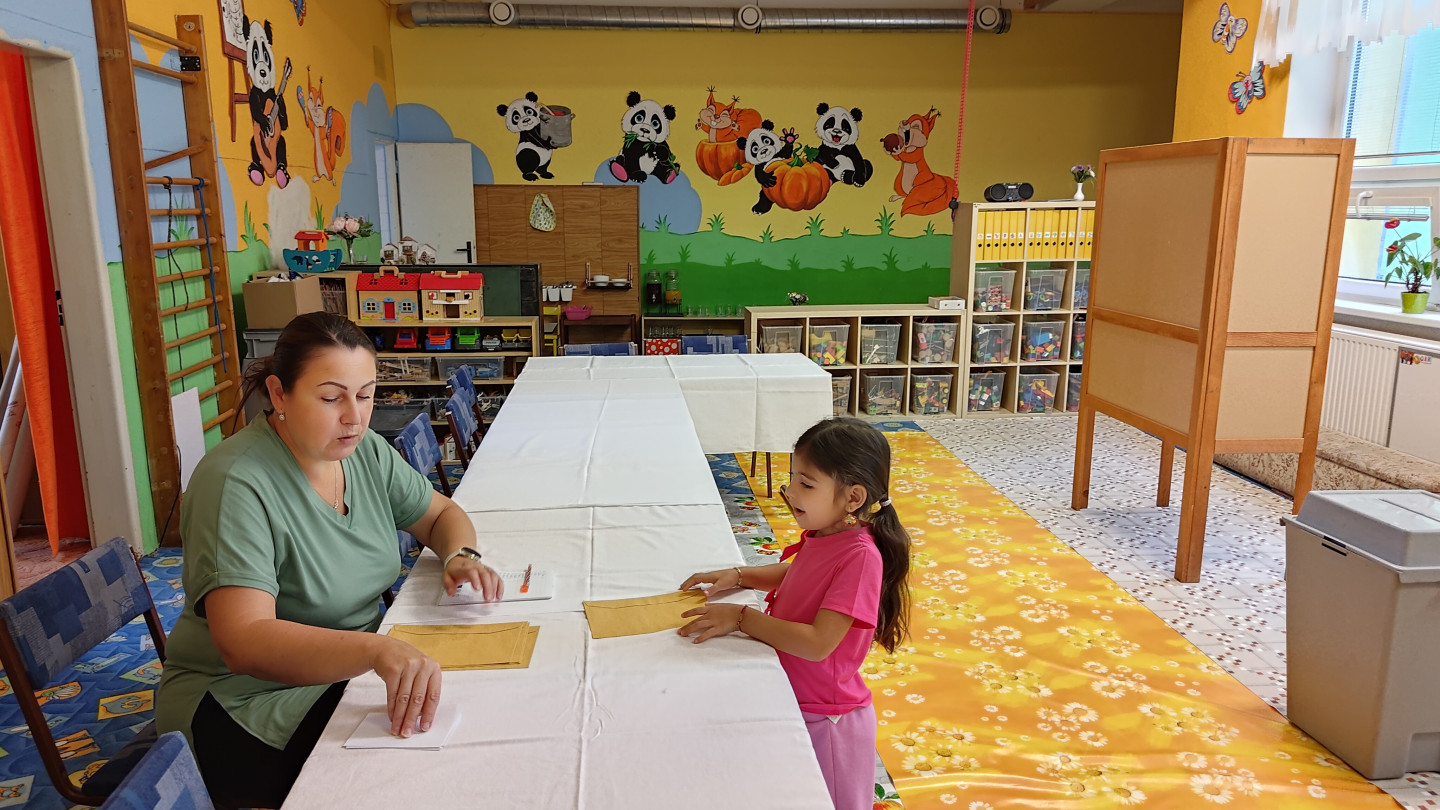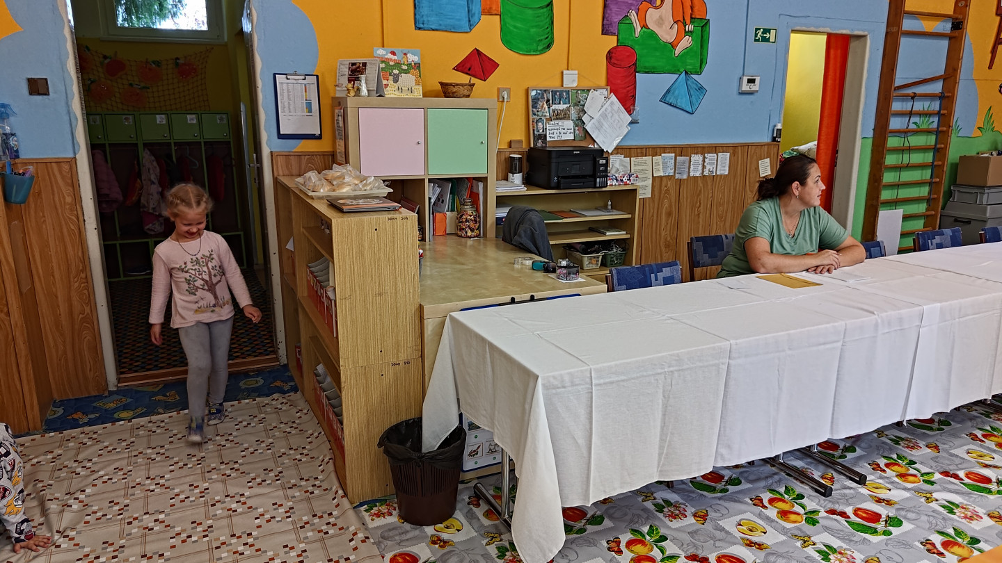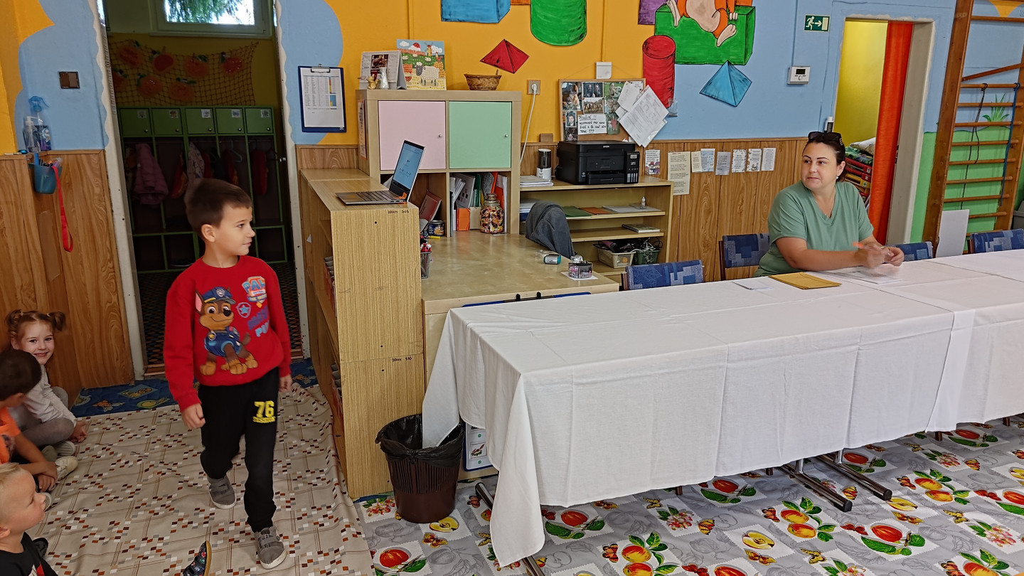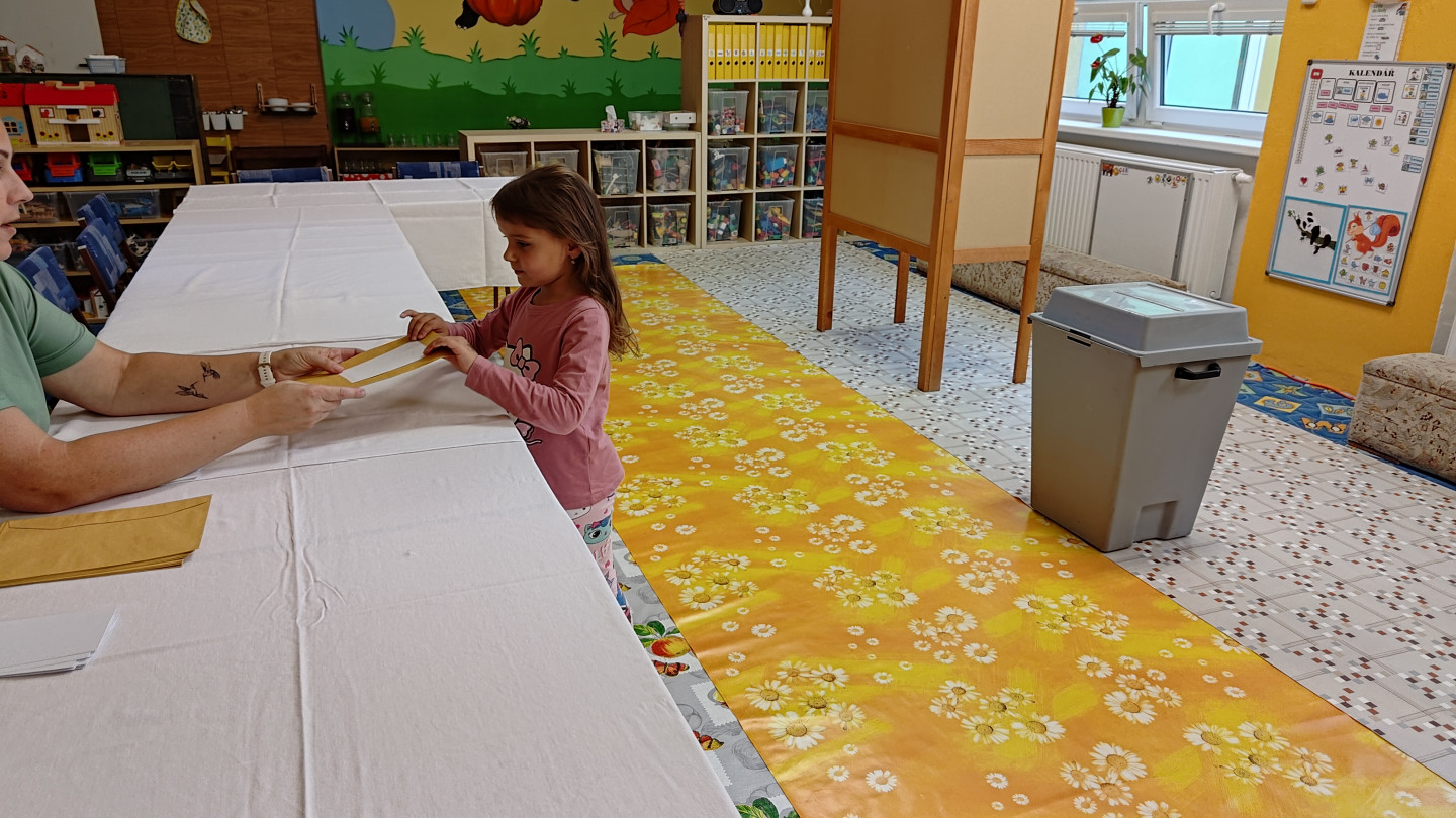 Dnes se naše třída změnila ve volební místnost, kde odpoledne proběhnou volby do poslanecké sněmovny. Proto jsme se rozhodly vysvětlit dětem, co tady budou dospěláci dělat a jak to vše bude probíhat. Rozhodly jsme se vyhlasit volbu o nejoblíbenější hračku v mateřské škole. Vybraly jsme 8 hraček nebo stavebnic a děti rozhodly. Přišly do volební místnosti, představily se a díky tomu dostaly volební lístek a obálku. Tajně rozhodly, lístek vložily do obálky a obálku vhodily do urny. Výsledek byl překvapivý. Doufáme, že i dospěláci budou stejně překvapeni.