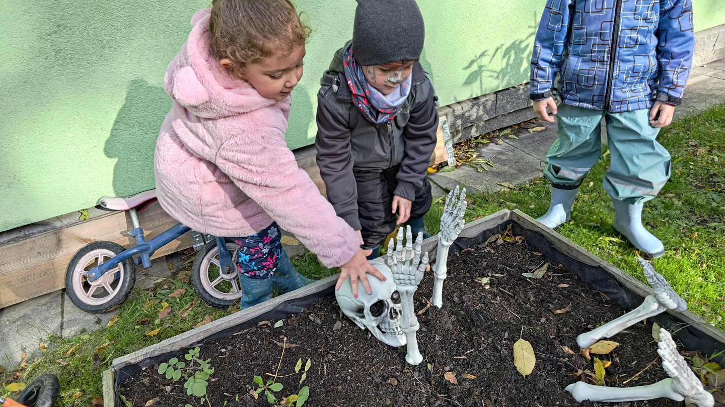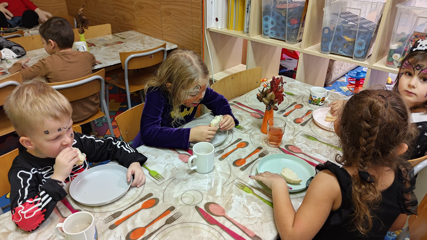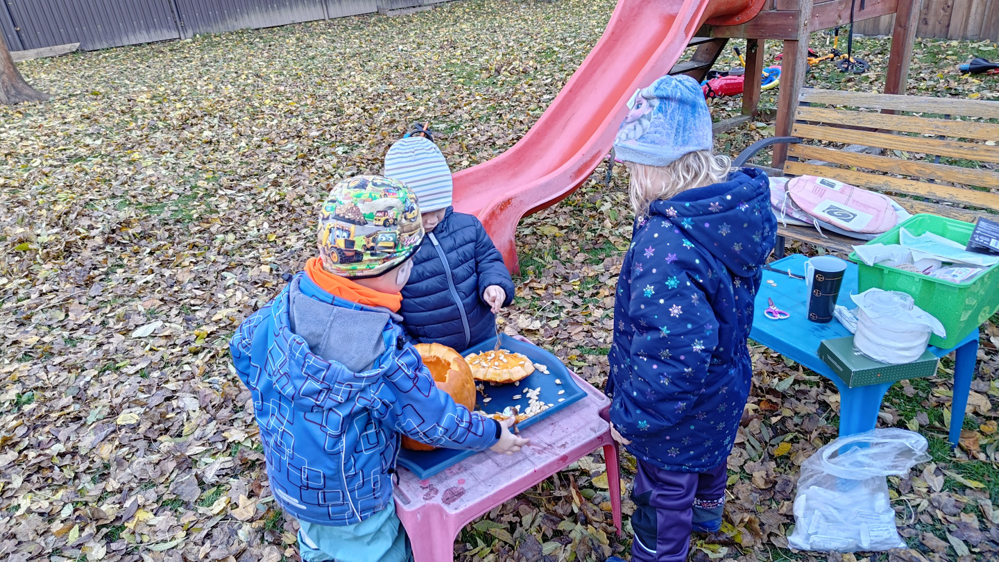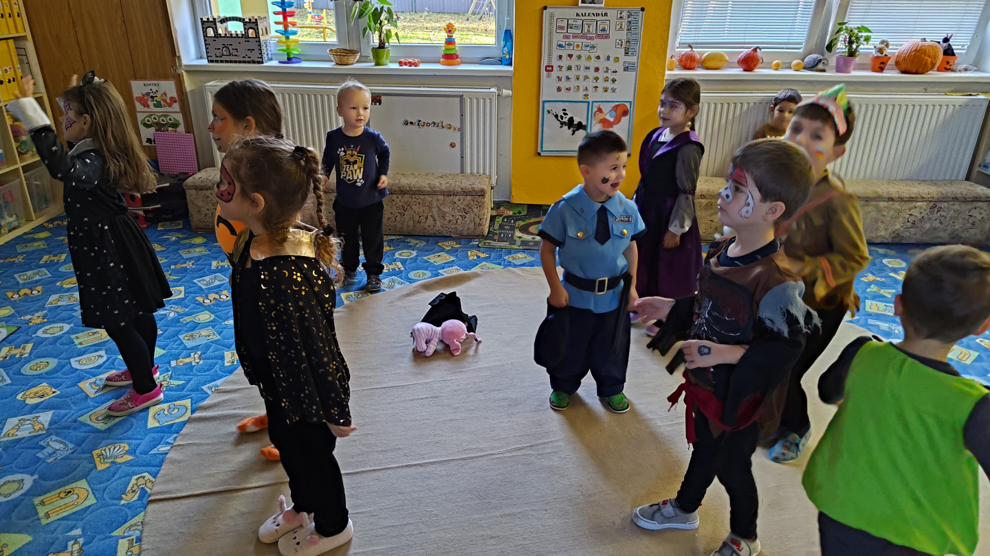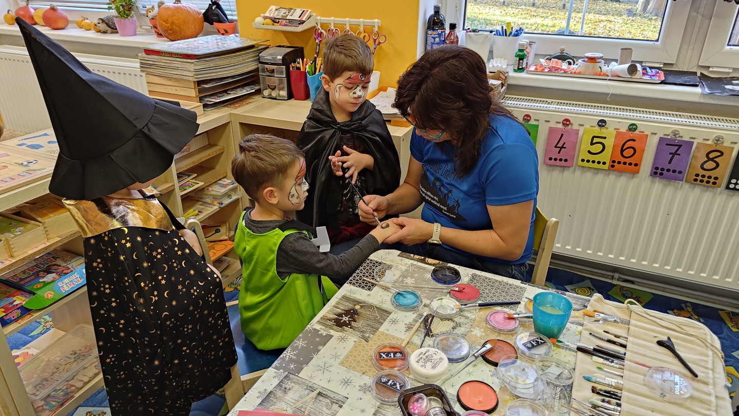 Uspávní broučků s halloweenskou párty a přespáváním ve školce patří mezi naše oblíbené akce. Děti se oblékly do kostýmu, namalovaly jsme jim obličej a protože bylo krásné počasí, párty pokračovala venku. Připravili jsme strašidelnou výzdobu, připravili jsme světla a děti hledaly broučky, které jsme ubytovali do hmyzího hotelu. Děkujeme rodičům za podporu, za spoustu halloweenské dekorace a dobrotek.
