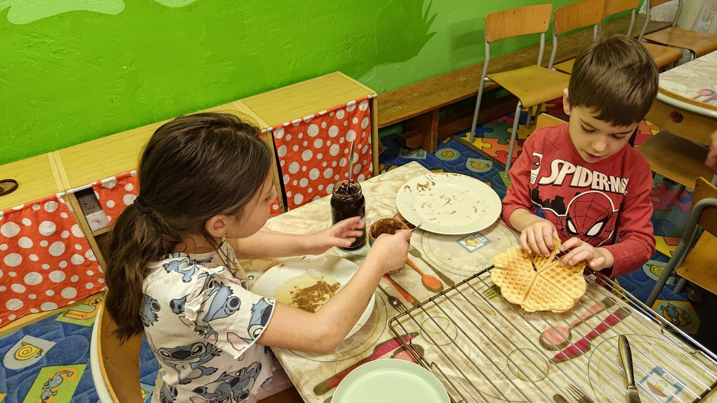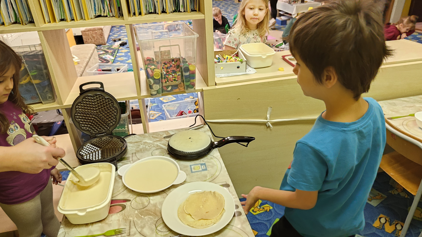 Všechny děti se staly kuchaři a vyzkoušely si jaké to je dělat palačinky a vafle.