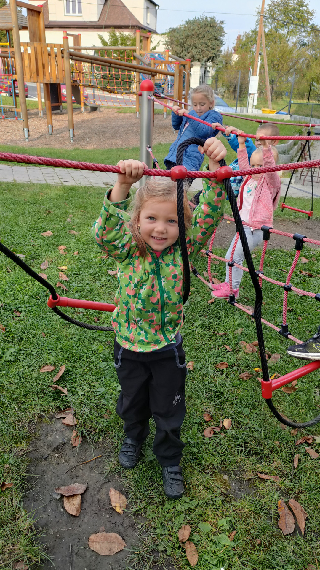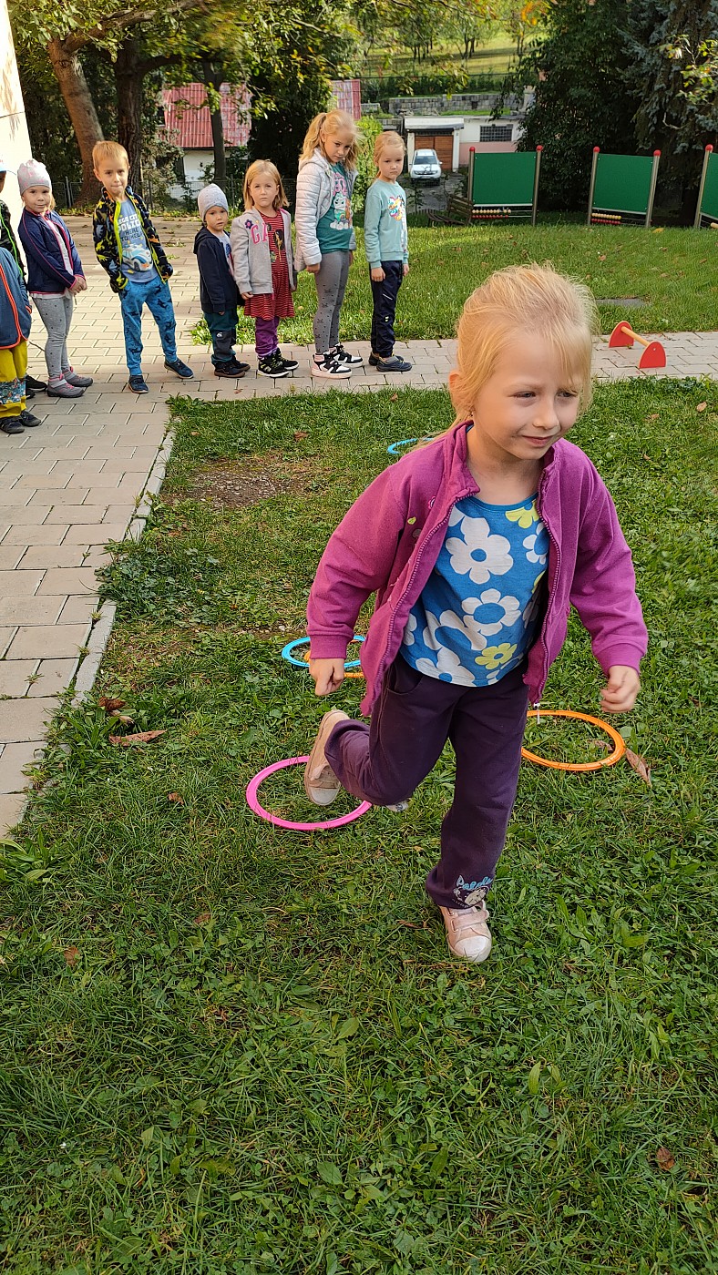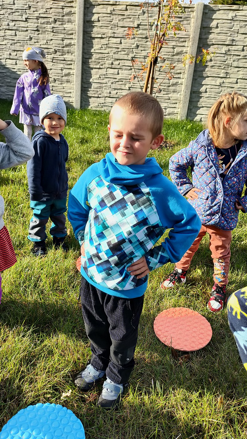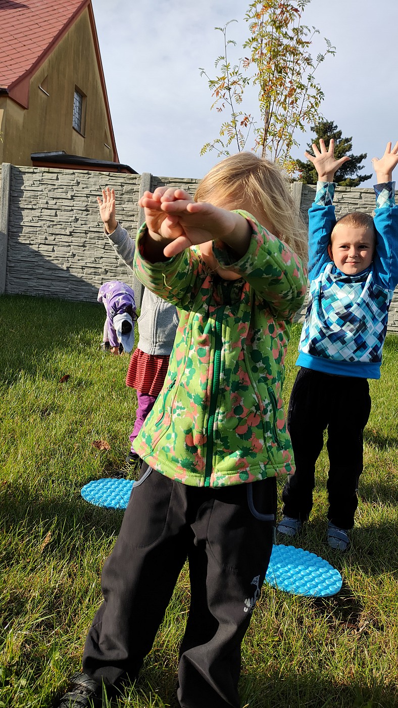 Využili jsme ještě pěkného podzimního počasí a dnešní dopolední cvičení přesunuli na vzduch ven. Nejdříve jsme se rozběhali, rozcvičili, poté vyzkoušeli překážkovou dráhu a cvičení ukončili honičkou a relaxačními cviky.