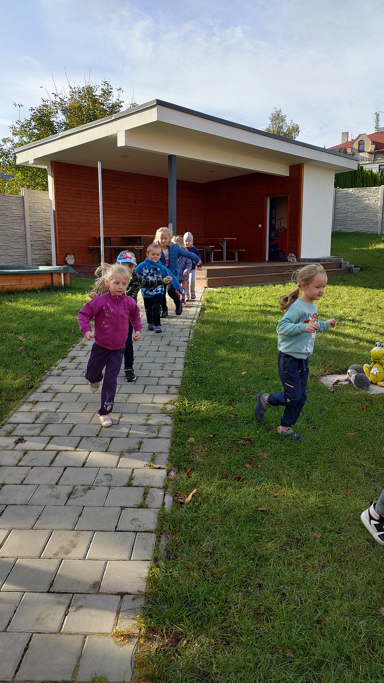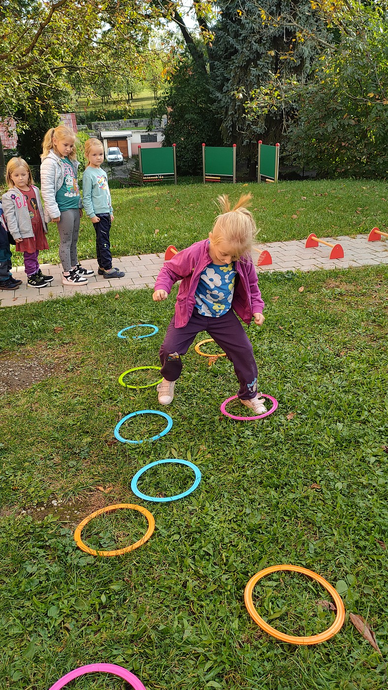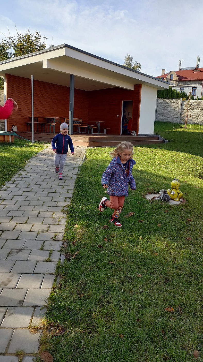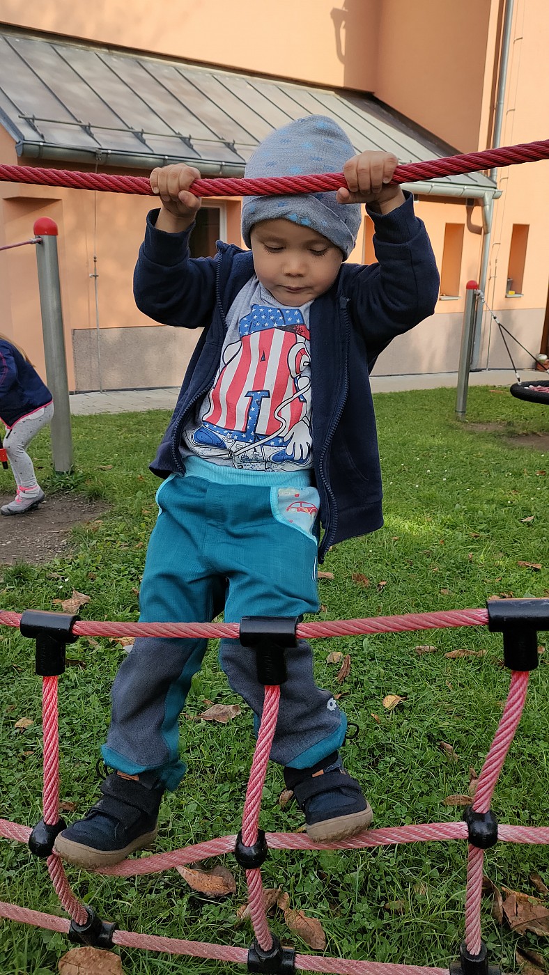 Využili jsme ještě pěkného podzimního počasí a dnešní dopolední cvičení přesunuli na vzduch ven. Nejdříve jsme se rozběhali, rozcvičili, poté vyzkoušeli překážkovou dráhu a cvičení ukončili honičkou a relaxačními cviky.