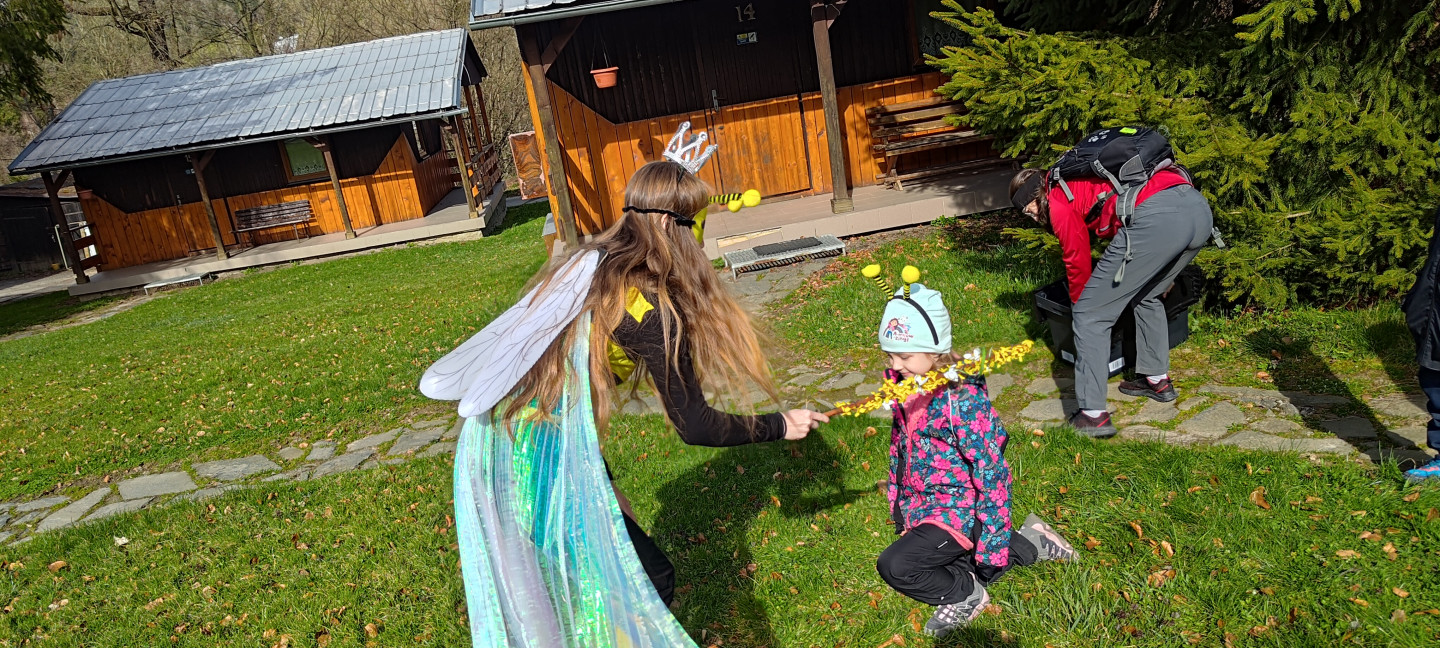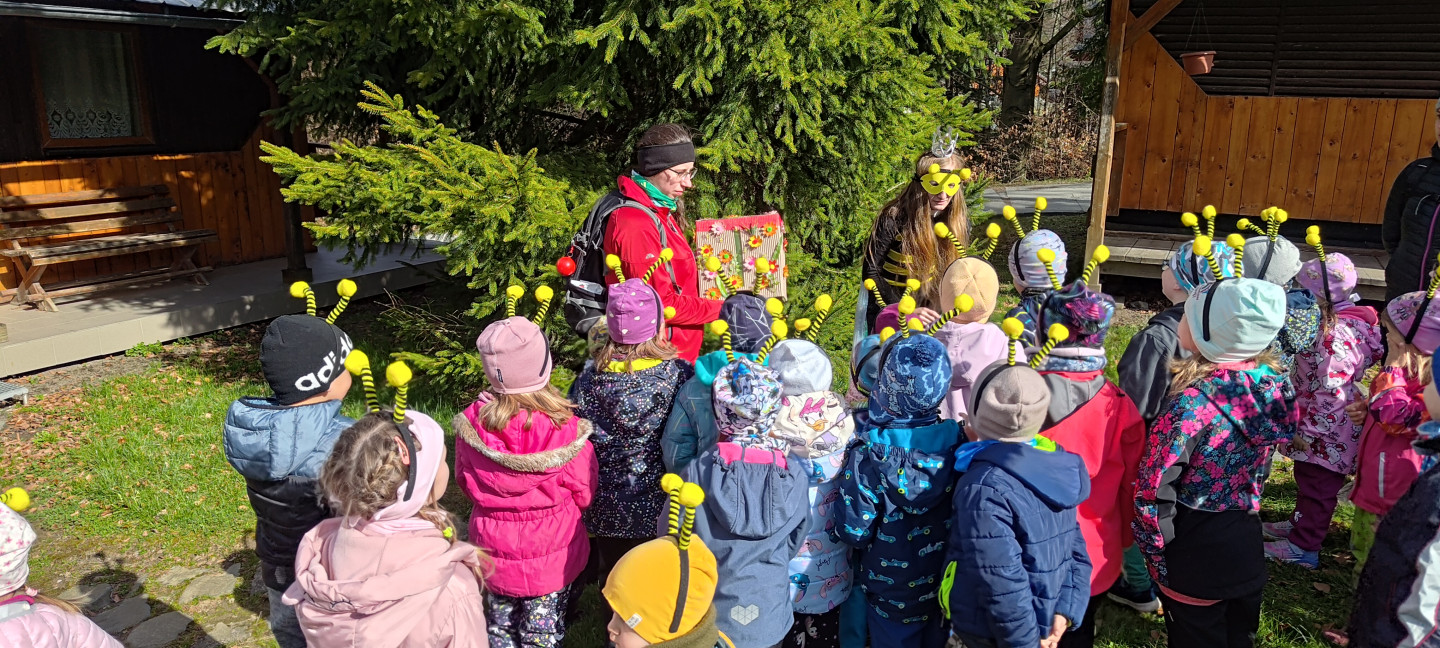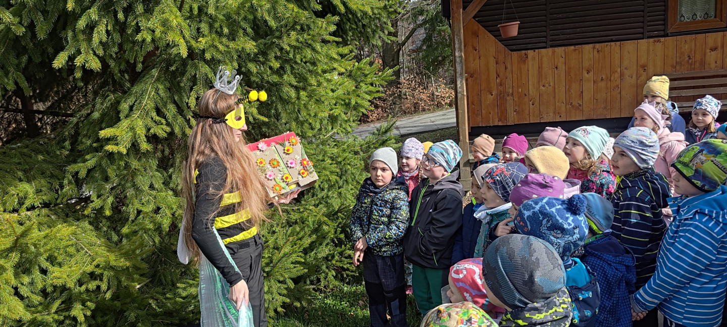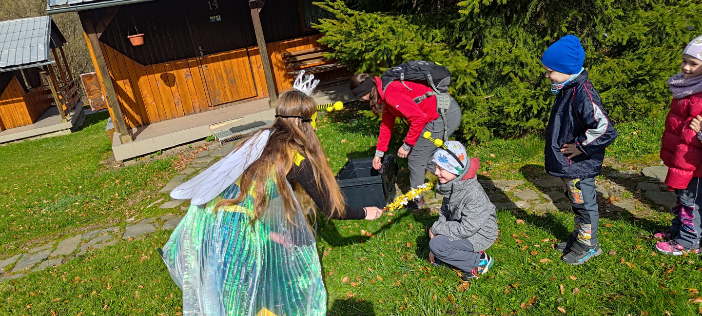 Dneska nás navštívila včelí královna, která nás poprosila o pomoc s hlídáním úlu před zlým sršňěm, který včele neustále krade zásoby. Královna nám všem rozdala své tykadélka a pasovala nás na včelí dělnice a trubce. Svěřila nám na hlídání svůj úl, do kterého jsme odpoledne na louce posbírali pyl, abychom jí doplnily zásoby.