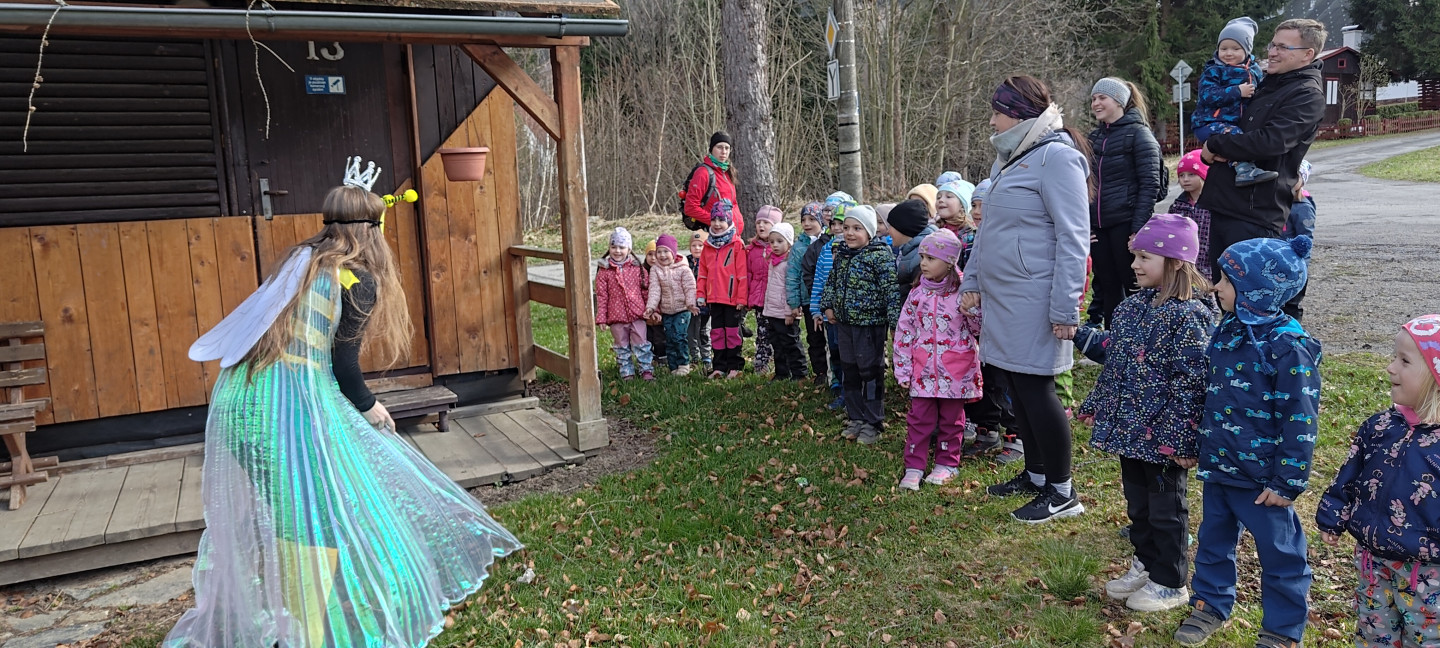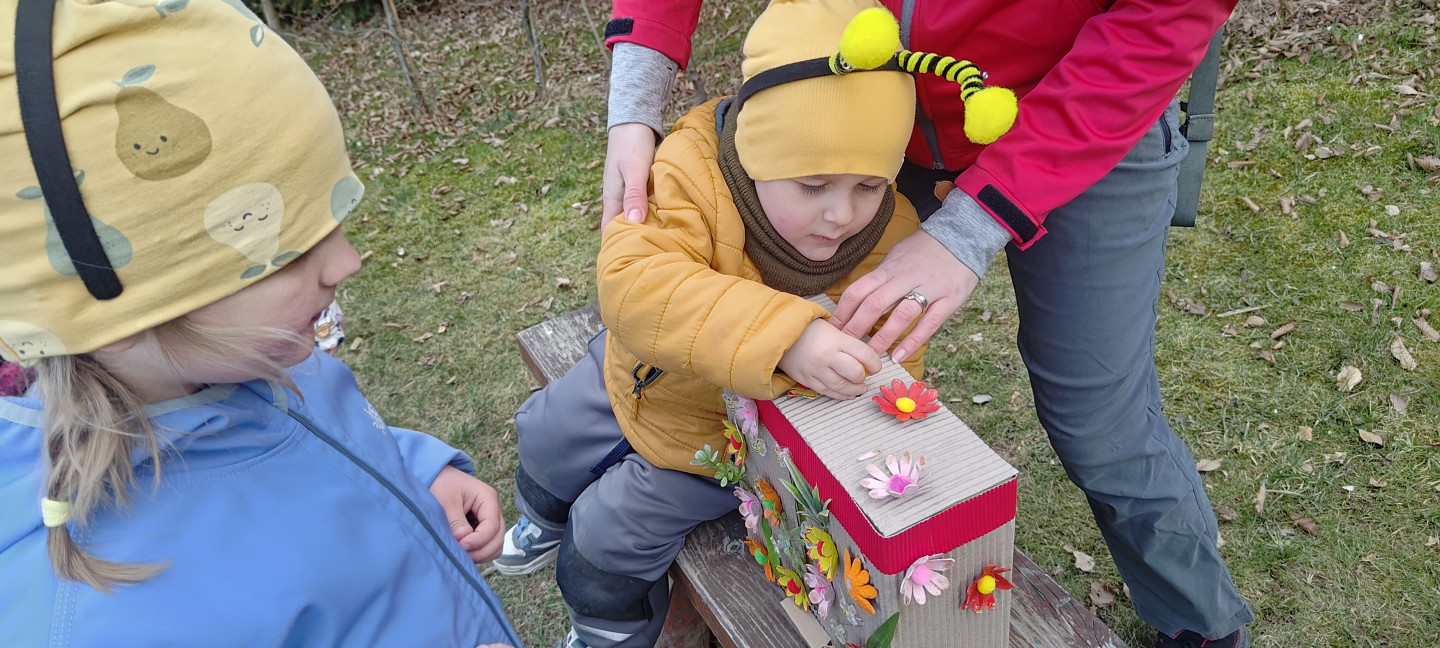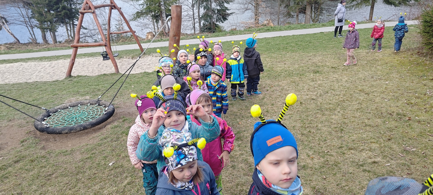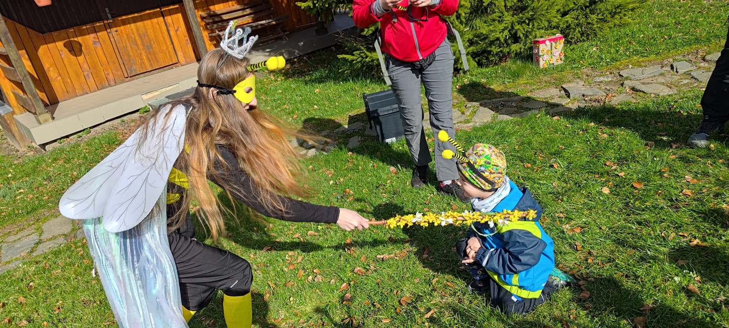 Dneska nás navštívila včelí královna, která nás poprosila o pomoc s hlídáním úlu před zlým sršňěm, který včele neustále krade zásoby. Královna nám všem rozdala své tykadélka a pasovala nás na včelí dělnice a trubce. Svěřila nám na hlídání svůj úl, do kterého jsme odpoledne na louce posbírali pyl, abychom jí doplnily zásoby.